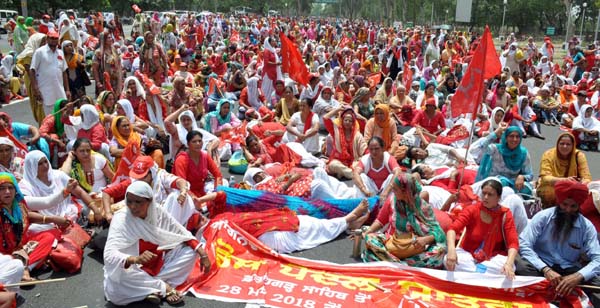 Share on Facebook Share on Twitter Share on Google+ Share on Pinterest Share on Linkedin ਆਂਗਨਵਾੜੀ ਵਰਕਰਾਂ ਵੱਲੋਂ ਸਿੱਖਰ ਦੁਪਹਿਰੇ ਸੜਕ ਜਾਮ ਕਰਕੇ ਕੈਪਟਨ ਸਰਕਾਰ ਵਿਰੁੱਧ ਜ਼ਬਰਦਸਤ ਮੁਜ਼ਾਹਰਾ ਤੇਜ ਗਰਮੀ ਕਾਰਨ ਦਰਜਨ ਤੋਂ ਵੱਧ ਬੀਬੀਆਂ ਬੇਹੋਸ਼, ਕੈਬਿਨਟ ਮੰਤਰੀ ਬਲਬੀਰ ਸਿੱਧੂ ਦੇ ਭਰੋਸੇ ਤੋਂ ਬਾਅਦ ਧਰਨਾ ਸਮਾਪਤ ਨਬਜ਼-ਏ-ਪੰਜਾਬ ਬਿਊਰੋ, ਮੁਹਾਲੀ, 30 ਮਈ: ਆਂਗਨਵਾੜੀ ਮੁਲਾਜਮ ਯੂਨੀਅਨ ਪੰਜਾਬ ਸੀਟੂ ਵੱਲੋਂ ਅੱਜ ਆਪਣੀਆਂ ਮੰਗਾਂ ਦੇ ਹੱਕ ਵਿੱਚ ਸੋਹਾਣਾ ਤੋੱ ਚੰਡੀਗੜ੍ਹ ਵਿੱਚ ਮੁੱਖ ਮੰਤਰੀ ਦਫ਼ਤਰ ਵੱਲ ਕੀਤਾ ਜਾ ਰਹੇ ਪੈਦਲ ਮਾਰਚ ਨੂੰ ਚੰਡੀਗੜ੍ਹ ਪੁਲੀਸ ਵੱਲੋਂ ਵਾਈਪੀਐਸ ਚੌਂਕ ਤੋਂ ਅੱਗੇ ਚੰਡੀਗੜ੍ਹ ਦੀ ਹੱਦ ’ਤੇ ਰੋਕ ਦਿੱਤਾ ਗਿਆ ਜਿਸ ਤੇ ਵੱਡੀ ਗਿਣਤੀ ਵਿੱਚ ਆਈਆਂ ਆਂਗਨਵਾੜੀ ਵਰਕਰਾਂ ਵੱਲੋਂ ਸੜਕ ’ਤੇ ਹੀ ਧਰਨਾ ਦੇ ਦਿੱਤਾ ਗਿਆ। ਬਾਅਦ ਵਿੱਚ ਮੌਕੇ ਤੇ ਪਹੁੰਚੇ ਕੈਬਿਨਟ ਮੰਤਰੀ ਬਲਬੀਰ ਸਿੰਘ ਸਿੱਧੂ ਵੱਲੋਂ ਪੰਜਾਬ ਕੈਬਿਨਟ ਦੀ ਮੀਟਿੰਗ ਵਿੱਚ ਆਂਗਨਵਾੜੀ ਵਰਕਰਾਂ ਦੇ ਮਸਲਿਆਂ ’ਤੇ ਵਿਚਾਰ ਕਰਨ ਦਾ ਭਰੋਸਾ ਦਿੱਤੇ ਜਾਣ ਤੋੱ ਬਾਅਦ ਆਂਗਨਵਾੜੀ ਵਰਕਰਾਂ ਵੱਲੋਂ ਧਰਨਾ ਖਤਮ ਕਰ ਦਿੱਤਾ ਗਿਆ। ਅੱਜ ਸਵੇਰੇ ਸਵਾ 9 ਵਜੇ ਦੇ ਕਰੀਬ ਆਂਗਨਵਾੜੀ ਵਰਕਰਾਂ ਦਾ ਇਹ ਵੱਡਾ ਕਾਫਲਾ ਸੰਸਥਾ ਦੀ ਕੌਮੀ ਪ੍ਰਧਾਨ ਉਸ਼ਾ ਰਾਣੀ, ਸੂਬਾ ਪ੍ਰਧਾਨ ਹਮਰੀਤ ਕੌਰ ਪੰਜੋਲਾ ਅਤੇ ਹੋਰਨਾਂ ਆਗੂਆਂ ਦੀ ਅਗਵਾਈ ਹੇਠ ਸੋਹਾਣਾ ਦੇ ਗੁਰਦੁਆਰਾ ਸਿੰਘ ਸ਼ਹੀਦਾਂ ਤੋਂ ਚੰਡੀਗੜ੍ਹ ਲਈ ਰਵਾਨਾ ਹੋਇਆ। ਇਸ ਮੌਕੇ ਪੰਜਾਬ ਪੁਲੀਸ ਵਲੋੱ ਵਿਸ਼ੇਸ਼ ਪ੍ਰਬੰਧ ਕਰਕੇ ਸੜਕ ਨੂੰ ਖਾਲੀ ਕਰਵਾ ਦਿੱਤਾ ਗਿਆ ਅਤੇ ਕਾਫਲੇ ਨੂੰ ਫੇਜ਼-7 ਦੇ ਅੰਬਾਂ ਵਾਲਾ ਚੌਂਕ ਤੋਂ ਵਾਈਪੀਐਸ ਚੌਂਕ ਵੱਲ ਜਾਣ ਦਿੱਤਾ ਗਿਆ। ਵਾਈਪੀਐਸ ਚੌਂਕ ਪਹੁੰਚ ਕੇ ਇਕ ਵਾਰ ਤਾਂ ਆਂਗਨਵਾੜੀ ਵਰਕਰ ਉਥੋਂ ਮਦਨਪੁਰ ਚੌਂਕ ਜਾਣ ਵਾਲੀ ਸੜਕ ਵੱਲ ਮੁੜ ਗਈਆਂ ਤਾਂ ਪੁਲੀਸ ਨੂੰ ਭਾਜੜਾ ਪੈ ਗਈਆਂ ਅਤੇ ਪੁਲੀਸ ਵੱਲੋਂ ਕਾਫ਼ਲੇ ਪਿੱਛੇ ਭੱਜ ਕੇ ਉਸਨੂੰ ਵਾਪਸ ਮੋੜਿਆ ਗਿਆ ਅਤੇ ਵਾਈਪੀਐਸ ਚੌਂਕ ਤੋੱ ਸਿੱਧਾ ਚੰਡੀਗੜ੍ਹ ਵਾਲੇ ਪਾਸੇ ਭੇਜਿਆ ਗਿਆ ਜਿੱਥੇ ਨਦੀ ਦੇ ਪੁਲ ਤੇ ਚੰਡੀਗੜ੍ਹ ਪੁਲੀਸ ਵੱਲੋਂ ਬੈਰੀਕੇਡ ਲਗਾ ਕੇ ਕਾਫਲੇ ਨੂੰ ਰੋਕ ਦਿੱਤਾ ਗਿਆ ਜਿਸ ਤੇ ਆਂਗਨਵਾੜੀ ਵਰਕਰ ਸੜਕ ਦੇ (ਦੋਵੇ ਪਾਸੇ) ਕਿਨਾਰਿਆਂ ਤੇ ਹੀ ਬੈਠ ਗਈਆਂ। ਇਸ ਮੌਕੇ ਆਂਗਨਵਾੜੀ ਆਗੂਆਂ ਨੇ ਕਿਹਾ ਕਿ ਉਹ ਪੰਜਾਬ ਸਰਕਾਰ ਅਤੇ ਚੰਡੀਗੜ੍ਹ ਪ੍ਰਸ਼ਾਸਨ ਨੂੰ ਇੱਕ ਘੰਟੇ ਦਾ ਸਮਾਂ ਦਿੰਦੀਆਂ ਹਨ ਕਿ ਘੱਟੋ ਘੱਟ ਕੈਬਿਨਟ ਮੰਤਰੀ ਰੈਂਕ ਦਾ ਕੋਈ ਆਗੂ ਉਹਨਾਂ ਦੀ ਗੱਲ ਸੁਣੇ ਵਰਨਾ ਉਹ ਆਪਣਾ ਸੰਘਰਸ਼ ਹੋਰ ਤਿੱਖਾ ਕਰ ਦੇਣਗੀਆਂ। ਇਸ ਮੌਕੇ ਜਿੱਥੇ ਭਾਰੀ ਪੁਲੀਸ ਫੋਰਸ ਤਾਇਨਾਤ ਕੀਤੀ ਗਈ ਸੀ ਅਤੇ ਪੰਜਾਬ ਦੇ ਕਈ ਜ਼ਿਲ੍ਹਿਆ ਤੋਂ ਮਹਿਲਾ ਪੁਲੀਸ ਦੇ ਕਰਮਚਾਰੀ ਇੱਥੇ ਲਿਆਂਦੇ ਗਏ ਸਨ। ਪੁਲੀਸ ਵੱਲੋਂ ਆਂਗਨਵਾੜੀ ਵਰਕਰਾਂ ਨੂੰ ਲਿਜਾਣ ਲਈ ਬੱਸਾਂ ਦਾ ਵੀ ਪ੍ਰਬੰਧ ਕੀਤਾ ਗਿਆ ਸੀ ਅਤੇ ਡੀਜੀਪੀ ਕਾਨੂੰਨ ਅਤੇ ਵਿਵਸਥਾ ਐਚਐਸ ਢਿੱਲੋਂ, ਐਸਐਸਪੀ ਕੁਲਦੀਪ ਸਿੰਘ ਚਾਹਲ ਸਮੇਤ ਸ਼ਹਿਰ ਦੇ ਐਸਪੀ, ਡੀਐਸਪੀ ਅਤੇ ਸਾਰੇ ਥਾਣਿਆਂ ਦੇ ਐਸਐਸਓ ਮੌਕੇ ’ਤੇ ਹਾਜ਼ਰ ਸਨ। ਚੰਡੀਗੜ੍ਹ ਪੁਲੀਸ ਦੀ ਐਸਐਸਪੀ ਅਤੇ ਹੋਰ ਅਧਿਕਾਰੀ ਵੀ ਮੌਕੇ ’ਤੇ ਪਹੁੰਚੇ ਹੋਏ ਸੀ। ਜਦੋਂ ਦੁਪਹਿਰ 12 ਵਜੇ ਤੱਕ ਪੰਜਾਬ ਸਰਕਾਰ ਦਾ ਕੋਈ ਨੁਮਾਇੰਦਾ ਮੌਕੇ ਤੇ ਨਹੀਂ ਪਹੁੰਚਿਆ ਤਾਂ ਆਂਗਨਵਾੜੀ ਵਰਕਰਾਂ ਨੇ ਤਪਦੀ ਦੁਪਹਿਰ ਵਿੱਚ ਸੜਕ ’ਤੇ ਲੇਟ ਕੇ ਧਰਨਾ ਦੇ ਦਿੱਤਾ। ਇਸ ਦੌਰਾਨ ਜਿੱਥੇ ਪੁਲੀਸ ਅਤੇ ਪ੍ਰਸ਼ਾਸਨ ਨੂੰ ਭਾਜੜਾ ਪੈ ਗਈਆਂ। ਉੱਥੇ ਭਾਰੀ ਗਰਮੀ ਕਾਰਣ ਤ