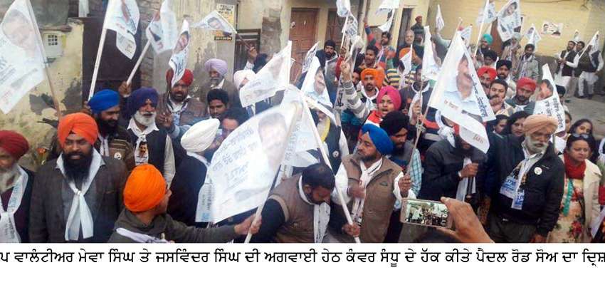 Share on Facebook Share on Twitter Share on Google+ Share on Pinterest Share on Linkedin ਆਪ ਵਾਲੰਟੀਅਰਾਂ ਨੇ ਖਿਜਰਾਬਾਦ ਵਿੱਚ ਕੰਵਰ ਸੰਧੂ ਦੇ ਹੱਕ ਵਿੱਚ ਕੱਢਿਆ ਰੋਡ ਸ਼ੋਅ ਰਜਨੀਕਾਂਤ ਗਰੋਵਰ ਨਬਜ਼-ਏ-ਪੰਜਾਬ ਬਿਊਰੋ, ਮਾਜਰੀ, 30 ਜਨਵਰੀ: ਇੱਥੋਂ ਦੇ ਨੇੜਲੇ ਪਿੰਡ ਖਿਜਰਾਬਾਦ ਵਿਖੇ ਆਮ ਆਦਮੀ ਪਾਰਟੀ ਦੇ ਕਿਸਾਨ ਵਿੰਗ ਦੇ ਪ੍ਰਧਾਨ ਮੇਵਾ ਸਿੰਘ ਖਿਜ਼ਰਾਬਾਦ ਅਤੇ ਯੂਥ ਆਗੂ ਜਸਵਿੰਦਰ ਸਿੰਘ ਕਾਲਾ ਦੀ ਅਗਵਾਈ ਵਿਚ ਪੈਦਲ ਰੋਡ ਸ਼ੋਅ ਕੱਢਿਆ ਗਿਆ। ਇਸ ਰੋਡ ਸ਼ੋਅ ਨਾਲ ਹਲਕਾ ਖਰੜ ਦੇ ਉਮੀਦਵਾਰ ਕੰਵਰ ਸੰਧੂ ਦੀ ਮੁਹਿੰਮ ਨੂੰ ਹੋਰ ਹੁੰਗਾਰਾਮਿਲਿਆ ਅਤੇ ‘ਆਪ’ ਦੇ ਵਰਕਰਾਂ ਅਤੇ ਵਲੰਟੀਅਰਾਂ ਨੇ ਪੈਦਲ ਚੱਲ ਕੇ ਪਿੰਡ ਦੀ ਹਰ ਗਲੀ ਅਤੇ ਹਰ ਨੁੱਕੜ ਵਿੱਚ ਵੀ ਆਮ ਆਦਮੀ ਪਾਰਟੀ ਦਾ ਪ੍ਰਚਾਰ ਕੀਤਾ। ਇਸ ਦੌਰਾਨ ਜਸਵਿੰਦਰ ਸਿੰਘ ਕਾਲਾ ਨੇ ਦੱਸਿਆ ਕਿ ਪੰਜਾਬ ਵਿੱਚ ਆਮ ਪਾਰਟੀ ਦੀ ਹਨੇਰੀ ਚੱਲ ਰਹੀ ਹੈ। ਉਨ੍ਹਾਂ ਦੱਸਿਆ ਕਿ ਹੁਣ ਲੜਾਈ ਸਰਕਾਰ ਬਣਾਉਣ ਦੀ ਨਹੀਂ ਰਹੀ ਹੁਣ ਬਲਕਿ ਸੂਬੇ ਵਿਚ ਸਫਾਇਆ ਕਰਦਿਆਂ ‘ਆਪ’ ਦੀ ਪੂਰਨ ਬਹੁਮਤ ਨਾਲ ਸਰਕਾਰ ਬਣਾਈ ਜਾਵੇਗੀ। ਇਸ ਮੌਕੇ ਪਿੰਡ ਦੇ ਨੋਜਵਾਨਾਂ ਵਿੱਚ ਉਤਸ਼ਾਹ ਵੇਖਣ ਵਾਲਾ ਸੀ। ਇਸ ਮੌਕੇ ਗੁਰਸੇਵਕ ਸਿੰਘਮ ਗਿੰਨੀ, ਜਸਕਰਨ ਸਿੰਘ, ਕਾਲਾ ਕਰਤਾਰਪੁਰ, ਹਰਦੇਵ ਸਿੰਘ, ਜਸਵੀਰ ਸਿੰਘ ਤੋਂ ਇਲਾਵਾ ਭਾਰੀ ਗਿਣਤੀ ਵਿੱਚ ਆਪ ਸਮਰਥਕ ਸ਼ਾਮਲ ਸਨ।