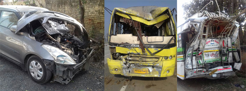 ਧੁੰਧ ਦੇ ਕਾਰਣ ਦੋ ਬੱਸਾਂ ਅਤੇ ਇੱਕ ਕਾਰ ਟਕਰਾਈ ,1 ਦੀ ਮੌਤ, 10 ਜ਼ਖਮੀ