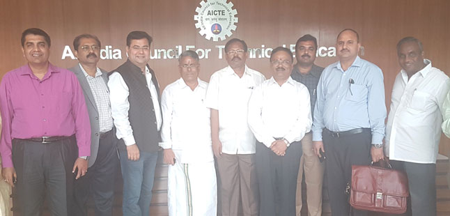 Share on Facebook Share on Twitter Share on Google+ Share on Pinterest Share on Linkedin AICTE should bring more reforms to revive the Technical Education in the Country: All India Colleges Association Nabaz-e-Punjab Bureau, Mohali, 10th November: A delegation of All India Federation of Self Financing Technical Institutions (AIFSFTI) under the leadership of President, Dr. Anshu Kataria; Chief Patron, Sri R.S Munirathinam; General Secretary, Sri KVK Rao recently met with Prof. Anil Sahasrabudhe, Hon’ble Chairman, AICTE, New Delhi. Reforms in Approval Process Handbook in 2018-19: The delegation urged AICTE that keeping the quality of education in mind, AICTE should come up with more educational reforms in the Approval Process Handbook in 2018-19 to revive the education sector in the Country. Fresh Reforms to boost up the Colleges: Dr. Anshu Kataria while speaking said that as per the records in 2016-17, the intake in Diploma/Post Diploma was 12,93,843; in Engineering and Technology- 17,52,296; in Management- 3,29,273; in Pharmacy- 3,29,273; in Architecture- 9,936; in Hotel Management- 6,109. Knowing the fact that half of the seats remained vacant in last year, AICTE should adopt fresh reforms to revive and boost up the Colleges in the Country. More emphasis on digital technology than other resources: Dr. Anshu Kataria while speaking on the occasion said that though land, building, library etc are also important but AICTE should not emphasize more on these. We are living in the age of Information Technology where smart phones, laptops, tabs etc are bigger infrastructure hence AICTE should emphasize on these smart technologies so that the students can access their curriculum anywhere and everywhere easily. Faculty Ratio: Sri RS Munirathinam, Chief Patron while discussing about faculty ratio said that KAW committee has recommended faculty ratio as 1:25, where in AICTE, the prescribed ratio is 1:15. Munirathinam requested AICTE chairman to consider the request of KAW committee and fix the faculty ratio as 1:25. Uniformity in AICTE: Sri K V K Rao while speaking on the occasion said that the norms of Pharmacy Council and Architecture Council overlap with that of AICTE. Hence AICTE should bring uniformity within the system. Sri Srini Bhupalam (Telangana), Sri Panduranga Shetty (Karnataka), Sri P Selvaraj (Tamil Nadu), Mr. Lalit Aggarwal (Delhi), Sri K V K Rao (Andhra Pradesh), Sh. T D Esawara Moorthy (Tamil Nadu), Sh. K G Madhu (Kerala), Sh. Rajeev Chand (Maharashtra), Sh. Shridhar Singh (Rajasthan), Sh. Sridhar (Andhra Pradesh), Sh. Purushotam Sharma (HP), Director PRO etc were also present.