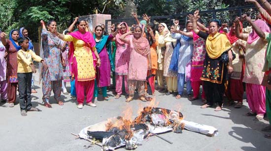 Share on Facebook Share on Twitter Share on Google+ Share on Pinterest Share on Linkedin ਆਂਗਣਵਾੜੀ ਵਰਕਰ ਯੂਨੀਅਨ ਸੀਟੂ ਵੱਲੋਂ ਲਖਨੌਰ ਚੌਂਕ ’ਤੇ ਜਾਮ ਲਗਾ ਕੇ ਸਾੜਿਆ ਸਰਕਾਰ ਦਾ ਪੁਤਲਾ ਨਬਜ਼-ਏ-ਪੰਜਾਬ ਬਿਊਰੋ, ਮੁਹਾਲੀ, 26 ਮਾਰਚ: ਆਂਗÎਣਵਾੜੀ ਵਰਕਰ ਯੂਨੀਅਨ ਸੀਟੂ ਵੱਲੋਂ ਅੱਜ ਜ਼ਿਲ੍ਹਾ ਪ੍ਰਬੰਧਕੀ ਕੰਪਲੈਕਸ ਦੇ ਨੇੜੇ ਲਖਨੌਰ ਚੌਂਕ ’ਤੇ ਕਈ ਘੰਟੇ ਜਾਮ ਲਗਾ ਕੇ ਮੁਹਾਲੀ ਪ੍ਰਸ਼ਾਸਨ ਨੂੰ ਵਕਤ ਪਾਈ ਰੱਖਿਆ। ਯੂਨੀਅਨ ਦੀ ਸੀਨੀਅਰ ਮੀਤ ਪ੍ਰਧਾਨ ਗੁਰਦੀਪ ਕੌਰ ਦੀ ਅਗਵਾਈ ਵਿੱਚ ਵੱਡੀ ਗਿਣਤੀ ਵਿੱਚ ਇਕੱਠੇ ਹੋ ਕੇ ਪੰਜਾਬ ਸਰਕਾਰ ਵੱਲੋਂ ਪੇਸ਼ ਕੀਤੇ ਬਜਟ ਖ਼ਿਲਾਫ਼ ਰੋਸ ਪ੍ਰਦਰਸ਼ਨ ਕੀਤਾ ਅਤੇ ਸੜਕ ’ਤੇ ਜਾਮ ਲਗਾ ਕੇ ਆਵਾਜਾਈ ਰੋਕ ਦਿੱਤੀ। ਜਿਸ ਕਾਰਨ ਗੱਡੀਆਂ ਦੀਆਂ ਲੰਮੀਆਂ ਲਾਈਨਾਂ ਲੱਗ ਗਈਆਂ। ਗੁਰਦੀਪ ਕੌਰ ਨੇ ਕਿਹਾ ਕਿ ਕੈਪਟਨ ਦੀ ਸਰਕਾਰ ਨੇ ਬਜਟ ਵਿੱਚ ਆਂਗਣਵਾੜੀ ਵਰਕਰਾਂ ਨੂੰ ਅੱਖੋਂ ਪਰਖੋਂ ਕਰਕੇ ਮਤਰਈ ਮਾਂ ਵਾਲਾ ਸਲੂਕ ਕੀਤਾ ਗਿਆ ਹੈ। ਉਨ੍ਹਾਂ ਕਿਹਾ ਕੈਪਟਨ ਨੇ ਚੋਣਾ ਵੇਲੇ ਵਾਅਦਾ ਕੀਤਾ ਸੀ ਕਿ ਜੇਕਰ ਪੰਜਾਬ ’ਚ ਕਾਂਗਰਸ ਦੀ ਸਰਕਾਰ ਬਣੀ ਤਾਂ ਆਂਗਣਵਾੜੀ ਵਰਕਰਾਂ ਦੀਆਂ ਮੁਸਕਲਾਂ ਦਾ ਹੱਲ ਪਹਿਲ ਦੇ ਅਧਾਰ ਤੇ ਕੀਤਾ ਜਾਵੇਗਾ। ਉਨ੍ਹਾ ਕਿਹਾ ਕਿ ਬੱਜਟ ਵਿੱਚ ਉਨ੍ਹਾਂ ਦੀਆਂ ਮੰਗਾਂ ਦਾ ਕੋਈ ਹੱਲ ਨਹੀਂ ਕੀਤਾ ਗਿਆ ਅਤੇ ਨਾ ਹੀ ਉਨ੍ਹਾਂ ਦੇ ਮਾਣ ਭੱਤੇ ’ਚ ਵਾਧਾ ਕਰਨ ਬਾਰੇ ਕੋਈ ਜਿਕਰ ਕੀਤਾ ਗਿਆ ਹੈ। ਉਨ੍ਹਾਂ ਮੰਗ ਕੀਤੀ ਕਿ ਹਰਿਆਣਾ ਸਰਕਾਰ ਦੀ ਤਰਜ਼ ਤੇ ਆਂਗਣਵਾੜੀ ਵਰਕਰਾਂ ਨੂੰ ਕੁਸਲ ਅਤੇ ਅਰਧ ਕੁਸਲ ਦਾ ਦਰਜਾ ਦਿੰਦੇ ਹੋਏ ਮਾਣਭੱਤਾ 11429 ਰੁਪਏ ਅਤੇ 5750 ਰੁਪਏ ਤਨਖਾਹ ਦਿਤੀ ਜਾਵੇ। ਦੂਜੇ ਸੂਬਿਆਂ ਵਾਂਗ ਵੈਲਫੇਅਰ ਫੰਡ ਲਾਗੂ ਕੀਤਾ ਜਾਵੇ, ਪੈਨਸ਼ਨ ਅਤੇ ਗਰੈਚੂਟੀ ਦਾ ਪ੍ਰਬੰਧ ਕੀਤਾ ਜਾਵੇ। ਇਸ ਮੌਕੇ ਯੂਨੀਅਨ ਵੱਲੋਂ ਕੈਪਟਨ ਸਰਕਾਰ ਦਾ ਪੁਤਲਾ ਵੀ ਫੂਕਿਆ ਗਿਆ। ਇਸ ਮੌਕੇ ਖਰੜ 2 ਦੀ ਪ੍ਰੁਧਾਨ ਰਜਿੰਦਰ ਕੌਰ, ਸੈਕਟਰੀ ਪੁਸ਼ਪਾ, ਰੀਟਾ ਰਾਣੀ, ਨੀਨਾ ਰਾਣੀ, ਚਰਨਜੀਤ ਕੌਰ ਬਲਾਕ ਪ੍ਰਧਾਨ ਬੱਸੀ ਪਠਾਣਾ, ਬਲਜਿੰਦਰ ਕੌਰ, ਹਰਬੰਸ ਕੌਰ, ਭਿੰਦਰ ਕੌਰ ਅਤੇ ਮਨਜੀਤ ਕੌਰ ਆਦਿ ਨੇ ਵੀ ਧਰਨੇ ਨੂੰ ਸੰਬੋਧਨ ਕੀਤਾ। ਉਧਰ, ਇਕ ਵੱਖਰੇ ਬਿਆਨ ਰਾਹੀਂ ਪੰਜਾਬ ਸੀਟੂ ਦੇ ਜਨਰਲ ਸਕੱਤਰ ਕਾਮਰੇਡ ਰਘੁਨਾਥ ਸਿੰਘ ਨੇ ਆਂਗÎਣਵਾੜੀ ਵਰਕਰਾਂ-ਹੈਲਪਰਾਂ ਵੱਲੋਂ ਅਪਣੀਆਂ ਹੱਕੀ ਅਤੇ ਲੰਬੇ ਸਮੇਂ ਤੋਂ ਲਟਕਦੀਆਂ ਆ ਰਹੀਆਂ ਮੰਗਾਂ ਦੇ ਸਮਰਥਨ ਵਿੱਚ ਕੀਤੇ ਜਾ ਰਹੇ ਸੰਘਰਸ਼ ਦੀ ਜੋਰਦਾਰ ਹਮਾਇਤ ਕੀਤੀੇ। ਉਨ੍ਹਾਂ ਕਿਹਾ ਕਿ ਬਹੁਤ ਦੁੱਖ ਅਤੇ ਅਫਸੋਸ ਦੀ ਗੱਲ ਹੈ ਆਂਗਣਵਾੜੀ ਵਰਕਰਾਂ ਤੋਂ ਕੰਮ ਤਾ ਸਰਕਾਰੀ ਮੁਲਾਜਜ਼ਮਾਂ ਤੋਂ ਵੱਧ ਕੰਮ ਕਰਵਾਇਆ ਜਾ ਰਿਹਾ ਹੈ ਪ੍ਰਤੂ ਆਈਐਸਡੀਐਸ ਸਕੀਮ ਦੇ 43 ਸਾਲ ਬੀਤ ਜਾਣ ਬਾਦ ਵੀ ਆਂਗਣਵਾੜੀ ਵਰਕਰਾਂ ਨੂੰ ਸਰਕਾਰੀ ਮੁਲਾਜ਼ਮ ਤਾਂ ਦੂਰ ਦੀ ਗੱਲ ਇਹਨਾਂ ਨੂੰ ਅਜ ਤੱਕ ਮਜਦੂਰ ਦਾ ਦਰਜਾ ਵੀ ਨਹੀਂ ਦਿਤਾ ਜਾ ਰਿਹਾ। ਕਾਮਰੇਡ ਰਘੁਨਾਥ ਨੇ ਮੰਗ ਕੀਤੀ ਕਿ ਆਂਗਣਵਾੜੀ ਵਰਕਰਾਂ-ਹੈਲਪਰਾਂ ਸਮੇਤ ਸਾਰੇ ਸਕੀਮ ਵਰਕਰਾਂ ਨੂੰ ਘੱਟੋ ਘੱਟ ਉਜਰਤ ਦੇ ਘੇਰੇ ’ਚ ਲਿਆਂਦਾ ਜਾਵੇ ਅਤੇ ਘੱਟੋ ਘੱਟ ਉਜਰਤ 18 ਹਜ਼ਾਰ ਰੁਪਏ ਕੀਤੀ ਜਾਵੇ।