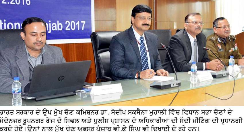 Share on Facebook Share on Twitter Share on Google+ Share on Pinterest Share on Linkedin ਵਿਧਾਨ ਸਭਾ ਚੋਣਾਂ ਨੂੰ ਅਮਨ ਅਮਾਨ ਨਾਲ ਨੇਪਰੇ ਚੜਾਉਣ ਲਈ ਅਧਿਕਾਰੀ ਨਿਰਪੱਖ ਰਹਿ ਕੇ ਡਿਊਟੀ ਨਿਭਾਉਣ: ਡਾ. ਸਕਸੈਨਾ ਚੋਣਾਂ ਦੌਰਾਨ ਨਸ਼ਾ, ਪੈਸੇ ਅਤੇ ਸ਼ਰਾਬ ਵੰਡਣ ਵਾਲਿਆਂ ਨੂੰ ਕਿਸੇ ਵੀ ਕੀਮਤ ’ਤੇ ਬਖ਼ਸ਼ਿਆ ਨਾ ਜਾਵੇ: ਵੀ.ਕੇ. ਸਿੰਘ ਭਾਰਤ ਸਰਕਾਰ ਦੇ ਉਪ ਚੋਣ ਕਮਿਸ਼ਨਰ ਡਾ. ਸੰਦੀਪ ਸਕਸੈਨਾ ਵੱਲੋਂ ਮੁਹਾਲੀ ਵਿੱਚ ਵੱਖ-ਵੱਖ ਵਿਭਾਗਾਂ ਦੇ ਅਧਿਕਾਰੀਆਂ ਨਾਲ ਮੀਟਿੰਗ ਅਮਨਦੀਪ ਸਿੰਘ ਸੋਢੀ ਨਬਜ਼-ਏ-ਪੰਜਾਬ ਬਿਊਰੋ, ਮੁਹਾਲੀ, 30 ਦਸੰਬਰ: ਪੰਜਾਬ ਵਿਧਾਨ ਸਭਾ ਚੋਣਾਂ-2017 ਨੂੰ ਅਮਨ ਅਮਾਨ ਨਾਲ ਨੇਪਰੇ ਚੜ੍ਹਾਉਣ ਲਈ ਅਧਿਕਾਰੀ ਅਤੇ ਕਰਮਚਾਰੀ ਆਪਣੀ ਡਿਊਟੀ ਨਿਰਪੱਖ ਰਹਿ ਕੇ ਪੂਰੀ ਤਨਦੇਹੀ ਨਾਲ ਨਿਭਾਉਣ ਅਤੇ ਚੋਣਾਂ ਦੌਰਾਨ ਅਮਨ ਅਤੇ ਕਾਨੂੰਨ ਦੀ ਵਿਵਸਥਾ ਨੂੰ ਕਾਇਮ ਰੱਖਣ ਲਈ ਪੁਰੀ ਚੋਕਸੀ ਵਰਤੀ ਜਾਵੇ। ਇਨ੍ਹਾਂ ਵਿਚਾਰਾਂ ਦਾ ਪ੍ਰਗਟਾਵਾ ਉਪ ਚੋਣ ਕਮਿਸ਼ਨਰ ਭਾਰਤ ਡਾ. ਸੰਦੀਪ ਸਕਸੈਨਾ ਨੇ ਨਗਰ ਨਿਗਮ ਭਵਨ ਦੇ ਮੀਟਿੰਗ ਹਾਲ ਵਿਖੇ ਵਿਧਾਨ ਸਭਾ ਚੋਣਾਂ ਦੇ ਮੱਦੇਨਜਰ ਤਿਆਰੀਆਂ ਦਾ ਜਾਇਜ਼ਾ ਲੈਣ ਲਈ ਰੂਪਨਗਰ ਰੇਂਜ ਵਿੱਚ ਪੈਂਦੇ ਜ਼ਿਲ੍ਹਾ ਸਾਹਿਬਜ਼ਾਦਾ ਅਜੀਤ ਸਿੰਘ ਨਗਰ, ਰੂਪਨਗਰ ਅਤੇ ਸਹੀਦ ਭਗਤ ਸਿੰਘ ਨਗਰ ਦੇ ਡਿਪਟੀ ਕਮਿਸ਼ਨਰ-ਕਮ-ਜ਼ਿਲ੍ਹਾ ਚੋਣ ਅਫ਼ਸਰਾਂ, ਜ਼ਿਲ੍ਹਾ ਪੁਲੀਸ ਮੁਖੀਆਂ ਅਤੇ ਵਿਧਾਨ ਸਭਾ ਹਲਕਿਆਂ ਦੇ ਐਸ.ਡੀ.ਐਮਜ਼-ਕਮ- ਸਹਾਇਕ ਰਿਟਰਨਿੰਗ ਅਫ਼ਸਰਾਂ ਅਤੇ ਹੋਰ ਸਿਵਲ ਤੇ ਪੁਲੀਸ ਪ੍ਰਸਾਸ਼ਨ ਦੇ ਅਧਿਕਾਰੀਆਂ ਨਾਲ ਸੱਦੀ ਮੀਟਿੰਗ ਦੀ ਪ੍ਰਧਾਨਗੀ ਕਰਦਿਆਂ ਕੀਤਾ। ਇਸ ਮੌਕੇ ਮੁੱਖ ਚੋਣ ਅਫ਼ਸਰ ਪੰਜਾਬ ਵੀ.ਕੇ. ਸਿੰਘ, ਵਧੀਕ ਮੁੱਖ ਚੋਣ ਅਫ਼ਸਰ ਦੀਪਰਾਵਾ ਲਕਰਾ ਆਈ.ਏ.ਐਸ, ਵਧੀਕ ਡਾਇਰੈਕਟਰ ਜਨਰਲ ਪੁਲੀਸ ਵੀ.ਕੇ. ਭਾਵਰਾ, ਕਮਿਸ਼ਨਰ ਰੂਪਨਗਰ ਰੇਂਜ ਡਾ. ਐਸ. ਕਰਨ ਰਾਜੂ, ਡੀ.ਆਈ.ਜੀ ਗੁਰਸ਼ਰਨ ਸਿੰਘ ਸੰਧੂ, ਡਿਪਟੀ ਕਮਿਸ਼ਨਰ-ਕਮ-ਜ਼ਿਲ੍ਹਾ ਚੋਣ ਅਫ਼ਸਰ ਐਸ.ਏ.ਐਸ.ਨਗਰ ਡੀ.ਐਸ. ਮਾਂਗਟ, ਡਿਪਟੀ ਕਮਿਸ਼ਨਰ-ਕਮ-ਜ਼ਿਲ੍ਹਾ ਚੋਣ ਅਫ਼ਸਰ ਰੂਪਨਗਰ ਕਰਨੇਸ ਸ਼ਰਮਾ, ਡਿਪਟੀ ਕਮਿਸ਼ਨਰ-ਕਮ-ਜ਼ਿਲ੍ਹਾ ਚੋਣ ਅਫ਼ਸਰ ਸਹੀਦ ਭਗਤ ਸਿੰਘ ਨਗਰ ਵਿਪੁਨ ਉਜਵਲ ਅਤੇ ਜ਼ਿਲ੍ਹਾ ਪੁਲੀਸ ਮੁਖੀ ਐਸ.ਏ.ਐਸ.ਨਗਰ ਕੁਲਦੀਪ ਸਿੰਘ ਚਾਹਲ, ਜ਼ਿਲ੍ਹਾ ਪੁਲੀਸ ਮੁਖੀ ਰੂਪਨਗਰ ਵਰਿੰਦਰਪਾਲ ਸਿੰਘ, ਜ਼ਿਲ੍ਹਾ ਪੁਲੀਸ ਮੁਖੀ ਸਹੀਦ ਭਗਤ ਸਿੰਘ ਨਗਰ ਨਵੀਨ ਸਿੰਗਲਾ ਅਤੇ ਵਿਧਾਨ ਸਭਾ ਹਲਕਿਆਂ ਦੇ ਸਹਾਇਕ ਰਿਟਰਨਿੰਗ ਅਫ਼ਸਰ ਵੀ ਮੌਜੂਦ ਸਨ। ਇਸ ਮੌਕੇ ਡਾ. ਸਕਸੈਨਾ ਨੇ ਮੀਟਿੰਗ ਨੂੰ ਸੰਬੋਧਨ ਕਰਦਿਆਂ ਕਿਹਾ ਕਿ ਚੋਣਾਂ ਦੀ ਡਿਊਟੀ ਸਭ ਤੋਂ ਅਹਿੰਮ ਹੁੰਦੀ ਹੈ। ਇਸ ਲਈ ਚੋਣ ਡਿਊਟੀ ਨੂੰ ਪੁਰੀ ਇਮਾਨਦਾਰੀ ਨਾਲ ਨਿਭਾਇਆ ਜਾਵੇ ਅਤੇ ਮੁੱਖ ਚੋਣ ਕਮਿਸ਼ਨਰ ਭਾਰਤ ਦੀਆਂ ਹਦਾਇਤਾਂ ਦੀਆਂ ਇੰਨ ਬਿੰਨ ਪਾਲਣਾ ਕੀਤੀ ਜਾਵੇ। ਉਨ੍ਹਾਂ ਹੋਰ ਕਿਹਾ ਕਿ ਚੋਣਾਂ ਦੋਰਾਨ ਪੁਲੀਸ ਦੀ ਡਿਊਟੀ ਸਭ ਤੋਂ ਅਹਿਮ ਹੁੰਦੀ ਹੈ ਸਿਵਲ ਅਤੇ ਪੁਲਿਸ ਪ੍ਰਸਾਸ਼ਨ ਨੂੰ ਚੋਣਾਂ ਦੌਰਾਨ ਟੀਮ ਵਰਕ ਦੇ ਤੌਰ ਤੇ ਕੰਮ ਕਰਨ ਦੀ ਲੋੜ ਹੈ। ਉਨ੍ਹਾਂ ਕਿਹਾ ਕਿ ਪੁਲਿਸ ਵੋਟਰਾਂ ਨੂੰ ਸੁਖਾਵਾਂ ਮਹੌਲ ਦੇਣ ਲਈ ਆਪਣੀ ਡਿਊਟੀ ਪੂਰੀ ਤਨਦੇਹੀ ਨਾਲ ਨਿਭਾਵੇ। ਉਨ੍ਹਾਂ ਕਿਹਾ ਕਿ ਸਮਾਜ ਵਿਰੋਧੀ ਅਨਸਰਾਂ ਤੇ ਸਖ਼ਤ ਨਿੱਗਾ੍ਹ ਰੱਖੀ ਜਾਵੇ ਅਤੇ ਕਿਸੇ ਨੂੰ ਵੀ ਅਮਨ ਕਾਨੂੰਨ ਦੀ ਵਿਵਸਥਾ ਨੂੰ ਭੰਗ ਕਰਨ ਦੀ ਆਗਿਆ ਨਾ ਦਿੱਤੀ ਜਾਵੇ। ਉਨ੍ਹਾਂ ਪੁਲੀਸ ਨੂੰ ਭਗੌੜਿਆਂ (ਪੀ.ਓਜ਼) ਨੂੰ ਵੀ ਗ੍ਰਿਫ਼ਤਾਰ ਕਰਨ ਦੀਆਂ ਹਦਾਇਤਾਂ ਦਿੱਤੀਆਂ ਅਤੇ ਜ਼ਿਲ੍ਹਿਆਂ ਵਿੱਚ ਹਥਿਆਰ ਜਮ੍ਹਾਂ ਕਰਾਉਣ ਦੇ ਕੰਮ ਨੂੰ 100 ਫੀਸਦੀ ਮ