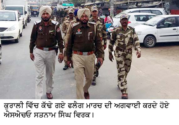 ਵਿਧਾਨ ਸਭਾ ਚੋਣਾਂ ਅਤੇ ਗਣਤੰਤਰ ਦਿਵਸ ਦੇ ਮੱਦੇਨਜ਼ਰ ਸ਼ਹਿਰ ਵਿੱਚ ਪੈਰਾ ਮਿਲਟਰੀ ਫੋਰਸ ਦੇ ਜਵਾਨਾਂ ਅਤੇ ਕੁਰਾਲੀ ਪੁਲੀਸ ਦੇ ਅਧਿਕਾਰੀਆਂ ਅਤੇ ਕਰਮਚਾਰੀਆਂ ਨੇ ਫਲੈਗ ਮਾਰਚ ਕੀਤਾ। ਕੁਰਾਲੀ ਥਾਣੇ ਦੇ ਐਸ.ਐਚ.ਓ ਸਤਨਾਮ ਸਿੰਘ ਵਿਰਕ ਅਤੇ ਟਰੈਫ਼ਿਕ ਪੁਲੀਸ ਦੇ ਇੰਚਾਰਜ ਰਜਿੰਦਰ ਸਿੰਘ ਦੀ ਅਗਵਾਈ ਹੇਠ ਪੁਲੀਸ ਜਵਾਨਾਂ ਨੇ ਮੇਨ ਬੱਸ ਅੱਡੇ ਤੋਂ ਫਲੈਗ ਮਾਰਚ ਸ਼ੁਰੂ ਕੀਤਾ ਜੋ ਸ਼ਹਿਰ ਦੇ ਵੱਖ-ਵੱਖ ਹਿੱਸਿਆਂ ’ਚੋਂ ਗੁਜਰਿਆ।