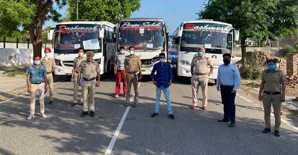 Share on Facebook Share on Twitter Share on Google+ Share on Pinterest Share on Linkedin ਪੰਜਾਬ ਵਿੱਚ ਫਸੇ ਦੂਜੇ ਸੂਬਿਆਂ ਦੇ ਲੋਕਾਂ ਨੂੰ ਵਾਪਸ ਪਿਤਰੀ ਰਾਜਾਂ ’ਚ ਭੇਜਣ ਦੀ ਮੁਹਿੰਮ ਸ਼ੁਰੂ ਮੈਡੀਕਲ ਜਾਂਚ ਮਗਰੋਂ 464 ਵਿਅਕਤੀਆਂ ਨੂੰ ਜੰਮੂ-ਕਸ਼ਮੀਰ ਵਿੱਚ ਲਖਨਪੁਰ ਲਈ ਕੀਤਾ ਰਵਾਨਾ ਨਬਜ਼-ਏ-ਪੰਜਾਬ ਬਿਊਰੋ, ਮੁਹਾਲੀ, 4 ਮਈ: ਪੰਜਾਬ ਵਿਚ ਫਸੇ ਦੂਜੇ ਰਾਜਾਂ ਦੇ ਲੋਕਾਂ ਨੂੰ ਵਾਪਸ ਭੇਜਣ ਦੀ ਮੁਹਿੰਮ ਅੱਜ ਸੁਰੂ ਹੋਈ। ਕੁਲ 464 ਲੋਕਾਂ ਨੂੰ ਮੁਹਾਲੀ, ਖਰੜ ਅਤੇ ਡੇਰਾਬਸੀ ਤੋਂ ਜੰਮੂ-ਕਸਮੀਰ ਦੇ ਲਖਨਪੁਰ ਲਈ ਭੇਜਿਆ ਗਿਆ। ਇਹ ਜਾਣਕਾਰੀ ਖੇਤਰੀ ਆਵਾਜਾਈ ਅਥਾਰਟੀ (ਆਰਟੀਏ) ਸ੍ਰੀ ਸੁਖਵਿੰਦਰ ਕੁਮਾਰ ਨੇ ਦਿੱਤੀ। ਵਧੇਰੇ ਜਾਣਕਾਰੀ ਦਿੰਦਿਆਂ ਉਨ੍ਹਾਂ ਕਿਹਾ ਕਿ ਡਿਪਟੀ ਕਮਿਸਨਰ ਸ੍ਰੀ ਗਿਰੀਸ ਦਿਆਲਨ ਦੇ ਦਿਸਾ ਨਿਰਦੇਸਾਂ ਅਨੁਸਾਰ ਪੰਜਾਬ ਵਿਚ ਫਸੇ ਲੋਕਾਂ ਨੂੰ ਆਪਣੇ ਰਾਜਾਂ ਵਿੱਚ ਵਾਪਸ ਭੇਜਣ ਲਈ ਬੱਸਾਂ ਵਿਚ ਬੈਠਾਉਣ ਤੋਂ ਪਹਿਲਾਂ ਨਵਾਂ ਗਰਾਓਂ ਵਿਖੇ ਡਾਕਟਰੀ ਜਾਂਚ ਦੇ ਪੁਖਤਾ ਪ੍ਰਬੰਧ ਕੀਤੇ ਗਏ ਸਨ। ਵੇਰਵਾ ਦਿੰਦਿਆਂ ਉਨ੍ਹਾਂ ਦੱਸਿਆ ਕਿ ਮੁਹਾਲੀ ਤੋਂ ਐਸਡੀਐਮ ਜਗਦੀਪ ਸਹਿਗਲ ਦੀ ਨਿਗਰਾਨੀ ਹੇਠ ਕੁੱਲ 179 ਵਿਅਕਤੀਆਂ ਨੂੰ 8 ਬੱਸਾਂ ਵਿੱਚ ਵਾਪਸ ਭੇਜਿਆ ਗਿਆ। ਜਦੋਂ ਕਿ ਡੇਰਾਬਸੀ ਤੋਂ ਐਸਡੀਐਮ ਕੁਲਦੀਪ ਬਾਵਾ ਦੀ ਨਿਗਰਾਨੀ ਹੇਠ ਕੁੱਲ 93 ਵਿਅਕਤੀਆਂ ਨੂੰ 3 ਬੱਸਾਂ ਰਾਹੀਂ ਵਾਪਸ ਭੇਜਿਆ ਗਿਆ ਅਤੇ ਖਰੜ ਤੋਂ ਐਸਡੀਐਮ ਹਿਮਾਸ਼ੂ ਜੈਨ ਨੇ ਕੁੱਲ 192 ਲੋਕ 7 ਬੱਸਾਂ ਰਾਹੀਂ ਭੇਜਿਆ ਗਿਆ। ਉਹਨਾਂ ਅੱਗੇ ਕਿਹਾ ਕਿ ਪ੍ਰਵਾਸੀਆਂ ਨੂੰ ਵਾਪਸ ਭੇਜਣ ਤੋਂ ਪਹਿਲਾਂ ਡਾਕਟਰੀ ਜਾਂਚ ਦੀ ਪ੍ਰਕਿਰਿਆ ਨੂੰ ਜਾਰੀ ਕਰਦਿਆਂ, ਸਮਾਜਿਕ ਦੂਰੀਆਂ ਦੇ ਦਿਸਾ-ਨਿਰਦੇਸਾਂ ਦੀ ਪਾਲਣਾ ਦੇ ਸੰਬੰਧ ਵਿਚ ਸਾਰੀਆਂ ਸਾਵਧਾਨੀਆਂ ਦੀ ਪਾਲਣਾ ਕੀਤੀ ਗਈ।