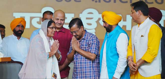 Share on Facebook Share on Twitter Share on Google+ Share on Pinterest Share on Linkedin Bhagwant Mann and Arvind Kejriwal Resolve to Fulfill the Dreams of Martyrs Nabaz-e-Punjab, Sunam, July 31: Punjab Chief Minister Bhagwant Singh Mann and National Convener of Aam Aadmi Party Arvind Kejriwal on Thursday renewed their pledge to further realize the dreams of martyrs by ensuring welfare of every section of society. Addressing the gathering after laying the foundation stone of projects worth around Rs 85 crore to give facelift to Shaheed Udham Singh wala town, the National convener of AAP said that Shaheed Udham Singh made a supreme sacrifice for the sake of the freedom of the country. Arvind kejriwal said that it is a matter of immense pride and satisfaction for him to be part of this function to pay tribute to the iconic martyr. He said that India’s freedom struggle saw countless sacrifices for the sake of the country to carve out an egalitarian society to ensure welfare of the weaker and underprivileged sections. However, the National Convener of AAP said that it is unfortunate that even after 75 years of freedom none of their aspirations have been fulfilled as those in power misused their authority to plunder the wealth. He said that previous regimes ruined Punjab by spreading the curse of drugs and corruption adding that they people mercilessly looted the public money for safeguarding their own interests. Arvind Kejriwal said that schools and hospitals were in shackles as these governments never bothered about providing quality health services and education to the youth of the state adding that drugs were introduced in the state by these leaders, which ruined our generations. The former Delhi Chief Minister said that it is elated to learn that the backbone of the drug has been broken for which the state government needs a pat. He said that the manner in which this anti-drug campaign has been launched finds no parallel in contemporary Indian history. Arvind Kejriwal said that the most notorious and feared drug lord has been put behind the bars by an honest government in the state. CM Mann said that Shaheed Udham Singh was a true son of soil, who had in a heroic act exhibited exemplary courage by killing Michael O’ Dwyer, the prime perpetrator of Jallianwala Bagh massacre. Bhagwant Mann said that the unprecedented sacrifice made by this iconic martyr at the altar of national freedom struggle helped the country to overthrow the yoke of British Imperialism. He further said that Shaheed Udham Singh waited for 21 years to avenge the massacre at Jallianwala Bagh and thus laid the foundation of the freedom of the nation. The Chief Minister said that he had been regularly paying visits to the Caxton Hall where Shaheed Udham Singh had taken revenge on millions of Indians. He said that it is unfortunate that even after more than 75 years of freedom the benefits of freedom have still not reached every household. Bhagwant Singh Mann said that those in power had misused the freedom to spread the tentacles of chitta (drugs), amass wealth by plundering the masses, encouraging corruption along with other menaces. The Chief Minister said that the successive Prime Ministers have delivered almost the same statements during their Independence Day speeches from the Red Fort. He said that it is the irony of the country that these leaders have delivered only theatricals to the people and masses are still far away from even basic amenities. Bhagwant Singh Mann said that the dreams of martyrs like Shaheed Udham Singh have still not been realized as these people have never made any concerted effort in this regard. CM Mann said that the Aam Aadmi Party is making tireless efforts to realize the dreams of the legendary martyrs adding that it is a matter of immense pride and satisfaction that this government is making concerted efforts in this regard. He said that every inch of this sacred land has the footprint of great Gurus, saints, seers and martyrs, who have shown us the way to oppose tyranny, injustice and oppression. Bhagwant Singh Mann said that the state government has been making efforts to ensure the comprehensive development of the state and prosperity of its people. On the occasion, the Chief Minister and Arvind Kejriwal felicitated the descendents of Shaheed Udham Singh. Earlier, the Cabinet Minister Aman Arora welcomed the Chief Minister and other dignitaries to the sacred land. Prominent amongst others present on the occasion included Cabinet Ministers Aman Arora, Harpal Singh Cheema, Laljit Singh Bhullar, Dr Ravjot Singh, Gurmeet Singh Khuddian, Harbhajan Singh ETO, Barinder Kumar Goyal and Hardeep Singh Mundian, senior AAP leader Manish Sisodia, Deputy Speaker Punjab Vidhan Sabha Jai Kishan Singh Rouri, MLAs Amansher Singh Sherry Kalsi, Jagdeep Kamboj Goldy, Prof Baljinder kaur and others were also present.
