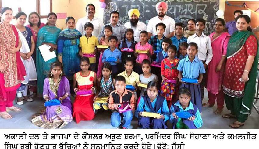 ਭਾਜਪਾ ਕੌਂਸਲਰ ਅਰੁਣ ਸ਼ਰਮਾ ਵੱਲੋਂ ਸਰਕਾਰੀ ਸਕੂਲ ਦੇ ਹੋਣਹਾਰ ਬੱਚਿਆਂ ਦਾ ਸਨਮਾਨ