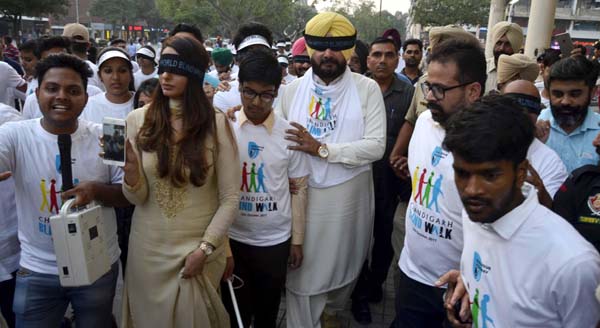Share on Facebook Share on Twitter Share on Google+ Share on Pinterest Share on Linkedin ਨੇਤਰਹੀਣ ਇਨਸਾਨ ਤਰਸ ਦੇ ਨਹੀਂ, ਸਨਮਾਨ ਦੇ ਹੱਕਦਾਰ: ਨਵਜੋਤ ਸਿੱਧੂ ਕੈਬਨਿਟ ਮੰਤਰੀ ਨਵਜੋਤ ਸਿੱਧੂ ਨੇ ਚੰਡੀਗੜ੍ਹ ਵਿੱਚ ਨੇਤਰਹੀਣ ਪੈਦਲ ਮਾਰਚ ਵਿੱਚ ਹਿੱਸਾ ਲਿਆ ਵਿਸ਼ੇਸ਼ ਵਿਅਕਤੀਆਂ ਲਈ ਕੰਮ ਕਰਦੀ ਸੰਸਥਾ ਹਾਈਵੇਜ਼ ਡਾਇਲਾਗ ਨੂੰ ਹਰ ਸਾਲ 5 ਲੱਖ ਸਹਾਇਤਾ ਦੇਣ ਦਾ ਐਲਾਨ ਅਮਨਦੀਪ ਸਿੰਘ ਸੋਢੀ ਨਬਜ਼-ਏ-ਪੰਜਾਬ ਬਿਊਰੋ, ਚੰਡੀਗੜ੍ਹ, 12 ਅਕਤੂਬਰ: ਪੰਜਾਬ ਦੇ ਸਥਾਨਕ ਸਰਕਾਰਾਂ ਅਤੇ ਸੈਰ ਸਪਾਟਾ ਤੇ ਸੱÎਭਿਆਚਾਰਕ ਮਾਮਲਿਆਂ ਬਾਰੇ ਮੰਤਰੀ ਸ. ਨਵਜੋਤ ਸਿੱਧੂ ਨੇ ਅੱਜ ਵਿਸ਼ਵ ਦ੍ਰਿਸ਼ਟੀ ਦਿਵਸ ਮੌਕੇ ਚੰਡੀਗੜ੍ਹ ਸੈਕਟਰ-17 ਪਲਾਜ਼ਾ ਵਿਖੇ ਨੇਤਰਹੀਣ ਬੱਚਿਆਂ ਨਾਲ ਨੇਤਰਹੀਣ ਪੈਦਲ ਮਾਰਚ (ਬਲਾਇੰਡ ਵਾਕ) ਵਿੱਚ ਹਿੱਸਾ ਲਿਆ। ਸ. ਸਿੱਧੂ ਨੇ ਖੁਦ ਅੱਖਾਂ ’ਤੇ ਪੱਟੀ ਬੰਨ ਕੇ ਨੇਤਰਹੀਣ ਬੱਚਿਆਂ ਨਾਲ ਇਸ ਮਾਰਚ ਵਿੱਚ ਹਿੱਸਾ ਲੈਦਿਆਂ ਪੂਰੀ ਪਲਾਜ਼ਾ ਮਾਰਕਿਟ ਦਾ ਚੱਕਰ ਲਗਾਇਆ। ਇਹ ਮਾਰਚ 1 ਕਿਲੋਮੀਟਰ ਦੇ ਕਰੀਬ ਸੀ। ਇਸ ਮਾਰਚ ਵਿੱਚ ਸ. ਸਿੱਧੂ ਸਮੇਤ ਵੱਖ-ਵੱਖ ਖੇਤਰ ਦੀਆਂ ਪ੍ਰਸਿੱਧ ਹਸਤੀਆਂ, ਮੀਡੀਆ ਕਰਮੀਆਂ ਤੇ ਆਮ ਲੋਕਾਂ ਨੇ ਵੀ ਅੱਖਾਂ ’ਤੇ ਪੱਟੀ ਬੰਨ ਕੇ ਹਿੱਸਾ ਲਿਆ। ਇਸ ਮਾਰਚ ਦਾ ਅਹਿਮ ਪਹਿਲੂ ਇਹ ਸੀ ਕਿ ਨੇਤਰਹੀਣ ਬੱਚੇ ਮਾਰਚ ਦੀ ਅਗਵਾਈ ਕਰ ਰਹੇ ਸਨ ਜਿਨ੍ਹਾਂ ਦੀ ਬਾਂਹ ਫੜ੍ਹ ਕੇ ਸ. ਸਿੱਧੂ ਸਮੇਤ ਅਨੇਕਾ ਸਖਸ਼ੀਅਤਾ ਨੇ ਹਿੱਸਾ ਲਿਆ ਤਾਂ ਜੋ ਨੇਤਰਹੀਣਾਂ ਦੀਆਂ ਮੁਸ਼ਕਿਲਾਂ ਨੂੰ ਪ੍ਰੈਕਟੀਕਲੀ ਤੌਰ ’ਤੇ ਸਮਝਿਆ ਜਾ ਸਕੇ। ਇਸ ਮੌਕੇ ਬੱਚਿਆਂ ਨੂੰ ਸੰਬੋਧਨ ਕਰਦਿਆਂ ਸ. ਸਿੱਧੂ ਨੇ ਕਿਹਾ ਕਿ ਇਹ ਬੱਚੇ ਅਸਲ ਜ਼ਿੰਦਗੀ ਦੇ ਚੈਂਪੀਅਨ ਹਨ ਜਿਹੜੇ ਕੁਦਰਤ ਦੀ ਮਾਰ ਦੇ ਬਾਵਜੂਦ ਆਪਣਾ ਜੀਵਨ ਸਵੈ-ਮਾਣ ਤੇ ਇੱਜ਼ਤ ਨਾਲ ਜਿਉਂਦੇ ਹਨ। ਉਨ੍ਹਾਂ ਕਿਹਾ ਕਿ ਇਹ ਬੱਚੇ ਸਾਡੇ ਸਾਰਿਆਂ ਲਈ ਪ੍ਰੇਰਣਾ ਦਾ ਸਰੋਤ ਹਨ ਕਿ ਮੁਸ਼ਕਿਲ ਸਥਿਤੀਆਂ ਦੇ ਬਾਵਜੂਦ ਕਿਵੇਂ ਜ਼ਿੰਦਗੀ ਦੀਆਂ ਸਚਾਈਆਂ ਦਾ ਸਾਹਮਣਾ ਕੀਤਾ ਜਾ ਸਕਦਾ ਹੈ। ਉਨ੍ਹਾਂ ਇਸ ਮੌਕੇ ਵੱਡੀ ਗਿਣਤੀ ਵਿੱਚ ਜੁੜੇ ਇਕੱਠ ਨੂੰ ਸੰਬੋਧਨ ਕਰਦਿਆਂ ਕਿਹਾ ਕਿ ਨੇਤਰਹੀਣ ਵਿਅਕਤੀ ਤਰਸ ਦੇ ਨਹੀਂ ਸਗੋਂ ਸਨਮਾਨ ਦੇ ਪਾਤਰ ਹਨ। ਉਨ੍ਹਾਂ ਕਿਹਾ ਕਿ ਸਾਨੂੰ ਸਾਰਿਆਂ ਨੂੰ ਇਨ੍ਹਾਂ ਦਾ ਪੂਰਾ ਮਾਣ ਦੇਣਾ ਚਾਹੀਦਾ ਹੈ। ਉਨ੍ਹਾਂ ਕਿਹਾ ਕਿ ਅੱਜ ਇਸ ਮਾਰਚ ਵਿੱਚ ਹਿੱਸਾ ਲੈ ਕੇ ਇਸ ਅਸਲੀਅਤ ਦਾ ਪਤਾ ਲੱਗਾ ਹੈ ਕਿ ਇਹ ਕਿੰਨੀਆਂ ਅੌਕੜਾਂ ਦਾ ਸਾਹਮਣਾ ਕਰਦੇ ਹਨ। ਉਨ੍ਹਾਂ ਉਨ੍ਹਾਂ ਕਿਹਾ ਕਿ ਹਾਈਵੇਜ਼ ਡਾਈਲਾਗ ਸੰਸਥਾ ਵਧਾਈ ਦੀ ਪਾਤਰ ਹੈ ਜਿਸ ਨੇ ਇਹ ਨਿਵੇਕਲਾ ਉਪਰਾਲਾ ਕਰਕੇ ਇਨ੍ਹਾਂ ਬੱਚਿਆਂ ਨੂੰ ਵੱਡਾ ਸਤਿਕਾਰ ਦਿੱਤਾ ਹੈ। ਉਨ੍ਹਾਂ ਇਸ ਸੰਸਥਾ ਨੂੰ ਹਰ ਸਾਲ ਆਪਣੇ ਅਖਤਿਆਰੀ ਕੋਟੇ ਵਿਚੋਂ ਪੰਜ ਲੱਖ ਰੁਪਏ ਪ੍ਰਤੀ ਸਾਲ ਵਿੱਤੀ ਮਦਦ ਦੇਣ ਦਾ ਐਲਾਨ ਵੀ ਕੀਤਾ। ਸ੍ਰੀ ਸਿੱਧੂ ਨੇ ਇਹ ਵੀ ਖੁਲਾਸਾ ਕੀਤਾ ਕਿ ਉਨ੍ਹਾਂ ਖੁਦ ਅੱਖਾਂ ਦਾਨ ਕਰਨ ਸਮੇਤ ਸਰੀਰ ਦੇ ਹੋਰ ਅੰਗ ਦਾਨ ਕਰਨ ਦਾ ਫਾਰਮ ਭਰਿਆ ਹੋਇਆ ਹੈ। ਉਨ੍ਹਾਂ ਬਾਕੀ ਲੋਕਾਂ ਨੂੰ ਵੀ ਅਪੀਲ ਕੀਤੀ ਕਿ ਉਹ ਵੀ ਅੱਖਾਂ ਦਾਨ ਕਰਨ ਦਾ ਪ੍ਰਣ ਕਰਨ। ਉਨ੍ਹਾਂ ਕਿਹਾ ਕਿ ਜੇਕਰ ਸਾਰੇ ਵਿਅਕਤੀ ਅੱਖਾਂ ਦਾਨ ਕਰਨ ਦਾ ਇਰਾਦਾ ਕਰ ਲੈਣ ਤਾਂ ਦੁਨੀਆਂ ਵਿੱਚ ਕੋਈ ਵੀ ਵਿਅਕਤੀ ਨੇਤਰਹੀਣ ਨਹੀਂ ਰਹੇਗਾ। ਉਨ੍ਹਾਂ ਇਸ ਮੌਕੇ ਹਾਈਵੇਜ਼ ਡਾਇਲਾਗ ਦੇ ਵੈਟਰਨ ਸ੍ਰੀ ਦਵਿੰਦਰ ਸ਼ਰਮਾ ਅਤੇ ਪੀ.ਜੀ.ਆਈ. ਦੇ ਡਾਇਰੈਕਟਰ ਤੇ ਅੱਖਾਂ ਦੇ ਪ੍ਰਸਿੱਧ ਡਾਕਟਰ ਜਗਤ ਰਾਮ ਨੇ ਵੀ ਸੰਬੋਧਨ ਕਰਦਿਆਂ ਸ. ਸਿੱਧੂ ਵਲੋਂ ਕੀਤੀ ਸ਼ਮੂਲੀਅਤ ਅਤੇ ਵਿੱਤੀ ਮਦਦ ਦੇਣ ਦੇ ਐਲਾਨ ਲਈ ਧੰਨਵਾਦ ਕੀਤ