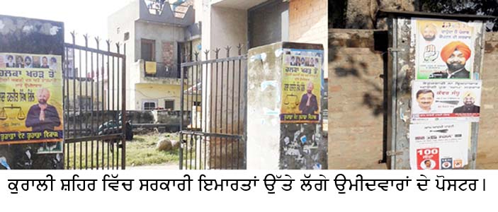 Share on Facebook Share on Twitter Share on Google+ Share on Pinterest Share on Linkedin ਉਮੀਦਵਾਰਾਂ ਵੱਲੋਂ ਸ਼ਰੇਆਮ ਉਡਾਈਆਂ ਜਾ ਰਹੀਆਂ ਨੇ ਚੋਣ ਜਾਬਤੇ ਦੀਆਂ ਧੱਜੀਆਂ ਰਜਨੀਕਾਂਤ ਗਰੋਵਰ ਨਬਜ਼-ਏ-ਪੰਜਾਬ ਬਿਊਰੋ, ਕੁਰਾਲੀ, 30 ਜਨਵਰੀ: ਚੋਣ ਕਮਿਸ਼ਨ ਵੱਲੋਂ ਆਪਣੀ ਬਾਜ ਅੱਖ ਨਾਲ ਉਮੀਦਵਾਰਾਂ ਦੀਆਂ ਗਤੀਵਿਧੀਆਂ ਤੇ ਪੂਰਾ ਧਿਆਨ ਦਿੱਤਾ ਜਾ ਰਿਹਾ ਹੈ ਪਰ ਇਸ ਦੇ ਬਾਵਜੂਦ ਉਮੀਦਵਾਰ ਦੇ ਸਮਰਥਕਾਂ ਵੱਲੋਂ ਚੋਣ ਕਮਿਸ਼ਨ ਦੀਆਂ ਹਦਾਇਤਾਂ ਦੀਆਂ ਸਰੇਆਮ ਧੱਜੀਆਂ ਉਡਾਈਆ ਜਾ ਰਹੀਆਂ ਹਨ ਜਿਸ ਦੀ ਮਿਸ਼ਾਲ ਸ਼ਹਿਰ ਅੰਦਰ ਕਾਂਗਰਸ ਪਾਰਟੀ ਦੇ ਉਮੀਦਵਾਰ ਜਗਮੋਹਨ ਸਿੰਘ ਕੰਗ, ਅਕਾਲੀ ਭਾਜਪਾ ਦੇ ਉਮੀਦਵਾਰ ਰਣਜੀਤ ਗਿੱਲ ਅਤੇ ‘ਆਪ’ ਦੇ ਉਮੀਦਵਾਰ ਕੰਵਰ ਸੰਧੂ ਦੇ ਹਮਾਇਤੀਆਂ ਸਰਕਾਰੀ ਜਾਇਦਾਦ ਅਤੇ ਧਾਰਮਿਕ ਸਥਾਨਾਂ ਉੱਤੇ ਆਪਣੀ ਪਾਰਟੀ ਦੇ ਇਸ਼ਤਿਹਾਰੀ ਪੋਸਟਰ ਲਗਾਏ ਗਏ ਹਨ। ਜਿਕਰਯੋਗ ਹੈ ਕਿ ਸਮਰਥਕ ਅਪਣੀ ਆਪਣੀ ਪਾਰਟੀ ਦੀ ਜਿੱਤ ਨੂੰ ਲੈਕੇ ਇੰਨੇ ਖੋਏ ਹੋਏ ਹਨ ਕਿ ਉਨ੍ਹਾਂ ਨੇ ਹਦਾਇਤਾਂ ਦੀ ਪਰਵਾਹ ਨਾ ਕਰਦੇ ਹੋਏ ਸਰਕਾਰੀ ਟਿਊਬਲਾਂ, ਮੰਦਿਰਾਂ, ਮਸਜਿਦਾਂ, ਸਾਈਨ ਬੋਰਡਾਂ, ਬਿਜਲੀ ਦੇ ਖੰਬਿਆਂ ਅਤੇ ਟੈਲੀਫੋਨ ਦੇ ਬਕਸਿਆਂ ਤੇ ਪੋਸਟਰ ਲਗਾ ਕੇ ਚੋਣ ਜਾਬਤੇ ਦੀ ਸ਼ਰੇਆਮ ਉਲੰਘਣਾ ਕੀਤੀ। ਜਦਂੋ ਇਸ ਦੇ ਸਬੰਧ ਵਿਚ ਐਸ.ਡੀ.ਐਮ ਖਰੜਂ ਅਮਨਿੰਦਰ ਕੌਰ ਬਰਾੜ ਨਾਲ ਫੋਨ ਤੇ ਗੱਲਬਾਤ ਕੀਤੀ ਤਾ ਉਨ੍ਹਾਂ ਕਿਹਾ ਕਿ ਮੈਂ ਟੀਮ ਭੇਜ ਕੇ ਇਸ ਦੀ ਚੈਕਿੰਗ ਕਰਵਾਵਾਂਗੀ।