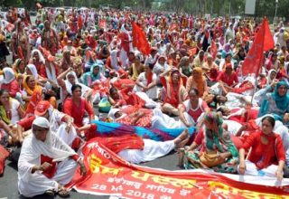 ਆਂਗਨਵਾੜੀ ਵਰਕਰਾਂ ਵੱਲੋਂ ਸਿੱਖਰ ਦੁਪਹਿਰੇ ਸੜਕ ਜਾਮ ਕਰਕੇ ਕੈਪਟਨ ਸਰਕਾਰ ਵਿਰੁੱਧ ਜ਼ਬਰਦਸਤ ਮੁਜ਼ਾਹਰਾ