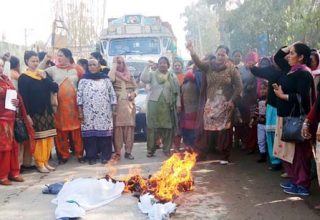 ਆਂਗਨਵਾੜੀ ਵਰਕਰਾਂ ਨੇ ਕੇਦਰ ਤੇ ਪੰਜਾਬ ਸਰਕਾਰ ਦੇ ਫੂਕੇ ਪੂਤਲੇ, ਸਰਕਾਰ ਵਿਰੁੱਧ ਨਾਅਰੇਬਾਜ਼ੀ ਕੀਤੀ