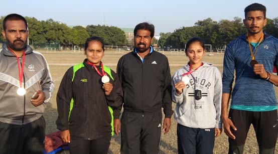 Share on Facebook Share on Twitter Share on Google+ Share on Pinterest Share on Linkedin ਚੰਡੀਗੜ੍ਹ ਸੀਨੀਅਰ ਸਟੇਟ ਅਥਲੈਟਿਕਸ ਮੁਕਾਬਲੇ: ਮੁਹਾਲੀ ਦੇ ਅਥਲੀਟਾਂ ਨੇ ਜਿੱਤੇ 3 ਸੋਨੇ ਦੇ ਤਗਮੇ ਤੇ ਹੋਰ ਇਨਾਮ ਨਬਜ਼-ਏ-ਪੰਜਾਬ ਬਿਊਰੋ, ਮੁਹਾਲੀ, 4 ਫਰਵਰੀ: ਮੁਹਾਲੀ ਦੇ ਅਥਲੈਟਿਕਸ ਕੋਚ ਰਾਮਾਸ਼ੰਕਰ ਦੀ ਅਗਵਾਈ ਹੇਠ ਪ੍ਰੈਕਟਿਸ ਕਰਨ ਵਾਲੇ ਚਾਰ ਅਥਲੀਟਾਂ ਨੇ ਚੰਡੀਗੜ੍ਹ ਵਿਖੇ ਪਿਛਲੇ ਦਿਨੀਂ ਸੰਪੰਨ ਹੋਈਆਂ ਚੰਡੀਗੜ੍ਹ ਸੀਨੀਅਰ ਸਟੇਟ ਅਤੇ ਵੈਟਰਨ ਅਥਲੈਟਿਕਸ ਮੁਕਾਬਲਿਆਂ ਵਿਚ 3 ਸੋਨੇ ਦੇ ਤਮਗਿਆਂ ਸਮੇਤ ਕੁਲ 6 ਤਮਗੇ ਜਿੱਤੇ ਹਨ। ਇਨ੍ਹਾਂ ਵਿਚ ਰਾਸ਼ਟਰੀ ਪੱਧਰ ’ਤੇ 2015 ਦੀ ਜੂਨੀਅਰ ਚੈਂਪੀਅਨ ਪ੍ਰਭਦੀਪ ਕੌਰ (ਪੰਜਾਬ ਯੂਨੀਵਰਸਿਟੀ ਇੰਟਰ ਕਾਲਜ ਚੈਂਪੀਅਨ) ਨੇ ਜੈਵਲਿਨ ਥ੍ਰੋਅ ਵਿਚ ਸੀਨੀਅਰ ਸਟੇਟ ਵਿਚ ਸੋਨੇ ਦਾ ਤਗਮਾ ਜਿੱਤਿਆ ਹੈ। ਪ੍ਰਭਦੀਪ ਕੌਰ ਡੀ.ਏ.ਵੀ. ਕਾਲਜ ਸੈਕਟਰ 10 ਦੀ ਬੀ.ਏ. ਫਾਈਨਲ ਦੀ ਵਿਦਿਆਰਥਣ ਹੈ। ਇਸ ਸਬੰਧੀ ਜਾਣਕਾਰੀ ਦਿੰਦਿਆਂ ਕੋਚ ਰਾਮਾਸ਼ੰਕਰ ਨੇ ਦੱਸਿਆ ਕਿ ਵੈਟਰਨ ਖਿਡਾਰੀ ਫੂਲ ਸਿੰਘ ਨੇ ਹੈਮਰ ਥ੍ਰੋ ਵਿਚ ਸੋਨੇ ਅਤੇ ਸ਼ਾਟਪੁਟ ਵਿਚ ਚਾਂਦੀ, ਸੀਨੀਅਰ ਸਟੇਟ ਵਿਚ ਅੰਜੁਮਨ ਨੇ ਹੈਮਰ ਥ੍ਰੋ ਵਿਚ ਸੋਨੇ ਅਤੇ ਡਿਸਕਸ ਥ੍ਰੋ ਵਿਚ ਕਾਂਸੀ ਦਾ ਤਗਮਾ ਜਿੱਤਿਆ ਜਦੋਂ ਕਿ ਨਵਨੀਤ ਸਿੰਘ ਨੇ ਲੰਮੀਂ ਛਾਲ ਵਿਚ ਚਾਂਦੀ ਦਾ ਤਗਮਾ ਜਿੱਤਿਆ।