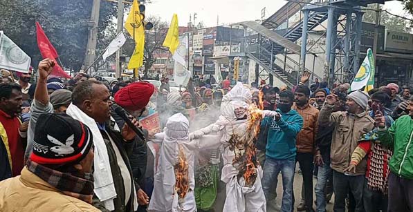 ਸਫ਼ਾਈ ਮਜ਼ਦੂਰ ਅਤੇ ਕਲਾਸ-4 ਯੂਨੀਅਨ ਵੱਲੋਂ ਸੋਮਵਾਰ ਨੂੰ ਕੇਂਦਰ ਅਤੇ ਪੰਜਾਬ ਸਰਕਾਰ ਖ਼ਿਲਾਫ਼ ਜ਼ਬਰਦਸਤ ਅਰਥੀ ਫੂਕ ਮੁਜ਼ਾਹਰਾ ਕੀਤਾ ਗਿਆ। ਜਿਸ ਵਿੱਚ ਵੱਡੀ ਗਿਣਤੀ ਵਿੱਚ ਸਫ਼ਾਈ ਕਾਮਿਆਂ ਸਮੇਤ ਕਲਾਸ-4 ਐਂਪਲਾਈਜ਼ ਅਤੇ ਹੋਰਨਾਂ ਮੁਲਾਜ਼ਮਾਂ ਨੇ ਸ਼ਮੂਲੀਅਤ ਕੀਤੀ। ਇਸ ਮੌਕੇ ਮੁਲਾਜ਼ਮ ਸੰਘਰਸ਼ ਲਹਿਰ ਦੇ ਮੋਢੀ ਸੱਜਣ ਸਿੰਘ, ਕਲਾਸ-ਫੌਰ ਯੂਨੀਅਨ ਦੇ ਚੰਦਨ ਸਿੰਘ, ਸਫ਼ਾਈ ਮਜ਼ਦੂਰ ਫੈਡਰੇਸ਼ਨ ਦੇ ਸੀਨੀਅਰ ਮੀਤ ਪ੍ਰਧਾਨ ਮੋਹਣ ਸਿੰਘ, ਜਨਰਲ ਸਕੱਤਰ ਪਵਨ ਗੋਡਯਾਲ, ਨਗਰ ਨਿਗਮ ਸਫ਼ਾਈ ਮਜ਼ਦੂਰ ਯੂਨੀਅਨ ਮੁਹਾਲੀ ਦੇ ਪ੍ਰਧਾਨ ਸੋਭਾ ਰਾਮ, ਰਾਜਨ ਚਵੱਰੀਆ, ਨਵਾਂ ਗਰਾਓਂ ਤੋਂ ਜੈਪਾਲ, ਮੋਨੂੰ ਕੁਮਾਰ, ਜ਼ੀਰਕਪੁਰ ਤੋਂ ਸ਼ਮਸ਼ੇਰ ਸਿੰਘ, ਖਰੜ ਤੋਂ ਬਲਕੇਸ਼ ਕੁਮਾਰ, ਰਜਿੰਦਰ ਕੁਮਾਰ ਨੇ ਦੱਸਿਆ ਕਿ ਇਹ ਧਰਨਾ ਪ੍ਰਦਰਸ਼ਨ ਪੰਜਾਬ ਦੇ ਮੁਲਾਜ਼ਮਾਂ ਅਤੇ ਠੇਕਾ ਮੁਲਾਜ਼ਮਾਂ ਦੀਆਂ ਜਾਇਜ਼ ਮੰਗਾਂ ਅਤੇ ਕਿਸਾਨੀ ਸੰਘਰਸ਼ ਦੇ ਹੱਕ ਵਿੱਚ ਕੀਤਾ ਗਿਆ ਹੈ। ਬੁਲਾਰਿਆਂ ਨੇ ਪੰਜਾਬ ਸਰਕਾਰ ਦੀ ਮੁਲਾਜ਼ਮ ਮੰਗਾਂ ਪ੍ਰਤੀ ਮਾੜੇ ਰਵੱਈਏ ਦੀ ਸਖ਼ਤ ਅਲੋਚਨਾ ਕਰਦਿਆਂ ਅਗਲੇ ਸੰਘਰਸ਼ ਦੀ ਚਿਤਾਵਨੀ ਦਿੱਤੀ।
