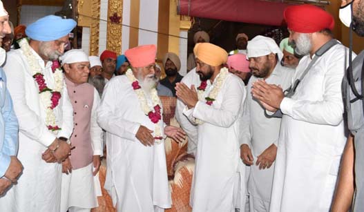 Share on Facebook Share on Twitter Share on Google+ Share on Pinterest Share on Linkedin Punjab CM Channi announced to set up Sri Guru Ravidas Chair CM Charanjit Channi pays obeisance at Dera Sachkhand Ballan Nabaz-e-Punjab, Ballan (Jalandhar), September 22: Punjab Chief Minister Mr Charanjit Singh Channi today announced setting up of a Sri Guru Ravidass Chair over 101 acre land to perpetuate the life, philosophy and teachings of the great saint. The Chief Minister, who was here to pay obeisance at Dera Sachkhand Ballan, said that the chair will be set up adjoining the Dera and will be managed by the Dera itself. He said that the government will ensure operation and maintenance of the chair for the coming ten years. Mr Channi envisioned that this state of the art chair will emerge as a huge research centre on life and philosophy of Sri Guru Ravidass Maharaj ji. The Chief Minister also said he will lay the foundation stone of a museum dedicated to Baba Sahib Dr BR Ambedkar at Kapurthala on Thursday. Likewise, he said that a management college on name of Baba sahib will also be set up in the state. Mr Channi said that due focus will be laid on imparting quality education to people instead of other freebies. The Chief Minister said that he is fortunate to have got an opportunity to offer prayers at this sacred land after assuming the office. He said that this blessed land has always been a source of inspiration for millions of followers of Sri Guru Ravidass Maharaj ji who had preached the lesson of egalitarian society to entire humanity. Mr Channi also said that he has got solace and peace of mind by visiting this holy place. The Chief Minister also lauded the role played by Dera in social and economic well being of the masses. He said apart from connecting the people with teachings and philosophy of Sri Guru Ravidass Maharaj ji the Dera has always remain instrumental in imparting quality education and health services to the needy and underprivileged sections of society. Mr Channi also lauded the philanthropic services rendered by the Dera for the well being of the masses. Earlier, Lok Sabha MP from Jalandhar Chaudhary Santokh Singh welcomed the Chief Minister to Dera. He said that it is a moment of pride for all of us that the Congress party has appointed Mr Channi as the Chief Minister of the state. On the occasion the chief of Dera Sant Baba Niranjan Dass felicitated the Chief Minister with a shawl and siropa.