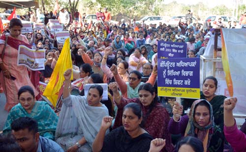 ਕੰਪਿਊਟਰ ਅਧਿਆਪਕਾਂ ਵੱਲੋਂ ਨਵੇਂ ਨਿਯਮ ਰੱਦ ਕਰਵਾਉਣ ਤੇ ਹੱਕੀ ਮੰਗਾਂ ਮਨਵਾਉਣ ਲਈ ਸਿੱਖਿਆ ਭਵਨ ਦਾ ਘਿਰਾਓ