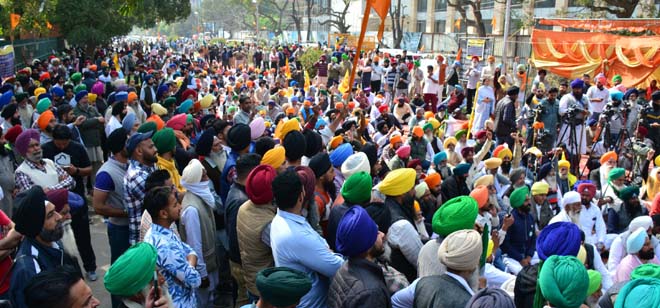 Share on Facebook Share on Twitter Share on Google+ Share on Pinterest Share on Linkedin ਪੰਜਾਬ ਦੇ ਸਕੂਲਾਂ ਵਿੱਚ ਵਿਵਾਦਿਤ ਕਿਤਾਬ ਪੜ੍ਹਾਉਣ ਦਾ ਮਾਮਲਾ ਭਖਿਆ, ਸੂਬਾ ਪੱਧਰੀ ਰੋਸ ਮੁਜ਼ਾਹਰਾ ਨੌਜਵਾਨ ਆਗੂ ਲੱਖਾ ਸਿਧਾਣਾ ਸਮੇਤ ਕਿਸਾਨਾਂ ਤੇ ਬੀਬੀਆਂ ਨੇ ਵੱਡੀ ਗਿਣਤੀ ’ਚ ਕੀਤੀ ਸ਼ਿਰਕਤ ਤਿੰਨ ਸਾਂਝੇ ਮਤੇ ਪਾਸ ਕਰਕੇ ਜ਼ਿੰਮੇਵਾਰ ਵਿਅਕਤੀਆਂ ਖ਼ਿਲਾਫ਼ ਕਾਰਵਾਈ ਮੰਗੀ ਨਬਜ਼-ਏ-ਪੰਜਾਬ ਬਿਊਰੋ, ਮੁਹਾਲੀ, 28 ਫਰਵਰੀ: ਪੰਜਾਬ ਦੇ ਸਕੂਲਾਂ ਵਿੱਚ ਬਾਰ੍ਹਵੀਂ ਦੇ ਵਿਦਿਆਰਥੀਆਂ ਨੂੰ ਵਿਵਾਦਿਤ ਇਤਿਹਾਸ ਦੀ ਕਿਤਾਬ ਪੜਾਉਣ ਦਾ ਮਾਮਲਾ ਪੂਰੀ ਤਰ੍ਹਾਂ ਭਖ ਗਿਆ ਹੈ। ਭਾਰਤੀ ਕਿਸਾਨ ਯੂਨੀਅਨ (ਸਿਰਸਾ) ਦੇ ਪ੍ਰਧਾਨ ਅਤੇ ਸਿੱਖ ਆਗੂ ਜਥੇਦਾਰ ਬਲਦੇਵ ਸਿੰਘ ਸਿਰਸਾ ਦੀ ਅਗਵਾਈ ਹੇਠ ਸੋਮਵਾਰ ਨੂੰ ਸਿੱਖਿਆ ਬੋਰਡ ਦੇ ਬਾਹਰ ਸੂਬਾ ਪੱਧਰੀ ਮਹਾ ਰੈਲੀ ਕੀਤੀ ਗਈ। ਜਦੋਂਕਿ ਲੜੀਵਾਰ ਧਰਨਾ 23ਵੇਂ ਦਿਨ ਵਿੱਚ ਦਾਖ਼ਲ ਹੋ ਗਿਆ। ਵਿਰੋਧ ਪ੍ਰਦਰਸ਼ਨ ਦੀ ਅਰੰਭਤਾ ਸਵੇਰੇ ਜਪੁਜੀ ਸਾਹਿਬ ਤੇ ਚੋਪਾਈ ਸਾਹਿਬ ਪਾਠ ਅਤੇ ਅਰਦਾਸ ਉਪਰੰਤ ਹੋਈ। ਧਰਨੇ ਵਿੱਚ ਨੌਜਵਾਨ ਆਗੂ ਲੱਖਾ ਸਿੰਘ ਸਿਧਾਣਾ, ਭਾਰਤੀ ਕਿਸਾਨ ਯੂਨੀਅਨ ਏਕਤਾ (ਸਿੱਧੂਪੁਰ), ਕਿਸਾਨ ਯੂਨੀਅਨ (ਚੜੂਨੀ), ਨਿਹੰਗ ਜਥੇਬੰਦੀਆਂ ਸਮੇਤ ਪੰਥ ਹਿਤੈਸ਼ੀ ਸ਼ਖ਼ਸੀਅਤਾਂ, ਕਿਸਾਨ ਬੀਬੀਆਂ ਅਤੇ ਹਿਊਮਨ ਰਾਈਟਸ ਯੂਨਾਈਟਿਡ ਸਿੱਖਸ, ਯੂਨਾਈਟਿਡ ਸਿੱਖਸ, ਸਾਬਤ ਸੂਰਤ ਸਿੱਖ ਆਰਗਨਾਈਜ਼ੇਸ਼ਨ, ਨੇ ਵੱਡੀ ਗਿਣਤੀ ਵਿੱਚ ਸ਼ਮੂਲੀਅਤ ਕੀਤੀ। ਇਸ ਮੌਕੇ ਤਿੰਨ ਮਤੇ ਪਾਸ ਕਰਕੇ ਸਿੱਖ ਇਤਿਹਾਸ ਨੂੰ ਤੋੜ-ਮਰੋੜ ਕੇ ਪੇਸ਼ ਕਰਨ ਵਾਲੇ ਲੇਖਕ, ਪ੍ਰਕਾਸ਼ਕ, ਮਾਨਤਾ ਦੇਣ ਵਾਲੇ ਬੋਰਡ ਅਧਿਕਾਰੀਆਂ ਸਮੇਤ ਤਤਕਾਲੀ ਸਿੱਖਿਆ ਮੰਤਰੀ ਵਿਰੁੱਧ ਪਰਚੇ ਕੀਤੇ ਜਾਣ, ਵਿਵਾਦਿਤ ਕਿਤਾਬਾਂ ’ਤੇ ਪੂਰਨ ਪਾਬੰਦੀ ਲਗਾਉਣ ਅਤੇ ਸਿੱਖ ਇਤਿਹਾਸ ਨੂੰ ਗੁਰਬਾਣੀ ਦੀ ਕਸਵੱਟੀ ਅਨੁਸਾਰ ਪ੍ਰਖਣ ਲਈ ਮਾਹਰਾਂ ਦੀ ਕਮੇਟੀ ਬਣਾ ਕੇ ਪੜਚੋਲ ਕਰਵਾਉਣ ਉਪਰੰਤ ਪ੍ਰਕਾਸ਼ਿਤ ਕੀਤਾ ਜਾਵੇ। ਇਸ ਮੌਕੇ ਬੋਲਦਿਆਂ ਜਥੇਦਾਰ ਬਲਦੇਵ ਸਿੰਘ ਸਿਰਸਾ ਨੇ ਕਿਹਾ ਕਿ ਪੰਜਾਬ ਨੂੰ ਉਜਾੜਨ ਅਤੇ ਸਿੱਖ ਕੌਮ ਖ਼ਤਮ ਕਰਨ ਲਈ ਡੂੰਘੀ ਸਾਜ਼ਿਸ ਤਹਿਤ ਸਕੂਲਾਂ ਵਿੱਚ ਬੱਚਿਆਂ ਨੂੰ ਸਿੱਖ ਗੁਰੂਆਂ ਅਤੇ ਸਿੱਖ ਇਤਿਹਾਸ ਬਾਰੇ ਤੱਥਾਂ ਨੂੰ ਤੋੜ ਮਰੋੜ ਕੇ ਪੇਸ਼ ਕੀਤਾ ਗਿਆ ਹੈ, ਜੋ ਕਿ ਬਹੁਤ ਗੰਭੀਰ ਚਿੰਤਾ ਦਾ ਵਿਸ਼ਾ ਹੈ। ਜਦੋਂ ਪੰਜਾਬ ਸਰਕਾਰ ਅਤੇ ਸਕੂਲ ਬੋਰਡ ਨੇ ਉਨ੍ਹਾਂ ਦੀ ਆਵਾਜ਼ ਨਹੀਂ ਸੁਣੀ ਤਾਂ ਲੜੀਵਾਰ ਧਰਨਾ ਸ਼ੁਰੂ ਕਰਨਾ ਪਿਆ। ਉਨ੍ਹਾਂ ਨੇ ਪੰਥ ਦਰਦੀਆਂ ਅਤੇ ਸਮੂਹ ਜਥੇਬੰਦੀਆਂ ਨੂੰ ਮਹਾ ਰੈਲੀ ਦਾ ਸੁਨੇਹਾ ਲਾਇਆ ਸੀ ਅਤੇ ਅੱਜ ਹਜ਼ਾਰਾਂ ਦੀ ਗਿਣਤੀ ਵਿੱਚ ਲੋਕਾਂ ਨੇ ਸ਼ਿਰਕਤ ਕਰਕੇ ਸਰਕਾਰ ਦੀ ਨੀਂਦ ਉਡਾ ਦਿੱਤੀ ਹੈ। ਜਥੇਦਾਰ ਸਿਰਸਾ ਨੇ ਕਿਹਾ ਕਿ ਉਹ ਕਾਫ਼ੀ ਸਮੇਂ ਤੋਂ ਲਗਾਤਾਰ ਸ਼ਿਕਾਇਤਾਂ ਦੇ ਕੇ ਇਨਸਾਫ਼ ਦੀ ਮੰਗ ਕਰਦੇ ਆ ਰਹੇ ਹਨ ਪਰ ਸਰਕਾਰ ਨੇ ਇਕ ਨਹੀਂ ਸੁਣੀ। ਉਨ੍ਹਾਂ ਕਿਹਾ ਕਿ ਕਿਤਾਬ ਵਿੱਚ ਨੌਵੇਂ ਪਾਤਸ਼ਾਹ ਨੂੰ ਚੋਰ ਡਾਕੂ ਅਤੇ ਬਾਬਾ ਬੰਦਾ ਸਿੰਘ ਬਹਾਦਰ ਸਿੰਘ ਬਹਾਦਰ ਨੂੰ ਲੋਕਾਂ ਦਾ ਖੂਨ ਚੂਸਣ ਵਾਲਾ ਰਾਖਸਿਸ ਦੱਸਿਆ ਗਿਆ ਹੈ। ਉਨ੍ਹਾਂ ਕਿਹਾ ਕਿ ਸਰਕਾਰ ਨੂੰ ਚਿਤਾਵਨੀ ਦਿੱਤੀ ਕਿ ਇਹ ਤਾਂ ਸਿਰਫ਼ ਟਰੇਲਰ ਹੈ, ਫਿਲਮ ਹਾਲੇ ਬਾਕੀ ਹੈ। ਉਨ੍ਹਾਂ ਕਿਹਾ ਕਿ ਕਿਤਾਬ ਵਿੱਚ ਗੁਰੂਆਂ ਅਤੇ ਸਿੱਖ ਇਤਿਹਾਸ ਬਾਰੇ ਦਰਜ ਗਲਤ ਤੱਥ ਹਟਾਏ ਜਾਣ ਅਤੇ ਕਿਤਾਬ ਨੂੰ ਨਵੇਂ ਸਿਰਿਓਂ ਸੋਧ ਕੇ ਛਾਪਿਆ ਜਾਵੇ। ਉਨ੍ਹਾਂ ਮੰਗ ਕੀਤੀ ਕਿ ਇਤਿਹਾਸ ਦੀ ਵਿਵਾਦਿਤ ਕਿਤਾਬ ਲਿਖਣ ਵਾਲੇ ਲੇਖਕ ਅਤੇ ਇਸ ਨੂੰ ਛਾਪਣ ਵਾਲੇ ਪ੍ਰਿੰਟਰ ਅਤੇ ਪ੍ਰਵਾਨ
