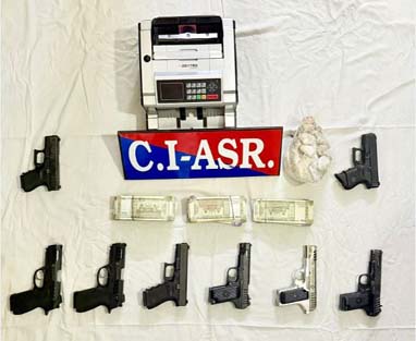 Those arrested have been identified as Sarabjit Singh, a resident of village Saanke in Ferozepur, Kulwinder Singh, a resident of village Langiana in Ferozepur and Ashmandeep Singh, a resident of Railway Road in Tarn Taran. The recovered weapons include three 9MM Glock pistols, three .30 bore Chinese pistols and two .30 bore PX-5 pistols. Police teams have also recovered a currency counting machine from their possession, besides, impounding their Splendor motorcycle (PB05-AT-1664) being used for transporting the consignments.