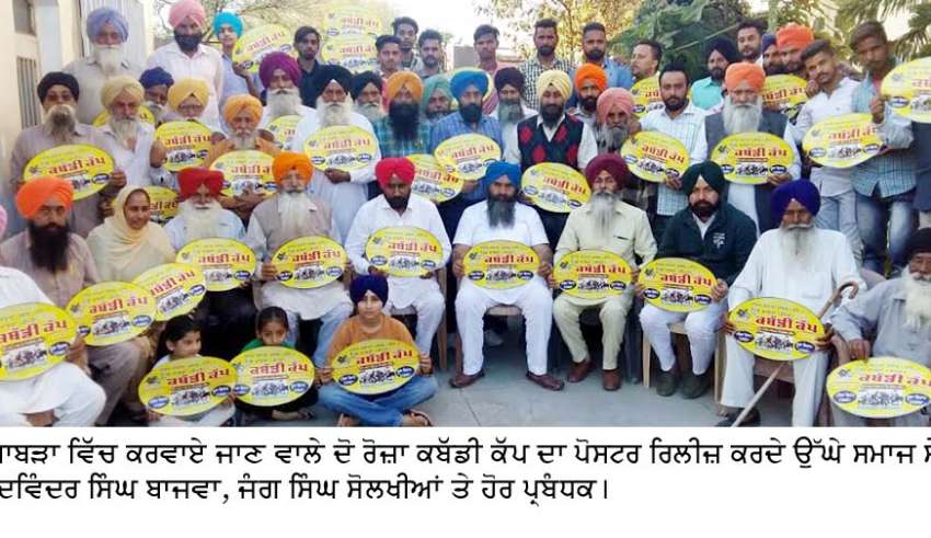 Share on Facebook Share on Twitter Share on Google+ Share on Pinterest Share on Linkedin ਸਮਾਜ ਸੇਵੀ ਦਵਿੰਦਰ ਸਿੰਘ ਬਾਜਵਾ ਵੱਲੋਂ ਖ਼ਾਬੜਾ ਕਬੱਡੀ ਕੱਪ ਦਾ ਪੋਸਟਰ ਰਿਲੀਜ਼ ਰਜਨੀਕਾਂਤ ਗਰੋਵਰ ਨਬਜ਼-ਏ-ਪੰਜਾਬ ਬਿਊਰੋ, ਕੁਰਾਲੀ, 5 ਮਾਰਚ: ਇੱਥੋਂ ਦੇ ਨੇੜਲੇ ਪਿੰਡ ਖ਼ਾਬੜਾਂ ਵਿਖੇ ਯੁਵਕ ਸੇਵਾਵਾਂ ਕਲੱਬ ਵੱਲੋਂ ਨਗਰ ਪੰਚਾਇਤ ਅਤੇ ਇਲਾਕਾ ਨਿਵਾਸੀਆਂ ਦੇ ਸਹਿਯੋਗ ਨਾਲ ਕਰਵਾਏ ਜਾ ਰਹੇ ਚੌਥੇ ਦੋ ਰੋਜ਼ਾ ਕੱਬਡੀ ਕੱਪ ਦਾ ਪੋਸਟਰ ਕਬੱਡੀ ਐਸੋਸੀਏਸ਼ਨ ਜ਼ਿਲ੍ਹਾ ਰੂਪਨਗਰ ਦੇ ਪ੍ਰਧਾਨ ਤੇ ਉੱਘੇ ਸਮਾਜ ਸੇਵੀ ਆਗੂ ਦਵਿੰਦਰ ਸਿੰਘ ਬਾਜਵਾ ਅਤੇ ਪ੍ਰਬੰਧਕਾਂ ਵੱਲੋਂ ਪਿੰਡ ਖ਼ਾਬੜਾਂ ਵਿਖੇ ਇੱਕ ਸਮਾਰੋਹ ਦੌਰਾਨ ਸਾਂਝੇ ਰੂਪ ਵਿਚ ਜਾਰੀ ਕੀਤਾ ਗਿਆ। ਇਸ ਮੌਕੇ ਜਾਣਕਾਰੀ ਦਿੰਦੇ ਪ੍ਰਬੰਧਕਾਂ ਨੇ ਦੱਸਿਆ ਕਿ 24 ਅਤੇ 25 ਮਾਰਚ ਨੂੰ ਕਰਵਾਏ ਜਾ ਰਹੇ ਦੋ ਰੋਜ਼ਾ ਕੱਬਡੀ ਕੱਪ ਦੀ ਜੇਤੂ ਟੀਮ ਨੂੰ ਪੈਂਤੀ ਹਜ਼ਾਰ ਰੁਪਏ ਨਗਦ ਉੱਪਜੇਤੁ ਨੂੰ ਪੱਚੀ ਹਜ਼ਾਰ ਨਗਦ ਇਨਾਮ ਅਤੇ ਟਰਾਫੀ ਨਾਲ ਸਨਮਾਨਿਤ ਕੀਤਾ ਜਾਵੇਗਾ। ਇਸ ਕਬੱਡੀ ਕੱਪ ਦੇ ਬੈਸਟ ਰੇਡਰ ਅਤੇ ਬੈਸਟ ਜਾਫੀ ਨੂੰ ਮੋਟਰ ਸਾਈਕਲਾਂ ਨਾਲ ਸਨਮਾਨਿਤ ਕੀਤਾ ਜਾਵੇਗਾ। ਇਸ ਮੌਕੇ ਮੁੱਖ ਮਹਿਮਾਨ ਵਜੋਂ ਪੁੱਜੇ ਕਬੱਡੀ ਪ੍ਰਮੋਟਰ ਦਵਿੰਦਰ ਸਿੰਘ ਬਾਜਵਾ ਨੇ ਪ੍ਰਬੰਧਕਾਂ ਦੇ ਉਪਰਾਲੇ ਦੀ ਸਲਾਘਾ ਕਰਦਿਆਂ ਨਗਰ ਪੰਚਾਇਤ ਅਤੇ ਕਲੱਬ ਮੈਂਬਰਾਂ ਦੇ ਨਾਲ ਮਿਲਕੇ ਕੱਬਡੀ ਕੱਪ ਦਾ ਪੋਸਟਰ ਜਾਰੀ ਕੀਤਾ। ਇਸ ਮੌਕੇ ਜੈ ਸਿੰਘ ਚੱਕਲਾਂ, ਜੰਗ ਸਿੰਘ ਸੋਲਖੀਆਂ, ਕੁਲਦੀਪ ਕੌਰ ਸਰਪੰਚ, ਪ੍ਰਧਾਨ ਸੁਖਜੀਤ ਸਿੰਘ, ਮਨਪ੍ਰੀਤ ਸਿੰਘ ਸੋਨੀ ਮੀਤ ਪ੍ਰਧਾਨ, ਬਲਵਿੰਦਰ ਸਿੰਘ, ਬਿੱਟੂ ਬਾਜਵਾ,ਮਿਹਰ ਸਿੰਘ ਸਰਪੰਚ, ਸਤਨਾਮ ਸਿੰਘ ਸਰਪੰਚ, ਦਰਸ਼ਨ ਸਿੰਘ ਸਰਪੰਚ, ਰਾਜਬੀਰ ਸਿੰਘ ਸੋਲਖੀਆਂ ਸੰਮਤੀ ਮੈਂਬਰ, ਮੋਹਨਜੀਤ ਸਿੰਘ ਕਮਾਲਪੁਰ, ਰਣਧੀਰ ਸਿੰਘ ਸਾਲਾਪੁਰ, ਲਖਵੀਰ ਲੱਖਾ, ਗੁਰਪਾਲ ਸਿੰਘ ਨੰਬਰਦਾਰ, ਰਜਿੰਦਰ ਸਿੰਘ ਪੰਚ, ਜਗਮੋਹਨ ਸਿੰਘ, ਦਰਸ਼ਨ ਸਿੰਘ, ਲਖਬੀਰ ਖ਼ਾਬੜਾਂ, ਜਸ਼ਨ, ਜਸਵੀਰ ਸਿੰਘ, ਜਸਵੰਤ ਸਿੰਘ, ਜਸਵੀਰ ਸਿੰਘ, ਗੁਰਮੇਲ ਸਿੰਘ, ਦਲਵੀਰ ਸਿੰਘ, ਜਸਵਿੰਦਰ ਸਿੰਘ, ਜਸਵਿੰਦਰ ਸਿੰਘ, ਰਮਨਦੀਪ ਸਿੰਘ, ਪਰਵਿੰਦਰ ਸਿੰਘ, ਸਾਜਨ ਅੱਤਰੀ ਸਮੇਤ ਵੱਡੀ ਗਿਣਤੀ ਵਿਚ ਪਿੰਡ ਵਾਸੀ ਹਾਜ਼ਰ ਸਨ।