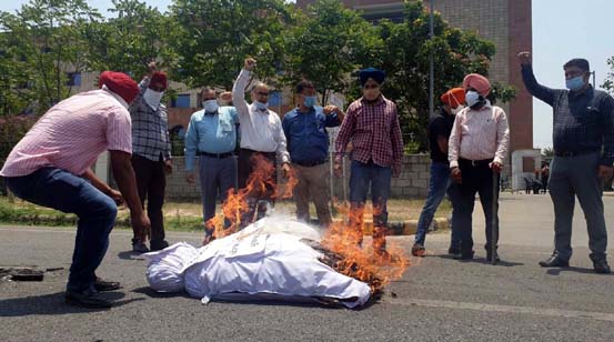 Share on Facebook Share on Twitter Share on Google+ Share on Pinterest Share on Linkedin ਡੀਸੀ ਦਫ਼ਤਰ ਦੇ ਮੁਲਾਜ਼ਮਾਂ ਵੱਲੋਂ ਸਰਕਾਰ ਵਿਰੁੱਧ ਰੋਸ ਮੁਜ਼ਾਹਰਾ, ਕੈਪਟਨ ਤੇ ਕਾਂਗੜ ਦੇ ਪੁਤਲੇ ਸਾੜੇ ਡੀਸੀ ਦਫ਼ਤਰਾਂ ਦੇ ਮੁਲਾਜ਼ਮਾਂ ਦੀਆਂ ਜਾਇਜ਼ ਮੰਗਾਂ ਵੱਲ ਤੁਰੰਤ ਧਿਆਨ ਦੇਵੇ ਸਰਕਾਰ: ਕੁਲਵੰਤ ਸਿੰਘ ਨਬਜ਼-ਏ-ਪੰਜਾਬ ਬਿਊਰੋ, ਮੁਹਾਲੀ, 28 ਮਈ: ਡੀਸੀ ਦਫ਼ਤਰ ਐਂਪਲਾਈਜ਼ ਯੂਨੀਅਨ ਪੰਜਾਬ ਵੱਲੋਂ ਬੀਤੀ 24 ਮਈ ਤੋਂ ਕੀਤੀ ਜਾ ਰਹੀ ਕਮਲਛੋੜ ਹੜਤਾਲ ਤਹਿਤ ਸ਼ੁੱਕਰਵਾਰ ਨੂੰ ਯੂਨੀਅਨ ਦੇ ਚੇਅਰਮੈਨ ਓਮ ਪ੍ਰਕਾਸ਼ ਦੀ ਅਗਵਾਈ ਹੇਠ ਪੰਜਾਬ ਸਰਕਾਰ ਦੇ ਖ਼ਿਲਾਫ਼ ਅਰਥੀ ਫੂਕ ਮੁਜ਼ਾਹਰਾ ਕੀਤਾ। ਇਸ ਮੌਕੇ ਪ੍ਰਦਰਸ਼ਨਕਾਰੀਆਂ ਨੇ ਮੁੱਖ ਮੰਤਰੀ ਕੈਪਟਨ ਅਮਰਿੰਦਰ ਸਿੰਘ ਅਤੇ ਮਾਲ ਮੰਤਰੀ ਗੁਰਪ੍ਰੀਤ ਸਿੰਘ ਕਾਂਗੜ ਦੇ ਪੁਤਲੇ ਸਾੜੇ ਅਤੇ ਹੁਕਮਰਾਨਾਂ ਵਿਰੁੱਧ ਨਾਅਰੇਬਾਜ਼ੀ ਕੀਤੀ। ਮੁਲਾਜ਼ਮਾਂ ਦੇ ਮੰਗ ਕੀਤੀ ਕਿ ਉਨ੍ਹਾਂ ਦੀਆਂ ਸਾਰੀਆਂ ਜਾਇਜ਼ ਮੰਗਾਂ ਤੁਰੰਤ ਪ੍ਰਵਾਨ ਕੀਤੀਆਂ ਜਾਣ। ਇਸ ਮੌਕੇ ਯੂਨੀਅਨ ਦੇ ਚੇਅਰਮੈਨ ਓਮ ਪ੍ਰਕਾਸ਼ ਅਤੇ ਜ਼ਿਲ੍ਹਾ ਪ੍ਰਧਾਨ ਗੁਰਮੁੱਖ ਸਿੰਘ ਰੁੜਕਾ ਨੇ ਕਿਹਾ ਕਿ ਡੀਸੀ ਦਫ਼ਤਰਾਂ ਵਿੱਚ ਲੋੜ ਅਨੁਸਾਰ ਕਰਮਚਾਰੀਆਂ ਦੀ ਤਾਇਨਾਤੀ ਨਾ ਕੀਤੇ ਜਾਣ ਕਾਰਨ ਦਫ਼ਤਰੀ ਸਟਾਫ਼ ’ਤੇ ਕੰਮ ਦਾ ਬਹੁਤ ਜ਼ਿਆਦਾ ਬੋਝ ਪੈ ਰਿਹਾ ਹੈ। ਇਸ ਸਬੰਧੀ ਵਾਰ ਵਾਰ ਮੰਗ ਪੱਤਰ ਸੌਂਪੇ ਜਾਣ ਦੇ ਬਾਵਜੂਦ ਪੰਜਾਬ ਸਰਕਾਰ ਲੋੜੀਂਦੇ ਕਰਮਚਾਰੀਆਂ ਦੀ ਭਰਤੀ ਨਹੀਂ ਕੀਤੀ ਜਾ ਰਹੀ ਬਲਕਿ ਉਲਟਾ ਨਵੇਂ ਜ਼ਿਲ੍ਹੇ ਅਤੇ ਤਹਿਸੀਲਾਂ, ਸਬ ਤਹਿਸੀਲਾਂ ਬਣਾ ਕੇ ਪਹਿਲਾ ਹੀ ਘੱਟ ਗਿਣਤੀ ਵਿੱਚ ਕੰਮ ਕਰ ਰਹੇ ਮੁਲਾਜ਼ਮਾਂ ’ਚੋਂ ਨਵੇਂ ਬਣਾਏ ਜ਼ਿਲ੍ਹਾ ਮਲੇਰਕੋਟਲਾ ਵਿੱਚ ਕਰਮਚਾਰੀ ਭੇਜੇ ਜਾ ਰਹੇ ਹਨ। ਉਨ੍ਹਾਂ ਮੰਗ ਕੀਤੀ ਕਿ ਕਰਮਚਾਰੀ ਦੀਆਂ ਮੰਗਾਂ ਮੰਨ ਕੇ ਜ਼ਿਲ੍ਹਾ ਹੈਡਕੁਆਰਟਰਾਂ ਵਿੱਚ ਕਰਮਚਾਰੀਆਂ ਦੀਆਂ ਖਾਲੀ ਪਈਆਂ ਅਸਾਮੀਆਂ ਤੁਰੰਤ ਭਰੀਆਂ ਜਾਣ। ਉਧਰ, ਮੁਹਾਲੀ ਦੇ ਸਾਬਕਾ ਮੇਅਰ ਅਤੇ ਆਜ਼ਾਦ ਗਰੁੱਪ ਦੇ ਮੁਖੀ ਕੁਲਵੰਤ ਸਿੰਘ ਨੇ ਮੁਲਾਜ਼ਮਾਂ ਦੇ ਹੱਕ ਵਿੱਚ ਹਾਅ ਦਾ ਨਾਅਰਾ ਮਾਰਦਿਆਂ ਕਿਹਾ ਕਿ ਪੰਜਾਬ ਸਰਕਾਰ ਨੂੰ ਸਮੂਹ ਡੀਸੀ ਦਫ਼ਤਰਾਂ ਦੇ ਕਰਮਚਾਰੀਆਂ ਦੀਆਂ ਜਾਇਜ਼ ਮੰਗਾਂ ਵੱਲ ਤੁਰੰਤ ਧਿਆਨ ਦੇਣਾ ਚਾਹੀਦਾ ਹੈ। ਉਨ੍ਹਾਂ ਡੀਸੀ ਕਿਹਾ ਕਿ ਦਫ਼ਤਰਾਂ ਦੇ ਮੁਲਾਜ਼ਮਾਂ ਦੀਆਂ ਚਿਰਕੌਣੀਆਂ ਪਦਉੱਨਤੀਆਂ ਅਤੇ ਪ੍ਰਵਾਨਿਤ ਮੰਗਾਂ ਨੂੰ ਤੁਰੰਤ ਲਾਗੂ ਕੀਤਾ ਜਾਵੇ ਤਾਂ ਜੋ ਮੁਲਜ਼ਮ ਆਪਣੀ ਸੀਟਾਂ ’ਤੇ ਪਰਤ ਸਕਣ ਕਿਉਂਕਿ ਹੜਤਾਲ ਕਾਰਨ ਮੁਹਾਲੀ ਅਤੇ ਨੇੜਲੇ ਪਿੰਡਾਂ ਦੇ ਲੋਕਾਂ ਨੂੰ ਆਪਣੇ ਕੰਮਾਂ ਕਾਰਾਂ ਲਈ ਕਾਫੀ ਮੁਸ਼ਕਲਾਂ ਦਾ ਸਾਹਮਣਾ ਕਰਨਾ ਪੈ ਰਿਹਾ ਹੈ। ਉਨ੍ਹਾਂ ਕਿਹਾ ਕਿ ਮੁਲਾਜ਼ਮਾਂ ਦੀ ਮੰਗਾਂ ਜਾਇਜ਼ ਹਨ ਅਤੇ ਸੂਬਾ ਸਰਕਾਰ ਵੀ ਇਨ੍ਹਾਂ ਬਾਰੇ ਸਹਿਮਤੀ ਵੀ ਜਤਾ ਚੁੱਕੀ ਹੈ।
