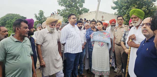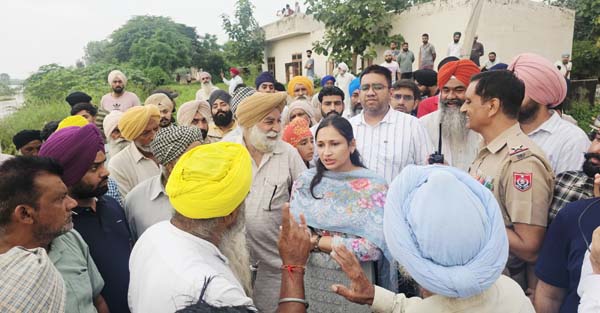 Share on Facebook Share on Twitter Share on Google+ Share on Pinterest Share on Linkedin DC Reviewed the situation of villages along the Ghaggar River Embankments Intact, Water Levels Begin to Recede Nabaz-e-Punjab, Mohali, September 03: Deputy Commissioner Komal Mittal today visited vulnerable points along the Ghaggar River to assess the situation and issued necessary directions to the concerned departments. At Bhankharpur, the Deputy Commissioner directed the Drainage Department to immediately strengthen the weak point on the embankment. She emphasized that the district administration is continuously monitoring the situation and taking timely preventive action. She then inspected the Tiwana Embankment on the Ghaggar River, which was found intact. Villagers requested strengthening with boulders, and the Deputy Commissioner assured them that the work would be undertaken after the rains. Administrative teams are actively monitoring the situation with the requisite machinery in place to handle any emergency. Additionally, DC Komal Mittal interacted with the Sarpanch of Khajur Mandi and directed SDM Derabassi to ensure the immediate supply of ration and drinking water to residents as required. She was accompanied by SDM Derabassi Amit Gupta, Tehsildar Derabassi Sumeet Singh Dhillon, ExEn Drainage Khushwinder Singh, and SDO Drainage Rajinder Singh. The Deputy Commissioner also informed that the water level in the Ghaggar, which had risen earlier, began receding by evening. The situation continues to be closely monitored by the administration.
