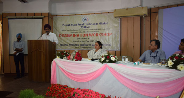 Share on Facebook Share on Twitter Share on Google+ Share on Pinterest Share on Linkedin Earnest efforts needed to uplift poor sections economically: Bajwa State level 3 day ‘State Rural Livelihood Mission’ workshop begins Nabaz-e-Punjab Bureau, Chandigarh, May 16: “Earnest efforts by the Union and State Governments along with NGOs are the need of the hour to uplift the people belonging to the poor sections in the state economically.” Expressing these views at the Regional Institute of Co-operative Management in Sector-32 here today on the occasion of inaugurating 3 day State level ‘State Rural Livelihood Mission’, the Rural Development and Panchayat Minister, Punjab, S. Tript Rajinder Singh Bajwa said that the Punjab Government is running several welfare schemes aimed at eradication of poverty which are bound to yield productive outcomes. The minister gave a clarion call to raise awareness regarding welfare schemes and said that though the schemes being run by Union and State Government in collaboration are yielding constructive results initially, still more efforts are needed to ensure the full implementation of these schemes at ground level. He advocated the role of self help groups in improving the economic standard of the poor families. On the occasion, Joint Director-cum-Commissioner MGNREGA Mrs. Anandita Mishra divulged that the NRLM scheme is being run in the 35 blocks of 22 districts in the State to which 5 new blocks have been added in the current financial year. She further elaborated that under the scheme, 4012 self help groups are functioning in Punjab who were provided Rs. 1,10,000 per group to start their work due to which the economic level of poor womenfolk hailing from the rural households has received a major boost.