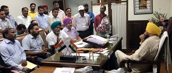 Share on Facebook Share on Twitter Share on Google+ Share on Pinterest Share on Linkedin ਮੁਲਾਜ਼ਮ ਮੰਗਾਂ ਸਬੰਧੀ ਯੂਨੀਅਨ ਦਾ ਵਫ਼ਦ ਕੈਬਨਿਟ ਮੰਤਰੀ ਚਰਨਜੀਤ ਸਿੰਘ ਚੰਨੀ ਨੂੰ ਮਿਲਿਆ ਅਧਿਕਾਰੀਆਂ ਦੀਆਂ ਕੁਲਿਹਣੀਆਂ ਚਾਲਾਂ ਨੇ ਵਿਭਾਗੀ ਮੁਲਾਜ਼ਮਾਂ ਨੂੰ ਕੰਗਾਲ ਕੀਤਾ: ਪੁਰਖਾਲਵੀ ਨਬਜ਼-ਏ-ਪੰਜਾਬ ਬਿਊਰੋ, ਮੁਹਾਲੀ, 14 ਮਈ: ਉਦਯੋਗਿਕ ਸਿਖਲਾਈ ਵਿਭਾਗ ਪੰਜਾਬ ਦੇ ਸਮੂਹ ਮੁਲਾਜ਼ਮਾਂ ਦੇ ਜਮਹੂਰੀ ਹੱਕਾਂ ਦੀ ਪ੍ਰਾਪਤੀ ਅਤੇ ਉਨ੍ਹਾਂ ਦੀ ਭਲਾਈ ਲਈ ਕਾਰਜਸ਼ੀਲ ‘‘ਗੌਰਮਿੰਟ ਆਈ ਟੀ ਆਈ’ਜ ਐਸ ਸੀ ਇੰਪਲਾਇਜ ਯੂਨੀਅਨ ਪੰਜਾਬ’’ ਦਾ 21 ਮੈਂਬਰੀ ਵਫ਼ਦ ਅੱਜ ਸੂਬਾਈ ਪ੍ਰਧਾਨ ਸ਼ਮਸ਼ੇਰ ਪੁਰਖਾਲਵੀ ਦੀ ਅਗਵਾਈ ਵਿੱਚ ਵਿਭਾਗ ਦੇ ਕੈਬਨਿਟ ਮੰਤਰੀ ਸ੍ਰੀ ਚਰਨਜੀਤ ਸਿੰਘ ਚੰਨੀ ਨੂੰ ਮਿਲਿਆ, ਜਿਨ੍ਹਾਂ ਨੇ ਵਫ਼ਦ ਨੂੰ ਭਰੋਸਾ ਦਿਵਾਇਆ ਕਿ ਉਨ੍ਹਾਂ ਦੀਆਂ ਵਾਜਿਬ ਮੰਗਾਂ ਨੂੰ ਵਿਭਾਗ ਦੇ ਉਚ ਅਧਿਕਾਰੀਆਂ ਨਾਲ ਵਿਚਾਰਕੇ ਜਲਦੀ ਪੂਰਾ ਕੀਤਾ ਜਾਵੇਗਾ, ਜਿਸ ਬਦਲੇ ਯੂਨੀਅਨ ਨੇ ਧੰਨਵਾਦ ਕੀਤਾ। ਵਫ਼ਦ ਦੀ ਅਗਵਾਈ ਕਰ ਰਹੇ ਸੂਬਾਈ ਪ੍ਰਧਾਨ ਸ਼ਮਸ਼ੇਰ ਪੁਰਖਾਲਵੀ ਨੇ ਕੈਬਨਿਟ ਵਜ਼ੀਰ ਸਰਦਾਰ ਚਰਨਜੀਤ ਸਿੰਘ ਚੰਨੀ ਨੂੰ ਪੇਸ਼ ਕੀਤੇ ਆਪਣੇ ਮੰਗ ਪੱਤਰ ਵਿੱਚ ਕਰਾਫਟਸਮੈਨ ਇੰਸਟਰਕਟਰਾਂ ਦੇ ਮੌਜ਼ੂਦਾ ਗਰੇਡ ਪੇਅ ਵਿੱਚ ਅੰਸ਼ਕ ਸੋਧ ਕਰਕੇ 5800 ਅਤੇ ਜੀ ਆਈ ਦੇ ਗਰੇਡ ਨੂੰ ਸੋਧਕੇ ਇਸ ਨੂੰ 6000 ਰੁਪਏ ਕਰਨ, ਵੈਲਫ਼ੇਅਰ ਅਤੇ ਪੀਪੀਪੀ ਸਕੀਮ ਤਹਿਤ ਲੰਮੇ ਸਮੇਂ ਤੋਂ ਕੰਮ ਕਰ ਰਹੇ ਸਮੂਹ ਕਰਾਫਟਸਮੈਨ ਇੰਸਟਰਕਟਰਾਂ ਦੀਆਂ ਸੇਵਾਵਾਂ ਨੂੰ ਸਾਰਥਿਕ ਨੀਤੀ ਤਹਿਤ ਰੈਗੂਲਰ ਕਰਨ, ਵੈਲਫੇਅਰ ਸਕੀਮ ਤਹਿਤ ਰਾਜ ਦੀਆਂ ਸੰਸਥਾਵਾਂ ਵਿੱਚ ਚੱਲ ਰਹੀਆਂ ਟਰੇਡਾਂ ਨੂੰ ਪ੍ਰਿੰਸੀਪਲਾਂ ਦੀਆਂ ਕਥਿਤ ਮਨਮਾਨੀਆਂ ਕਾਰਨ ਬੰਦ ਨਾ ਕਰਨ, ਤਰੱਕੀ ਵੇਲੇ ਦਲਿਤ ਮੁਲਾਜ਼ਮਾਂ ਨਾਲ ਕੀਤੇ ਜਾਂਦੇ ਜਾਤੀ ਵਿਤਕਰੇ ਨੂੰ ਦੂਰ ਕਰਨ, ਸਾਲ 2014 ਵਿੱਚ ਭਰਤੀ ਕੀਤੇ ਸੀਨੀਅਰ ਸਹਾਇਕਾਂ ਦੇ ਪਰਖਕਾਲ ਸਮੇਂ ਤਹਿਤ ਕੀਤੇ ਜਾ ਰਹੇ ਖਿਲਵਾੜ ਨੂੰ ਦੂਰ ਕਰਨ, ਵਿਭਾਗ ਦੇ ਦਰਜਾ 4 ਕਰਮਚਾਰੀਆਂ ਦੀ ਸੀਨੀਆਰਤਾ ਸੂਚੀ ਬਣਾਕੇ ਤਰੱਕੀ ਚੈਨਲ ਖੋਲਕੇ ਉਨ੍ਹਾਂ ਲਈ ਤਰੱਕੀ ਵੇਲੇ ਟਾਈਪ ਟੈਸਟ ਦੀ ਸ਼ਰਤ ਨੂੰ ਹਟਾਉਣ, ਮਾਨਯੋਗ ਸੁਪਰੀਮ ਕੋਰਟ ਦੇ ਹੁਕਮਾਂ ਮੁਤਾਬਿਕ ਵੱਖ ਵੱਖ ਵਰਗਾਂ ਦੇ ਮੁਲਾਜ਼ਮਾਂ ਦੀ ਸੀਨੀਆਰਤਾ ਸੂਚੀ ਵਿੱਚ ਲੋੜੀਂਦੀ ਸੋਧ ਕਰਕੇ ਸੀਨੀਆਰਤਾ ਜੁਆਨਿੰਗ ਸਮੇਂ ਤੋਂ ਹੀ ਮੰਨਣ, ਸਟੋਰ ਕੀਪਰ ਵਰਗ ਨੂੰ ਪੇ ਕਮਿਸ਼ਨ ਦੀਆਂ ਸਿਫ਼ਾਰਸ਼ਾਂ ਅਨੁਸਾਰ ਸੀਨੀਅਰ ਕਲਰਕ ਮੰਨਦੇ ਹੋਏ ਕਲੈਰੀਕਲ ਕੇਡਰ ਵਿੱਚ ਮਰਜ ਕਰਕੇ ਉਨ੍ਹਾਂ ਦੇ ਰੁਤਬੇ ਅਨੁਸਾਰ ਹੀ ਅਗਲੇਰੀਆਂ ਤਰੱਕੀਆਂ ਅਤੇ ਗਰੇਡ ਪੇਅ ਦੇਣ, ਹੋਸਟਲ ਸੁਪਰਡੈਂਟ ਕਮ ਪੀਟੀਆਈ ਨੂੰ ਸਕੂਲਾਂ ਵਿੱਚ ਕੰਮ ਕਰਦੇ ਪੀਟੀਆਈ ਦੀ ਪੈਰਿਟੀ ਮੁਤਾਬਿਕ ਉਨ੍ਹਾਂ ਦਾ ਗਰੇਡ ਪੇਅ 4400 ਰੁਪਏ ਕਰਕੇ ਉਨ੍ਹਾਂ ਲਈ ਤਰੱਕੀ ਚੈਨਲ ਦਾ ਯੋਗ ਪ੍ਰਬੰਧ ਕਰਨ, ਰਾਜ ਦੀਆਂ ਵੱਖ ਵੱਖ ਸੰਸਥਾਵਾਂ ਦੀਆਂ ਪ੍ਰਸ਼ਾਸ਼ਕੀ ਅਤੇ ਵਿੱਤੀ ਤਾਕਤਾਂ ਜੂਨੀਅਰ ਮੁਲਾਜ਼ਮਾਂ ਤੋਂ ਲੈਕੇ ਯੋਗ ਅਤੇ ਸੀਨੀਅਰ ਅਧਿਕਾਰੀਆਂ ਨੂੰ ਦੇਣ, ਪ੍ਰਿੰਸੀਪਲਾਂ ਵੱਲੋਂ ਮੁਲਾਜ਼ਮਾਂ ਦੀਆਂ ਮੰਦਭਾਵਨਾਂ ਤਹਿਤ ਇੰਦਰਾਜ ਕੀਤੀਆਂ ਸਾਲਾਨਾਂ ਗੁਪਤ ਰਿਪੋਰਟਾਂ ਨੂੰ ਠੀਕ ਕਰਨ, ਆਈ ਟੀ ਆਈ ਬਸੀ ਪਠਾਨਾਂ ਦੇ ਤੱਤਕਾਲੀ ਪਿੰ੍ਰਸੀਪਲ ਵਿਰੁੱਧ ਭ੍ਰਿਸ਼ਟਾਚਾਰ ਦੀਆਂ ਆਈਆਂ ਤਮਾਮ ਸ਼ਿਕਾਇਤਾਂ ਦੀ ਨਿਰਪੱਖ ਤੇ ਉਚ ਪੱਧਰੀ ਤਫ਼ਤੀਸ਼ ਕਰਨ, ਵਿਭਾਗ ਦੇ ਕੰਮ ਨੂੰ ਸੁਚਾਰੂ ਅਤੇ ਪ੍ਰਭਾਵੀ ਢੰਗ ਨਾਲ ਚਲਾਉਣ ਲਈ ਵਿਭਾਗ ਵਿੱਚ ਹਰ ਵਰਗ ਦੀ ਨਵੀਂ ਭਰਤੀ ਕਰਨ, ਪੰਜਾਬ ਸਰਕਾਰ ਵੱਲੋਂ ਸੇਵਾ ਮੁਕਤੀ ਦੀ ਉਮ