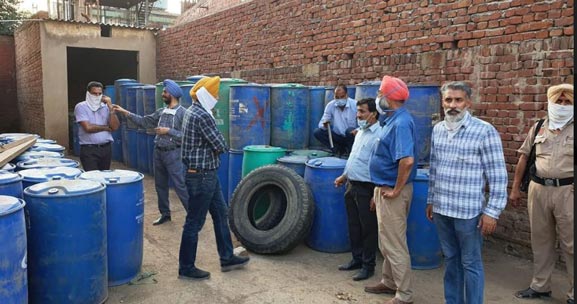 Share on Facebook Share on Twitter Share on Google+ Share on Pinterest Share on Linkedin Excise department seizes big haul of 27600 litres of illicit chemical containing spirit from Dera Bassi Mohali second big recovery within 15 days Nabaabz-e-punjab Chandigarh /Mohali, August 9: Cracking down further on the illicit liquor trading and smuggling in the state, the Excise Department got a major breakthrough on Sunday when it seized 27600 litres of chemicals containing spirit. It is so far the biggest haul of such nature by the department. Divulging the details, a spokesperson of the Excise & Taxation department said that its special team from Mohali seized heavy quantity of 27600 litres of chemical containing spirit from 3 places. Mr. Bikram Brar DSP also joined the raiding team. It was stored in 138 drums of 200 litres capacity each. The seizure was made from village Devinagar, Tehsil Derabassi in Mohali District. During the raid conducted at the premises of the M/s Allychem Chemicals godown, E-68/69 Focal point Dera Bassi, 82 drums of 200 litre each has been recovered. On raids conducted at M/s Om Solvi Trading who was running its operations from D-11 Focal point, Dera Bassi, 49 drums of 200 litres each have been recovered. Similarly, on a raid on M/s Pure Solutions F-28, Focal Point Dera Bassi, 7 drums of 200 litres each have been recovered. The spokesperson further revealed that 4 persons have been arrested in the case including owners of the firms. The link for these firms have been traced from the earlier raid carried out by the department on July 23 almost a week before the unfortunate tragedy when 5300 litres of chemicals and spirit was recovered from the premises of M/s Binny Chemicals. It is reported that these firms used to supply the material to Binny Chemicals who would further sell it in the market. During the interrogation, the accused revealed that they were reducing the waste of pharmaceutical companies. However, they couldn’t clarify the products they were manufacturing as also their customers. Investigations are in progress to examine the record and to trace further links of the accused in the case. Taking no chances, the Excise department has also called for the services of Chemical experts of the Forensic Science Laboratory. It may be recalled that the Punjab Chief Minister Capt. Amarinder Singh has already given clear cut instructions to the Excise department not to show any leniency with the unscrupulous elements involved in the illicit liquor trade.