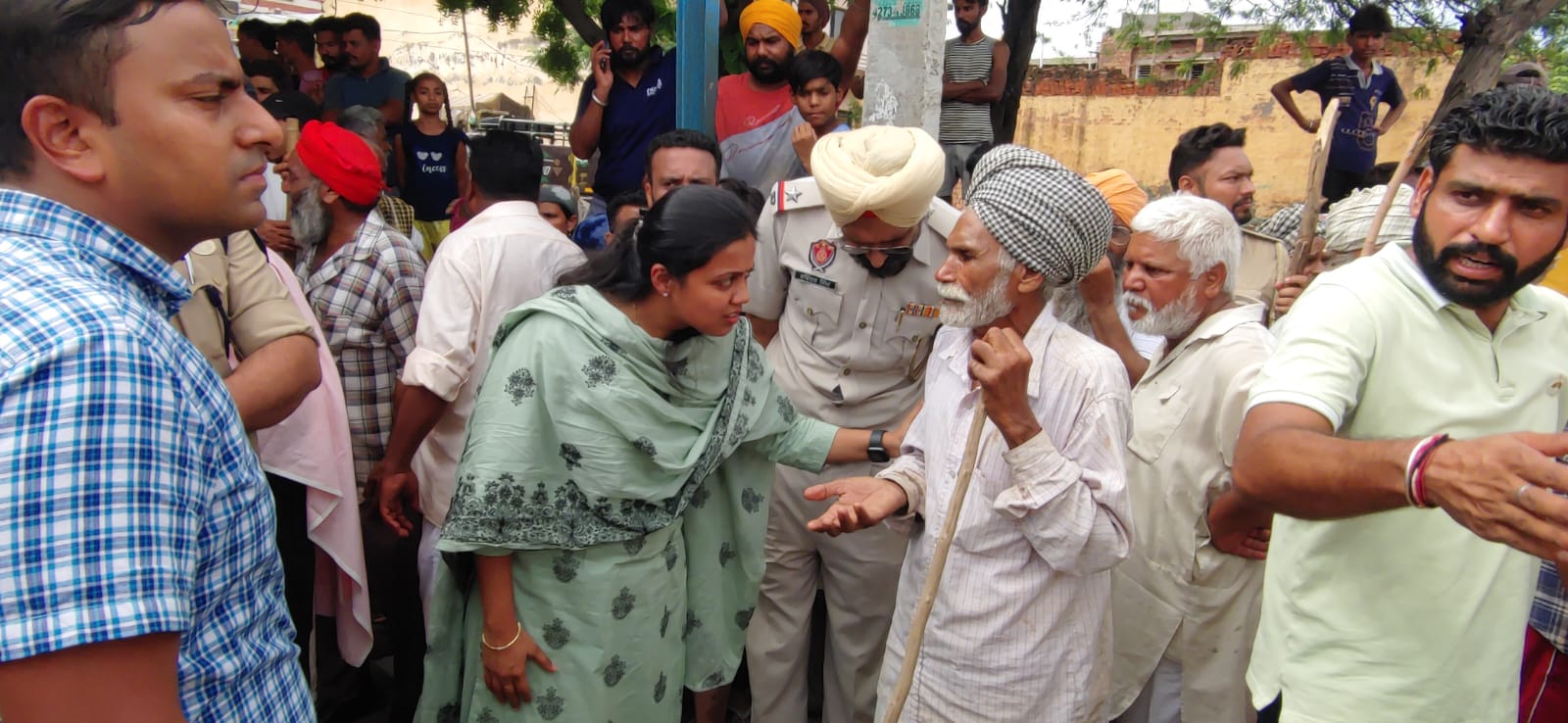 Share on Facebook Share on Twitter Share on Google+ Share on Pinterest Share on Linkedin Ghaggar Breach to be plugged soon, says DC Mohali Aashika Jain Flood Affected People Need not to Worry, Administration will tackle the situation diligently, says DC Nabaz-e-Punjab Bureau, Derabassi, July 11, 2023: SAS Nagar Mohali Deputy Commissioner Aashika Jain said that the breaches that appeared at Alamgir and other places would be plugged soon as the water started receding gradually. Now only the fields remain inundated in flooded water while the houses are safe. visiting the flood affected areas along with SSP Dr Sandeep Garg, ADC (UD) Damandeep Singh Mann and SDM Himanshu Gupta, she said that there is no human loss barring washing away the paddy crop in the nearby villages as the announcements were being made for the last three days to caution people of the probable breach due to inflow of more water. Many of the people were rescued in time, while the others preferred to stay at their villages at safer places, she added. She said the breach has affected the nearby villages of Alamgir including Sadhawala, Dandehra, Khajur Mandi, Tiwana, Bahora and Bahori etc. While visting Alamagir, Sarsini and Khajur Mandi, she assured the residents of fulsome support from the administration side by adding that the SDM Derabassi Himanshu Gupta has already camped there for the last few days to monitor the situation as well as the ongoing strengthening work of Tiwana embankment. Applauding the services rendered by the NDRF and Army to rescue the residents of the area, she said that in fact the NDRF and Army persons have extended exemplary support to administration in rescuing the people from Rakoli, Rurka, Gumohar City Extension Derabassi and many other waterlogged areas to safer places. She directed the revenue and rural development officials indulging in relief and rescue here to ensure supply of the drinking water and other eatables to the residents staying at their homes uninterruptedly. She said the NDRF and Army persons would stay here till the normalcy returned. She said the road connectivity that is inaccessible due to waterlogged will be resumed after receding of the water level. Till then the relief and medical services would be made available through tractors. SSP Dr Sandeep Garg said that the police personnel have been directed to support the efforts of the district administration dedicatedly so that manpower does not lack. He said that besides the police personnel are also actively participating at other rescue and relief operations with the civil administration besides monitoring the situation. DC Aashika, SSP Garg, ADC Mann and SDM Himanshu also visited the waterlogged area by a tractor and talked to the Sarpanch of the village Sirsini and residents of Khajur Mandi whose homes also surrounded by flooded water. Tehsildar Kuldeep Singh Dhillon and Naib Tehsildar Harinder jit Singh besides Executive Engineer Drainage Rajat Grover were also present there. DC while interacting with the villagers gave assurance to them of the 24X7 support from the district administration besides to assess the loss of their crops after receding the water.
