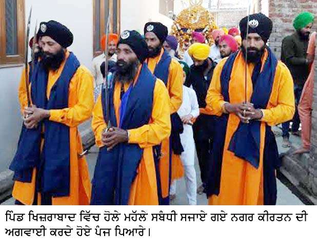 Share on Facebook Share on Twitter Share on Google+ Share on Pinterest Share on Linkedin ਪਿੰਡ ਖ਼ਿਜਰਾਬਾਦ ਵਿੱਚ ਹੋਲੇ ਮਹੱਲੇ ਨੂੰ ਵਿਸ਼ਾਲ ਨਗਰ ਕੀਰਤਨ ਸਜਾਇਆ ਰਜਨੀਕਾਂਤ ਗਰੋਵਰ ਨਬਜ਼-ਏ-ਪੰਜਾਬ ਬਿਊਰੋ, ਮਾਜਰੀ, 5 ਮਾਰਚ: ਬਲਾਕ ਮਾਜਰੀ ਅਧੀਨ ਪੈਂਦੇ ਪਿੰਡ ਖਿਜ਼ਰਾਬਾਦ ਦੇ ਗੁਰਦੁਆਰਾ ਬਾਬਾ ਜੋਰਾਵਰ ਸਿੰਘ ਜੀ ਦੇ ਪਾਵਨ ਪਵਿੱਤਰ ਅਸਥਾਨ ‘ਤੇ ਹੋਲੇ ਮਹੱਲੇ ਮੌਕੇ ਅੱਜ ਸ੍ਰੀ ਗੁਰੂ ਗ੍ਰੰਥ ਸਾਹਿਬ ਜੀ ਦੀ ਛਤਰ ਛਾਇਆ ਹੇਠ ਪੰਜ ਪਿਆਰਿਆਂ ਦੀ ਅਗਵਾਈ ਹੇਠ ਨਗਰ ਕੀਰਤਨ ਸਜਾਇਆ ਗਿਆ। ਨਗਰ ਕੀਰਤਨ ਗੁਰਦਵਾਰਾ ਬਾਬਾ ਜੋਰਾਵਰ ਸਿੰਘ ਜੀ ਤੋਂ ਆਰੰਭ ਹੋ ਕੇ ਪਿੰਡ ‘ਚ ਵੱਖ-ਵੱਖ ਪੜ੍ਹਾਵਾਂ ‘ਤੇ ਰੁਕਿਆ ਜਿਥੇ ਸੰਗਤਾਂ ਨੇ ਨਗਰ ਕੀਰਤਨ ਦਾ ਭਰਵਾਂ ਸਵਾਗਤ ਕੀਤਾ ਅਤੇ ਸੰਗਤਾਂ ਵੱਲੋਂ ਥਾਂ ਥਾਂ ਤੇ ਲੰਗਰ ਲਗਾਏ ਗਏ। ਇਸ ਦੌਰਾਨ ਢਾਡੀ ਜਥਿਆਂ ਨੇ ਸੰਗਤਾਂ ਨੂੰ ਗੁਰੂ ਜਸ ਸੁਣਾਕੇ ਨਿਹਾਲ ਕੀਤਾ। ਨਗਰ ਕੀਰਤਨ ਵਾਪਸ ਗੁਰਦਵਾਰਾ ਸਾਹਿਬ ਜਾ ਕੇ ਸੰਪੰਨ ਹੋਇਆ। ਇਸ ਮੌਕੇ ਗੁਰਦਵਾਰਾ ਪ੍ਰਬੰਧਕ ਕਮੇਟੀ ਦੇ ਪ੍ਰਧਾਨ ਸੁਖਵਿੰਦਰ ਸਿੰਘ ਅਤੇ ਮੀਤ ਪ੍ਰਧਾਨ ਹਰਦੀਪ ਸਿੰਘ ਖਿਜ਼ਰਾਬਾਦ ਨੇ ਦੱਸਿਆ ਕਿ ਭਲਕੇ 6 ਤੇ 7 ਮਾਰਚ ਨੂੰ ਦਿਨ ਤੇ ਰਾਤ ਸਮੇਂ ਖੁੱਲ੍ਹੇ ਦੀਵਾਨ ਸਜਾਏ ਜਾਣਗੇ, ਜਿਨ੍ਹਾਂ ਵਿਚ ਰਾਗੀ, ਢਾਡੀ, ਕਵੀਸ਼ਰੀ ਤੇ ਕੀਰਤਨੀ ਜਥੇ ਸੰਗਤਾਂ ਨੂੰ ਗੁਰੂ ਜਸ ਸੁਣਾਕੇ ਨਿਹਾਲ ਕਰਨਗੇ। ਇਸ ਮੌਕੇ ਵੱਡੀ ਗਿਣਤੀ ਵਿਚ ਸੰਗਤਾਂ ਨੇ ਨਗਰ ਕੀਰਤਨ ਵਿਚ ਸ਼ਮੂਲੀਅਤ ਕੀਤੀ।