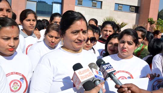 Share on Facebook Share on Twitter Share on Google+ Share on Pinterest Share on Linkedin ਅੰਤਰਰਾਸ਼ਟਰੀ ਮਹਿਲਾ ਦਿਵਸ ਮੌਕੇ ਮਹਿਲਾ ਮੁਲਾਜ਼ਮਾਂ ਦੀ ‘ਵਾਕਥੌਨ ਦੌੜ’ ਨਬਜ਼-ਏ-ਪੰਜਾਬ ਬਿਊਰੋ, ਮੁਹਾਲੀ, 8 ਮਾਰਚ: ਸਾਹਿਬਜ਼ਾਦਾ ਅਜੀਤ ਸਿੰਘ ਨਗਰ ਦੀ ਡਿਪਟੀ ਕਮਿਸ਼ਨਰ ਸ੍ਰੀਮਤੀ ਗੁਰਪ੍ਰੀਤ ਕੌਰ ਸਪਰਾ ਦੀ ਅਗਵਾਈ ਹੇਠ ਅੰਤਰਰਾਸ਼ਟਰੀ ਮਹਿਲਾ ਦਿਵਸ ਮੌਕੇ ਜ਼ਿਲ੍ਹਾ ਪ੍ਰਬੰਧਕੀ ਕੰਪਲੈਕਸ ਤੋਂ ਕੁੰਭੜਾ ਚੌਂਕ ਤੱਕ ਲੇਡੀ ਵਾਕਥੌਨ ਦੌੜ ਦਾ ਆਯੋਜਨ ਕੀਤਾ ਗਿਆ। ਇਸ ਵਾਕਥੌਨ ਦੌੜ ਵਿਚ ਜ਼ਿਲ੍ਹਾ ਪ੍ਰਬੰਧਕੀ ਕੰਪਲੈਕਸ ਸਥਿਤ ਦਫਤਰਾਂ ਵਿਚ ਕੰਮ ਕਰਦੀਆਂ ਅੌਰਤਾਂ ਅਤੇ ਨੋਜਵਾਨ ਲੜਕੀਆਂ ਨੇ ਹਿੱਸਾ ਲਿਆ। ਇਸ ਦੌੜ ਨੂੰ ਵਧੀਕ ਡਿਪਟੀ ਕਮਿਸ਼ਨਰ ਸ੍ਰੀ ਚਰਨਦੇਵ ਸਿੰਘ ਮਾਨ ਅਤੇ ਵਧੀਕ ਡਿਪਟੀ ਕਮਿਸ਼ਨਰ (ਵਿਕਾਸ) ਸ੍ਰੀ ਸੰਜੀਵ ਕੁਮਾਰ ਗਰਗ, ਐਸ.ਡੀ.ਐਮ ਆਰ ਪੀ ਸਿੰਘ ਅਤੇ ਜ਼ਿਲ੍ਹਾ ਪ੍ਰੋਗਰਾਮ ਅਫਸਰ ਸ੍ਰੀ ਅਮਰਜੀਤ ਸਿੰਘ ਕੌਰੇ ਵੱਲੋਂ ਸਾਂਝੇ ਤੌਰ ਤੇ ਹਰੀ ਝੰਡੀ ਦਿਖਾ ਕੇ ਰਵਾਨਾ ਕੀਤਾ। ਇਸ ਮੌਕੇ ਮੀਡੀਆ ਨਾਲ ਗੱਲਬਾਤ ਦੌਰਾਨ ਡਿਪਟੀ ਕਮਿਸ਼ਨਰ ਦੀ ਨਿੱਜੀ ਸਹਾਇਕ ਸ੍ਰੀਮਤੀ ਸੁਨੀਤਾ ਸ਼ਰਮਾ ਨੇ ਕਿਹਾ ਕਿ ਇਸ ਦੌੜ ਦਾ ਮੁੱਖ ਆਦੇਸ ਅੌਰਤਾਂ ਨੁੂੰ ਮਹਾਂਵਾਰੀ ਸਫਾਈ ਮੁਹਿੰਮ ਨੂੰ ਲਾਂਚ ਕਰਕੇ ਉਸ ਸਬੰਧੀ ਜਾਗਰੂਕ ਕਰਨਾ ਸੀ। ਜਿਸ ਲਈ ਸਮਾਜ ਵਿੱਚ ਅਜੇ ਵੀ ਬਹੁਤ ਅਜਿਹੇ ਵਹਿਮ ਜਾਂ ਗਲਤ ਧਾਰਨਾਵਾਂ ਹਨ। ਜਿੰਨ੍ਹਾਂ ਨੂੰ ਖਤਮ ਕਰਨ ਦੀ ਲੋੜ ਹੈ ਅਤੇ ਅੌਰਤਾਂ ਨੂੰ ਇਸ ਸਬੰਧੀ ਜਾਗਰੁਕ ਹੋਣਾ ਜਰੂਰੀ ਹੈ। ਮਹਾਂਵਾਰੀ ਕੋਈ ਬਿਮਾਰੀ ਨਹੀਂ ਬਲਕਿ ਇਹ ਅੌਰਤ ਨੂੰ ਕੁਦਰਤ ਦੀ ਦਾਤ ਹੈ। ਅੌਰਤਾਂ ਨੂੰ ਮਹਾਂਵਾਰੀ ਦੌਰਾਨ ਸਾਫ ਸਫਾਈ ਦੀ ਮਹੱਤਤਾ ਬਾਰੇ ਵੀ ਜਾਗਰੂਕ ਕੀਤਾ ਗਿਆ।