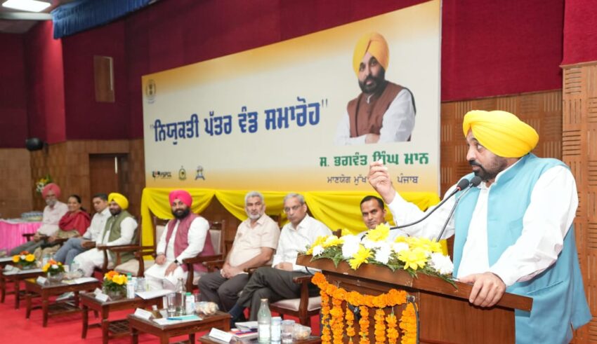 Share on Facebook Share on Twitter Share on Google+ Share on Pinterest Share on Linkedin Led by CM Punjab sets new record by providing 7660 jobs to youth in last 25 days 36524 Government Jobs to Youth merely in 18 months Nabaz-e-Punjab Bureau, Chandigarh, September 23: In an unprecedented and landmark initiative, the Punjab Chief Minister Bhagwant Singh Mann on Saturday created a record by handing over 36524 recruitment letters of the government jobs to the youth of the state merely in 18 months of its stint. Addressing the gathering during a function to give appointment letters to 427 youth in Power, Education, Forest and other departments, the Chief Minister said that this is a rare feat as none of the previous governments have achieved this milestone in such a short span of its tenure. He said that in the last 25 days since August 30 the state government has given appointment letters to 7660 youth of the state. Bhagwant Singh Mann said that these include 5714 Anganwari workers, 710 Patwaris, 560 Police, 249 and 427 in various other departments. The Chief Minister said that a foolproof mechanism has been adopted for the entire recruitment process due to which not even a single appointment out of these more than 36000 have been challenged so far in the court. He said that it is a proud moment for the government of Punjab that these youth have been given government jobs completely on the basis of merit. Bhagwant Singh Mann said that the sole aim is to ensure that the youth of the state become an active partner in the social economic growth of the state. The Chief Minister said that by giving these jobs in the first 18 months of its tenure the state government has set a record of providing government service to 2000 youth every month. He said that it is a record as none of the previous governments have given so many jobs to youth especially in the initial months of its tenure. Bhagwant Singh Mann reiterated that merit and transparency have been the twin pillars based on which jobs have been given to the youth across the state. The Chief Minister exhorted the newly recruited youth to serve the people with missionary zeal as now they have become integral part of the government. Bhagwant Singh Mann hoped that the new recruits will use their pen for helping the needy and underprivileged sections of society. He said that the newly recruited youth should ensure maximum welfare of the public so that every section of society is benefited from it. The Chief Minister reiterated that the youth should feel proud as they are becoming a team of the state government which is working untiringly for carving out a new Punjab. He said that the state government has been conducting this recruitment drive in a transparent manner and jobs are being given only to deserving and needy candidates. Bhagwant Singh Mann said that neither any recommendation nor any other tantrum except merit is working in this recruitment drive. The Chief Minister said that this venue has witnessed a number of such events in which youth have got jobs in various government departments. He said that this reflects the commitment of the state government to ensure the well being of youth and opening new avenues of employment for them. Bhagwant Singh Mann said that it is a matter of immense pride and satisfaction for him that all the youth have been selected for these posts purely on the basis of merit. The Chief Minister said that as runways at the airports facilitate an Airplane for its smooth take off in the same manner the state government is helping the youth to realize their dreams. He asserted that every effort is being made to give wings to the ideas of youth and no stone is being left unturned for this noble cause. Bhagwant Singh Mann made a fervent appeal to youth to make all out efforts for carving an identity of their own to make a place in society adding that sky’s the limit for them. The Chief Minister said that during the earlier tenures these runways were merely used by affluent people to set their own families. However, he said that now these runways have been opened for the youth of common families by his government. Bhagwant Singh Mann urged the youth to take maximum mileage of these runways for making progress in life thereby ushering a new era of prosperity. The Chief Minister bemoaned that during the previous regimes people used to be scared of success as the earlier rulers used to pressurize them for putting their share in ventures. He said that these leaders looted the masses, especially the successful industrialists. Bhagwant Singh Mann said that several restrictions were imposed on industrialists and then also they were branded as thieves by previous state governments. The Chief Minister exhorted newly recruited employees to work with sheer honesty for the welfare of Punjab and its people as they also got the jobs on basis of merit. He said that with the sincere efforts of the Punjab government, the process of reverse the brain drain from the state has already started. Bhagwant Singh Mann said that Punjab government has been working diligently to fulfill the dream of making the state again as Rangla Punjab and bring back the lost glory of the state. Reiterating that the Punjab government has zero tolerance against the corruption, the Chief Minister said that he is keeping a close tab on all officials working to ensure smooth and transparent governance in the state. On the occasion Cabinet Ministers Harbhajan Singh ETO, Lal Chand Kataruchak and Harjot Singh Bains along with others were also present.