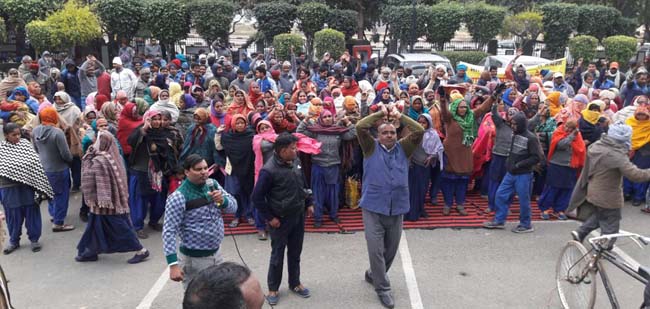 ਸਫ਼ਾਈ ਕਾਮਿਆਂ ਅਤੇ ਕਲਾਸ-ਫੌਰ ਮੁਲਾਜ਼ਮਾਂ ਨੇ ਮਿਉਂਸਪਲ ਭਵਨ ਦੇ ਬਾਹਰ ਦਿੱਤਾ ਵਿਸ਼ਾਲ ਰੋਸ ਧਰਨਾ