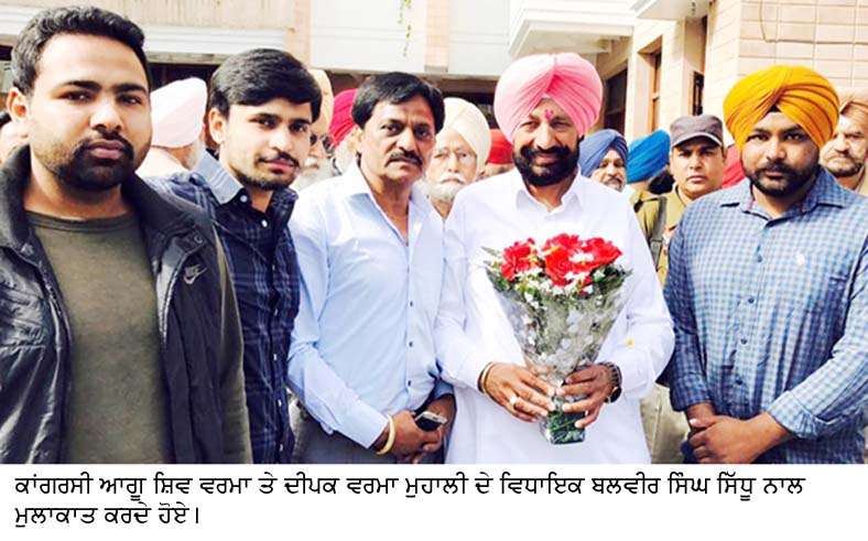 Share on Facebook Share on Twitter Share on Google+ Share on Pinterest Share on Linkedin ਵਿਧਾਇਕ ਬਲਬੀਰ ਸਿੱਧੂ ਨਾਲ ਕਾਂਗਰਸੀ ਆਗੂ ਸ਼ਿਵ ਵਰਮਾ ਨੇ ਕੀਤੀ ਮੁਲਾਕਾਤ ਰਜਨੀਕਾਂਤ ਗਰੋਵਰ ਨਬਜ਼-ਏ-ਪੰਜਾਬ ਬਿਊਰੋ, ਕੁਰਾਲੀ, 25 ਮਾਰਚ: ਪੰਜਾਬ ਪ੍ਰਦੇਸ਼ ਕਾਂਗਰਸ ਜਿਲ੍ਹਾ ਮੁਹਾਲੀ ਦੇ ਪ੍ਰਧਾਨ ਅਤੇ ਮੁਹਾਲੀ ਵਿਧਾਨ ਸਭਾ ਹਲਕੇ ਤੋਂ ਤੀਜੀ ਵਾਰ ਵਿਧਾਨ ਸਭਾ ਵਿੱਚ ਪੁੱਜਣ ਵਿੱਚ ਸਫ਼ਲ ਹੋਏ ਕਾਂਗਰਸੀ ਵਿਧਾਇਕ ਬਲਬੀਰ ਸਿੰਘ ਸਿੱਧੂ ਨਾਲ ਕੁਰਾਲੀ ਦੇ ਦਿੱਗਜ ਕਾਂਗਰਸੀ ਆਗੂ ਸ਼ਿਵ ਵਰਮਾ ਨੇ ਮੁਲਾਕਾਤ ਕਰਦਿਆਂ ਉਨ੍ਹਾਂ ਨੂੰ ਗੁਲਦਸਤਾ ਭੇਂਟ ਕੀਤਾ। ਇਸ ਮੌਕੇ ਸ਼ਿਵ ਵਰਮਾ ਨੇ ਕਿਹਾ ਕਿ ਆਉਣ ਵਾਲੇ ਸਮੇਂ ਵਿਚ ਵਿਧਾਇਕ ਬਲਵੀਰ ਸਿੰਘ ਸਿੱਧੂ ਨੂੰ ਕਾਂਗਰਸ ਦੀ ਸਰਕਾਰ ਵਿਚ ਕੈਪਟਨ ਅਮਰਿੰਦਰ ਸਿੰਘ ਵੱਲੋਂ ਵਿਸ਼ੇਸ ਜਿੰਮੇਵਾਰੀ ਦਿੱਤੀ ਜਾਵੇਗੀ ਤਾਂ ਜੋ ਜਿਲ੍ਹਾ ਮੋਹਾਲੀ ਤੋਂ ਵੀ ਪੰਜਾਬ ਸਰਕਾਰ ਦੇ ਮੰਤਰੀਮੰਡਲ ਵਿਚ ਨੁਮਾਇੰਦਾ ਸ਼ਾਮਲ ਹੋ ਸਕੇ। ਇਸ ਮੌਕੇ ਦੀਪਕ ਵਰਮਾ ਕੋਆਰਡੀਨੇਟਰ ਯੂਥ ਕਾਂਗਰਸ ਲੋਕ ਸਭਾ ਹਲਕਾ ਸ਼੍ਰੀ ਅਨੰਦਪੁਰ ਸਾਹਿਬ ਨੇ ਕੈਪਟਨ ਅਮਰਿੰਦਰ ਸਿੰਘ ਨੂੰ ਅਪੀਲ ਕੀਤੀ ਕਿ ਬਲਵੀਰ ਸਿੰਘ ਸਿੱਧੂ ਨੂੰ ਆਉਣ ਵਾਲੇ ਦਿਨਾਂ ਵਿਚ ਵਿਸ਼ੇਸ ਜਿੰਮੇਵਾਰੀ ਦੇ ਕੇ ਨਿਵਾਜਿਆ ਜਾਵੇ ਤਾਂ ਜੋ ਜਿਲ੍ਹੇ ਵਿਚ ਰਹਿੰਦੇ ਵਿਕਾਸ ਕਾਰਜ ਕਰਵਾਏ ਜਾ ਸਕਣ।