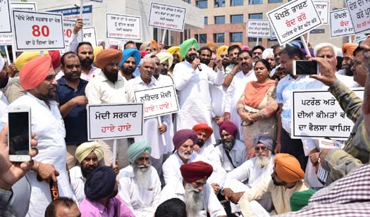 Share on Facebook Share on Twitter Share on Google+ Share on Pinterest Share on Linkedin ਤੇਲ ਦੀਆਂ ਕੀਮਤਾਂ ਵਿੱਚ ਵਾਧੇ ਨਾਲ ਮੋਦੀ ਸਰਕਾਰ ਦਾ ਲੋਕ ਵਿਰੋਧੀ ਚਿਹਰਾ ਹੋਇਆ ਬੇਨਕਾਬ: ਸਿੱਧੂ ਕੈਬਨਿਟ ਮੰਤਰੀ ਸਿੱਧੂ ਦੀ ਅਗਵਾਈ ਵਿੱਚ ਕਾਂਗਰਸੀ ਵਰਕਰਾਂ ਵੱਲੋਂ ਡੀਸੀ ਦਫ਼ਤਰ ਦੇ ਬਾਹਰ ਕੇਂਦਰ ਸਰਕਾਰ ਖ਼ਿਲਾਫ਼ ਮੁਜ਼ਾਹਰਾ ਇਲਾਕੇ ਦੇ ਲੋਕਾਂ ਤੇ ਕਾਂਗਰਸੀ ਵਰਕਰਾਂ ਨੇ ਕੈਬਨਿਟ ਮੰਤਰੀ ਸਿੱਧੂ ਦੀ ਅਗਵਾਈ ਵਿੱਚ ਡੀਸੀ ਨੂੰ ਸੌਂਪਿਆ ਮੰਗ ਪੱਤਰ ਨਬਜ਼-ਏ-ਪੰਜਾਬ ਬਿਊਰੋ, ਮੁਹਾਲੀ, 31 ਮਈ: ਕੇਂਦਰ ਸਰਕਾਰ ਦੀਆਂ ਗ਼ਲਤ ਨੀਤੀਆਂ ਕਾਰਨ ਅੱਜ ਦੇਸ਼ ਵਾਸੀਆਂ ਨੂੰ ਵੱਡੀਆਂ ਮੁਸ਼ਕਲਾਂ ਦਾ ਸਾਹਮਣਾ ਕਰਨਾ ਪੈ ਰਿਹਾ ਹੈ। ਤੇਲ ਦੀਆਂ ਕੀਮਤਾਂ ਵਿੱਚ ਵਾਧਾ ਕਰ ਕੇ ਪਹਿਲਾਂ ਹੀ ਆਰਥਿਕ ਸੰਕਟ ਦਾ ਸਾਹਮਣਾ ਕਰ ਰਹੇ ਲੋਕਾਂ ਦੀਆਂ ਮੁਸ਼ਕਲਾਂ ਵਿੱਚ ਵਾਧਾ ਕਰ ਦਿੱਤਾ ਗਿਆ ਹੈ। ਇਹ ਗੱਲ ਪਸ਼ੂ ਪਾਲਣ, ਡੇਅਰੀ ਵਿਕਾਸ ਅਤੇ ਕਿਰਤ ਮੰਤਰੀ ਬਲਬੀਰ ਸਿੰਘ ਸਿੱਧੂ ਨੇ ਕਾਂਗਰਸੀ ਵਰਕਰਾਂ ਅਤੇ ਆਮ ਲੋਕਾਂ ਸਮੇਤ ਜ਼ਿਲ੍ਹਾ ਪ੍ਰਬੰਧਕੀ ਕੰਪਲਕੈਸ ਵਿਖੇ ਤੇਲ ਕੀਮਤਾਂ ਵਿੱਚ ਵਾਧੇ ਖ਼ਿਲਾਫ਼ ਪ੍ਰਦਰਸ਼ਨ ਕਰਦਿਆਂ ਆਖੀ। ਇਸ ਮੌਕੇ ਸਾਬਕਾ ਕੈਬਨਿਟ ਮੰਤਰੀ ਜਗਮੋਹਨ ਸਿੰਘ ਕੰੰਗ ਵੀ ਹਾਜ਼ਰ ਸਨ। ਸ੍ਰੀ ਸਿੱਧੂੁ ਦੀ ਅਗਵਾਈ ਵਿੱਚ ਪਾਰਟੀ ਵਰਕਰਾਂ ਵੱਲੋਂ ਪ੍ਰਧਾਨ ਮੰਤਰੀ ਨਰਿੰਦਰ ਮੋਦੀ ਦੇ ਨਾਂ ਡਿਪਟੀ ਕਮਿਸ਼ਨਰ ਨੂੰ ਮੰਗ ਪੱਤਰ ਸੌਂਪ ਕੇ ਤੇਲ ਦੀਆਂ ਕੀਮਤਾਂ ਘਟਾਉਣ ਦੀ ਮੰਗ ਕੀਤੀ ਗਈ। ਕੇਂਦਰ ਸਰਕਾਰ ਦੀ ਆਲੋਚਨਾ ਕਰਦਿਆਂ ਸ੍ਰੀ ਸਿੱਧੂ ਨੇ ਕਿਹਾ ਕਿ ਸੰਨ 2012 ਵਿੱਚ ਜਦੋਂ ਕੌਮਾਂਤਰੀ ਬਾਜ਼ਾਰ ਵਿੱਚ ਕੱਚੇ ਤੇਲ ਦੀ ਕੀਮਤ 104.09 ਡਾਲਰ ਪ੍ਰਤੀ ਬੈਰਲ ਸੀ ਤਾਂ ਮਨਮੋਹਨ ਸਿੰਘ ਸਰਕਾਰ ਦੇਸ਼ ਵਾਸੀਆਂ ਨੂੰ ਡੀਜ਼ਲ 40.91 ਰੁਪਏ ਅਤੇ ਪੈਟਰੋਲ 73.18 ਰੁਪਏ ਪ੍ਰਤੀ ਲੀਟਰ ਮੁਹੱਈਆ ਕਰਵਾ ਰਹੀ ਸੀ ਅਤੇ ਹੁਣ ਕੇਂਦਰ ਵਿਚਲੀ ਮੋਦੀ ਸਰਕਾਰ ਕੌਮਾਂਤਰੀ ਬਾਜ਼ਾਰ ਵਿੱਚ ਕੱਚੇ ਤੇਲ ਦੀ ਕੀਮਤ ਸਿਰਫ਼ 67.50 ਡਾਲਰ ਪ੍ਰਤੀ ਬੈਰਲ ਹੋਣ ਦੇ ਬਾਵਜੂਦ ਡੀਜ਼ਲ 69 ਰੁਪਏ ਅਤੇ ਪੈਟਰੋਲ 78 ਰੁਪਏ ਪ੍ਰਤੀ ਲੀਟਰ ਮੁਹੱਈਆ ਕਰਵਾ ਰਹੀ ਹੈ। ਇਸ ਤੋਂ ਇਲਾਵਾ ਸੰਨ 2004 ਵਿੱਚ ਜਦੋਂ ਕੌਮਾਂਤਰੀ ਬਾਜ਼ਾਰ ਵਿੱਚ ਕੱਚੇ ਤੇਲ ਦੀ ਕੀਮਤ 35.54 ਡਾਲਰ ਸੀ ਤਾਂ ਮਨਮੋਹਨ ਸਿੰਘ ਦੀ ਅਗਵਾਈ ਵਾਲੀ ਸਰਕਾਰ ਡੀਜ਼ਲ 22.74 ਰੁਪਏ ਅਤੇ ਪੈਟਰੋਲ 35.71 ਰੁਪਏ ਪ੍ਰਤੀ ਲੀਟਰ ਮੁਹੱਈਆ ਕਰਵਾ ਰਹੀ ਸੀ। ਦੂਜੇ ਬੰਨੇ ਜਦੋਂ ਫਰਵਰੀ 2016 ਵਿੱਚ ਕੌਮਾਂਤਰੀ ਬਾਜ਼ਾਰ ਵਿੱਚ ਕੱਚੇ ਤੇਲ ਦੀਆਂ ਕੀਮਤਾਂ ਡਿੱਗ ਕੇ 31.03 ਡਾਲਰ ਪ੍ਰਤੀ ਬੈਰਲ ਰਹਿ ਗਈਆਂ ਤਾਂ ਵੀ ਮੋਦੀ ਸਰਕਾਰ ਨੇ ਦੇਸ਼ ਵਾਸੀਆਂ ਨੂੰ ਡੀਜ਼ਲ 44.96 ਅਤੇ ਪੈਟਰੋਲ 59.95 ਰੁਪਏ ਲੀਟਰ ਖ਼ਰੀਦਣ ਲਈ ਮਜਬੂਰ ਕੀਤਾ। ਉਨ੍ਹਾਂ ਕਿਹਾ ਕਿ ਜਦੋਂ ਭਾਜਪਾ ਵਿਰੋਧੀ ਧਿਰ ਸੀ ਤਾਂ ਤੇਲ ਦੀਆਂ ਕੀਮਤਾਂ ਨੂੰ ਲੈ ਕੇ ਸੰਘਰਸ਼ ਕਰਦੀ ਹੁੰਦੀ ਸੀ ਪਰ ਹੁਣ ਪ੍ਰਧਾਨ ਮੰਤਰੀ ਨਰਿੰਦਰ ਮੋਦੀ ਦੀ ਅਗਵਾਈ ਵਾਲੀ ਭਾਜਪਾ ਸਰਕਾਰ ਦੇਸ਼ ਨੂੰ ਚਲਾ ਰਹੀ ਹੈ ਤਾਂ ਫਿਰ ਲੋਕਾਂ ਨੂੰ ਮਹਿੰਗੇ ਭਾਅ ਤੇਲ ਕਿਉਂ ਖ਼ਰੀਦਣਾ ਪੈ ਰਿਹਾ ਹੈ ਤੇ ਲੋਕਾਂ ਦੀਆਂ ਮੁਸ਼ਕਲਾਂ ਹੱਲ ਹੋਣ ਦੀ ਥਾ ਵੱਧਦੀਆਂ ਜਾ ਰਹੀਆਂ ਹਨ। ਉਨ੍ਹਾਂ ਕਿਹਾ ਕਿ ਕਾਂਗਰਸ ਹਰ ਵੇਲੇ ਦੇਸ਼ ਵਾਸੀਆਂ ਦੇ ਹੱਕ ਵਿੱਚ ਖੜ੍ਹੀ ਹੈ ਤੇ ਲੋਕਾਂ ਨਾਲ ਕਿਸੇ ਵੀ ਕਿਸਮ ਦੀ ਵਧੀਕੀ ਦਾ ਡੱਟ ਕੇ ਵਿਰੋਧ ਕਰੇਗੀ। ਉਨ੍ਹਾਂ ਕਿਹਾ ਕਿ ਪ੍ਰਧਾਨ ਮੰਤਰੀ ਨੂੰ ਆਪਣੇ ਚੋਣ ਵਾਅਦੇ ਯਾਦ ਕਰਨੇ ਚਾਹੀਦੇ ਹਨ। ਇਸ ਮੌਕੇ ਸਿੱਧੂ ਦੇ ਸਿਆਸੀ ਸਲਾਹਕਾਰ ਹਰਕੇਸ਼ ਚੰਦ ਸ਼ਰਮਾ ਮੱਛਲੀ ਕਲਾਂ, ਮਹਿਲਾ ਕਾਂਗਰਸ ਦੀ ਜ਼ਿਲ੍ਹਾ ਪ੍ਰਧਾਨ ਸਵਰਨਜੀਤ ਕੌਰ, ਗੁਰਚਰਨ ਸਿੰਘ ਭੰਵ