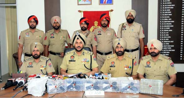 Share on Facebook Share on Twitter Share on Google+ Share on Pinterest Share on Linkedin Nine held with 1.15KG heroin, 5 sophisticated weapons, ₹9.7Lakhs drug money in amritsar Further investigation is underway to trace forward and backward linkages in this case: DGP More arrests and recoveries are likely in coming day: GPS Bhullar Darshan Singh Sodhi Chandigarh/Amritsar,4 July 2025: In a major intelligence-led operation amidst the ongoing anti-drug campaign ‘Yudh Nashian Virudh’ launched on the directions of Chief Minister Bhagwant Singh Mann, Amritsar Commissionerate Police has busted two separate modules—international narco-arms module and an inter-state narco-hawala syndicate— with the arrest of nine accused persons and recovered 1.15 kg heroin, five sophisticated pistols and Rs 9.7 lakhs drug money from their possession, said Director General of Police (DGP) Punjab Gaurav Yadav here on Friday. Those arrested have been identified as Jaspreet Singh Chauhan alias Kalu (26) of village Sokha Bhaini in Barnala, Harpreet Singh alias Happy (25) of Village Bholoke in Gurdaspur, Tejbir Singh alias Teji (21) of village Basti Lal Singh in Tarn Taran, Danish alias Gaggu (19) of Dashmesh Nagar in Amritsar, Saloni (19) of Kot Khalsa in Amritsar, Jobanpreet Singh alias Joban (28) of village Meharbanpura in Amritsar, Kulwinder Singh (28) of village Kakka in Ludhiana, Abdul Rehman (45) and Pardeep Pintu (44), both residents of Karnataka. DGP Gaurav Yadav said that two separate first information reports (FIRs) have been registered at Police Stations Sadar and Islamabad in Amritsar. Further investigation is underway to trace forward and backward linkages to unearth the whole smuggling module, he said. Sharing details of the first operation, Commissioner of Police (CP) Amritsar Gurpreet Singh Bhullar said that in an intelligence led operation, police teams have arrested three individuals— Jaspreet, Harpreet and Tejbir— involved in narco-arms module and recovered five sophisticated pistols— including three 9MM Glocks and two .30 bore Chinese pistols— along with cartridges from their possession. He said that preliminary investigations have revealed that two of the arrested accused— Jaspreet and Harpreet— had recently returned from Malaysia and were in touch with their handlers in Malaysia and Pakistan. They came to Amritsar area along with their friend Tejbir and on instructions of their handlers and picked up weapon and drugs consignment, he said, while adding that weapons were meant to further deliver to criminal elements to carry out crimes. In this regard, a case FIR no. 106 dated 02.07.2025 has been registered under section 21C of the NDPS Act and section 25 of the Arms Act at Police Station Sadar in Amritsar. In another operation, the CP said that police teams have arrested six accused involved in a narco-hawala network with links to Delhi, Karnataka, and Dubai, and recovered ₹9.7 lakh drug money and 150 grams heroin from their possession. He said that the arrested accused were part of an organised hawala syndicate being operated by Abdul Rehman and Pardeep Pintu, who routed drug proceeds to Dubai through illegal channels. Further investigation is on and more arrests and recoveries are likely in coming days, he added. A case FIR No. 191 dated 27.06.2025 under sections 21-B, 29 and 27-A of the NDPS Act has been registered at Police Station Islamabad in Amritsar.