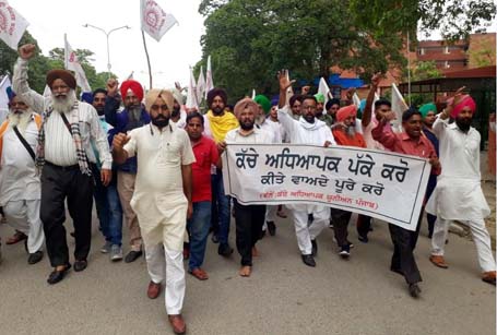 Share on Facebook Share on Twitter Share on Google+ Share on Pinterest Share on Linkedin ਕੱਚੇ ਅਧਿਆਪਕਾਂ ਵੱਲੋਂ ਪੰਜਾਬ ਸਰਕਾਰ ਖ਼ਿਲਾਫ਼ ਰੋਸ ਮਾਰਚ, ਕਿਸਾਨ ਵੀ ਸਮਰਥਨ ’ਚ ਅੱਗੇ ਆਏ ਸਿੱਖਿਆ ਭਵਨ ਦੇ ਬਾਹਰ ਕੱਚੇ ਅਧਿਆਪਕਾਂ ਦਾ ਧਰਨਾ 18ਵੇਂ ਦਿਨ ਵਿੱਚ ਦਾਖ਼ਲ ਨਬਜ਼-ਏ-ਪੰਜਾਬ ਬਿਊਰੋ, ਮੁਹਾਲੀ, 3 ਜੁਲਾਈ: ਕੱਚੇ ਅਧਿਆਪਕ ਯੂਨੀਅਨ ਪੰਜਾਬ ਅਤੇ ਸਿੱਖਿਆ ਪ੍ਰੋਵਾਈਡਰ ਸਮੇਤ ਹੋਰਨਾਂ ਅਧਿਆਪਕ ਯੂਨੀਅਨਾਂ ਵੱਲੋਂ ਕੱਚੇ ਅਧਿਆਪਕ ਪੱਕੇ ਕਰਨ ਦੀ ਮੰਗ ਨੂੰ ਲੈ ਕੇ ਸਿੱਖਿਆ ਭਵਨ ਦੇ ਬਾਹਰ ਦਿੱਤਾ ਜਾ ਰਿਹਾ ਲੜੀਵਾਰ ਧਰਨਾ ਅੱਜ 18ਵੇਂ ਦਿਨ ਵਿੱਚ ਦਾਖ਼ਲ ਹੋ ਗਿਆ। ਮੀਡੀਆ ਕੋਆਰਡੀਨੇਟਰ ਜੁਝਾਰ ਸਿੰਘ ਨੇ ਦੱਸਿਆ ਕਿ ਅੱਜ ਧਰਨੇ ’ਤੇ ਬੈਠੇ ਕੱਚੇ ਅਧਿਆਪਕਾਂ ਨੇ ਸ਼ਹਿਰ ਦੀਆਂ ਸੜਕਾਂ ’ਤੇ ਰੋਸ ਮਾਰਚ ਕਰਦਿਆਂ ਪੰਜਾਬ ਸਰਕਾਰ ਦਾ ਪਿੱਟ ਸਿਆਪਾ ਕੀਤਾ ਅਤੇ ਨਾਅਰੇਬਾਜ਼ੀ ਕੀਤੀ। ਇਸੇ ਦੌਰਾਨ ਕਿਸਾਨ ਮਜ਼ਦੂਰ ਸੰਘਰਸ਼ ਕਮੇਟੀ ਦੇ ਆਗੂ ਬਾਬਾ ਸ਼ੀਤਲ ਸਿੰਘ, ਬਾਬਾ ਰਾਮ ਥੰਮ੍ਹਣ, ਹਰਵਿੰਦਰ ਸਿੰਘ ਖੁਜਾਲਾ ਨੇ ਧਰਨੇ ਵਿੱਚ ਸ਼ਮੂਲੀਅਤ ਕਰਕੇ ਸੰਘਰਸ਼ ਦੀ ਹਮਾਇਤ ਦਾ ਐਲਾਨ ਕਰਦਿਆਂ ਭਰੋਸਾ ਦਿੱਤਾ ਕਿ ਜਦੋਂ ਵੀ ਕੱਚੇ ਅਧਿਆਪਕ ਕਿਸੇ ਵੱਡੇ ਸੰਘਰਸ਼ ਦਾ ਪ੍ਰੋਗਰਾਮ ਉਲੀਕਣਗੇ ਤਾਂ ਕਿਸਾਨਾਂ ਵੱਲੋਂ ਪੂਰਾ ਸਹਿਯੋਗ ਦਿੱਤਾ ਜਾਵੇਗਾ। ਇਸ ਮੌਕੇ ਸੂਬਾ ਕਨਵੀਨਰ ਅਜਮੇਰ ਸਿੰਘ ਅੌਲਖ, ਗਗਨਦੀਪ ਕੌਰ ਅਬੋਹਰ, ਦਵਿੰਦਰ ਸਿੰਘ ਸੰਧੂ, ਹਰਪ੍ਰੀਤ ਕੌਰ ਅਤੇ ਵੀਰਪਾਲ ਕੌਰ ਸਿਧਾਣਾ ਅਤੇ ਜਸਵੰਤ ਸਿੰਘ ਪੰਨੂ ਨੇ ਕਿਹਾ ਕਿ ਅਕਾਲੀ ਸਰਕਾਰ ਦੀ ਅਣਦੇਖੀ ਦੇ ਖ਼ਿਲਾਫ਼ ਸਾਲ2015-16 ਵਿੱਚ ਜਦੋਂ ਕੱਚੇ ਅਧਿਆਪਕ ਲੜੀਵਾਰ ਧਰਨੇ ’ਤੇ ਬੈਠੇ ਸਨ ਤਾਂ ਉਦੋਂ ਕੈਪਟਨ ਅਮਰਿੰਦਰ ਸਿੰਘ ਨੇ ਧਰਨੇ ਵਾਲੀ ਥਾਂ ਪਹੁੰਚ ਕੇ ਭਰੋਸਾ ਦਿੱਤਾ ਸੀ ਕਿ ਜੇਕਰ ਸੂਬੇ ਵਿੱਚ ਕਾਂਗਰਸ ਦੀ ਸਰਕਾਰ ਬਣੀ ਤਾਂ ਪੰਜਾਬ ਕੈਬਨਿਟ ਦੀ ਪਹਿਲੀ ਮੀਟਿੰਗ ਵਿੱਚ ਹੀ ਸਾਰੇ ਕੱਚੇ ਅਧਿਆਪਕਾਂ ਅਤੇ ਕੱਚੇ ਮੁਲਾਜ਼ਮਾਂ ਨੂੰ ਪੱਕਾ ਕੀਤਾ ਜਾਵੇਗਾ ਪ੍ਰੰਤੂ ਸਾਢੇ ਚਾਰ ਸਾਲ ਬੀਤ ਜਾਣ ਦੇ ਬਾਵਜੂਦ ਸਰਕਾਰ ਨੇ ਉਨ੍ਹਾਂ ਨੂੰ ਪੱਕਾ ਨਹੀਂ ਕੀਤਾ ਅਤੇ ਜਦੋਂ ਇਨਸਾਫ਼ ਪ੍ਰਾਪਤੀ ਲਈ ਉਹ ਸੜਕਾਂ ’ਤੇ ਉਤਰੇ ਹਨ ਤਾਂ ਸਰਕਾਰ ਉਨ੍ਹਾਂ ਉੱਤੇ ਲਾਠੀਚਾਰਜ ਕਰਵਾ ਕੇ ਅਧਿਆਪਕਾਂ ਦੀ ਆਵਾਜ਼ ਦਬਾਉਣ ਦੇ ਯਤਨ ਕੀਤੇ ਜਾ ਰਹੇ ਹਨ। ਉਧਰ, ਅੱਤ ਗਰਮੀ ਵਿੱਚ ਕੱਚੇ ਅਧਿਆਪਕ ਸਤਿੰਦਰ ਸਿੰਘ ਕੰਗ ਤਰਨਤਾਰਨ, ਕੁਲਬੀਰ ਸਿੰਘ ਅਬੋਹਰ, ਕੁਲਵਿੰਦਰ ਸਿੰਘ ਨਾੜੂ, ਬੇਅੰਤ ਸਿੰਘ ਪਟਿਆਲਾ, ਸਮਰ ਸਿੰਘ ਮਾਨਸਾ ਅਤੇ ਰੋਹਿਤ ਕੁਮਾਰ ਅੰਮ੍ਰਿਤਸਰ ਸਿੱਖਿਆ ਭਵਨ ਦੀ ਛੱਤ ’ਤੇ ਡਟੇ ਹੋਏ ਹਨ।