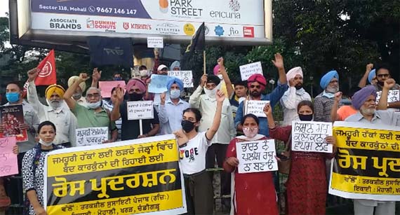 ਇਸ ਦੇ ਵਿਰੋਧ ਵਿੱਚ ਐਤਵਾਰ ਨੂੰ ਪੰਜਾਬ ਭਰ ਵਿੱਚ ਮਨਾਏ ਜਾ ਰਹੇ ‘ਵਿਰੋਧ ਪੰਦਰਵਾੜੇ’ ਤਹਿਤ ਤਰਕਸ਼ੀਲ ਸੁਸਾਇਟੀ ਪੰਜਾਬ ਦੇ ਸੱਦੇ ’ਤੇ ਮੁਹਾਲੀ ਖਰੜ, ਚੰਡੀਗੜ੍ਹ ਦੇ ਮੈਂਬਰਾਂ ਵੱਲੋਂ ਰੰਗਕਰਮੀਆਂ, ਲੇਖਕਾਂ, ਬੁੱਧੀਜੀਵੀਆਂ ਅਤੇ ਹੋਰ ਇਨਸਾਫ਼ ਪਸੰਦ ਕਾਰਕੁਨਾਂ ਦੇ ਸਹਿਯੋਗ ਨਾਲ ਇੱਥੋਂ ਦੇ ਫੇਜ਼-7 ਸਥਿਤ ਲਾਲ ਬੱਤੀ ਪੁਆਇੰਟ ’ਤੇ ਰੋਸ ਪ੍ਰਦਰਸ਼ਨ ਕੀਤਾ ਗਿਆ।