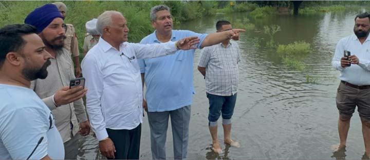 Share on Facebook Share on Twitter Share on Google+ Share on Pinterest Share on Linkedin Punjab Cancels Leaves for Officers/Staff in Flood Affected Areas Darshan Singh Sodhi Nabaz-e-Punjab, Pathankot/Gurdaspur, August 26: The Punjab Government has issued directions to local administration and concerned departments’ officials to maintain round-the-clock presence at the ground level to continue rescue and relief operations on a war footing in flood-affected areas. Simultaneously, all leaves for officers and staff has been cancelled. This was stated by Punjab Water Resources Minister Sh. Barinder Kumar Goyal and Food & Civil Supplies Minister Sh. Lal Chand Kataruchak during their visit to flood-affected areas today. The ministers conducted tours of Pathankot and Gurdaspur districts today. Notably, the current situation stemed from continuous rainfall over the past two to three days in Jammu & Kashmir and Himachal Pradesh, causing the Ranjit Sagar Dam to reach near maximum capacity. Water release from this overflowing dam has significantly elevated water levels in the Ravi River. Besides this, the Ujh and Jalalia rivers are experiencing unprecedented flow, submerging most villages in the Narot Jaimal Singh and Bamial blocks. The Cabinet Ministers conducted comprehensive ground assessments of these affected areas in Pathankot today. During the visit, Sh. Goyal stated that heavy rainfall has pushed dam water levels near capacity. He informed that the Ranjit Sagar Dam currently holds water at over 527 meters. Due to intense precipitation in upstream regions, approximately 1,10,000 cusecs of water was released from Ranjit Sagar Dam today, causing the Ravi River to flow at dangerous levels near the embankments of villages including Makhanpur, Pola, Taas and Bahadurpur. He said that seven family members remain trapped in flood waters in Village Taas of Pathankot, with rescue operations proceeding on a war-footing to ensure their safety. Community kitchens have been established in schools at Taragarh and Narot Jaimal Singh villages. The Cabinet Minister added that rescue centers have been set up across multiple locations in Pathankot district including Kiri Khurd, Kathlour, Taragarh, Narot Jaimal Singh, Kharkhra Thuthowal, Khojki Chak, Bamial, Nangal, Pathankot, Bani Lodhi and Ferozepur Kalan. The Cabinet Ministers stated that the government’s immediate priorities include protecting lives and property, minimizing damage and delivering relief supplies to affected populations. The minister said that helicopters are being deployed to evacuate people to safer locations. The Cabinet Ministers urged citizens to avoid believing false rumours and to stay away from riverbanks. The Ministers said that all the Cabinet Ministers and state machinery is in constant touch with Chief Minister S. Bhagwant Singh Mann, who is regularly monitoring relief operations. The Chief Minister has already announced appropriate compensation for any flood-related damages across the state. Currently, the government is conducting rescue and relief operations on a war-footing, with special girdawari to follow for compensation distribution. They assured farmers that the Punjab Government is committed to providing compensation for crop losses due to flood damage. Following Pathankot, Water Resources Minister Sh. Barinder Kumar Goyal visited villages along the Ravi River in Gurdaspur district. Traveling by tractor, he reached Village Jhabkara, located around 2.5 kilometers from Village Bahmani, where he engaged with local residents and distributed rations. After assessing ongoing relief and rescue operations by the district administration, he reiterated that no effort would be spared in protecting lives and property. While speaking with flood-affected village residents, Cabinet Minister Sh. Barinder Kumar Goyal said that continuous rainfall in plains and mountainous regions has filled all dams to capacity. He said that water from Ranjit Sagar Dam and the Ujh River has damaged several sections of the Ravi River’s Dhussi Bundhs. He stated that around 15 villages along the Ravi River in Dinanagar tehsil of Gurdaspur district have been affected by flooding, where district administration teams, along with BSF, Indian Army, SDRF and NDRF units, have been conducting rescue operations since morning. He said that these teams successfully evacuated approximately 70 individuals from Village Jagochak Tanda. He confirmed that the government maintains communication with residents of villages across the Ravi River near Makaura Pattan and will provide all possible assistance. He said that the district administration has established relief camps for flood-affected village residents at Village Marara, Bahmani, Government Senior Secondary School Gahlari and Gurdwara Sri Tahli Sahib, providing accommodation and meals for displaced families. He cautioned that additional water continues flowing from mountainous regions, potentially raising water levels further. He advised riverside populations to remain vigilant, follow district administration guidelines and maintain special precautions.
