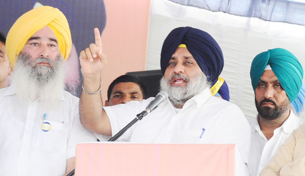 Share on Facebook Share on Twitter Share on Google+ Share on Pinterest Share on Linkedin Punjab Congress Government failed in every sector: Sukhbir Badal Nabaz-e-Punjab Bureau, Tarn Taran, September 10: During the Conference on the Holy function “Gurta Gaddi Diwas of Sri Guru Angad Dev Sahib Ji” at Khadoor Sahib, SAD President Sukhbir Singh Badal clearly explained the working of Punjab Congress government which is at the lowest level in these six months of Punjab Congress government. In his speech he withdrew the attention of Punjab people towards the manifesto and promises made by Punjab Congress party before the came in rule while comparing the progress and neglected works by the Punjab Congress government that till today farmers loans neither waived of nor written of in this way cheating of Punjab Congress government is clearly proved secondly the welfare schemes which were launched by SAD – BJP are being closed by Punjab Congress government which is a sign of unsuccessful government. He added that the commitment of one member job in each family and shagun scheme amount 51000/- to economically, SC, BC, Girls at the time marriage is totally failed and Congress government is trying to get the shelter of private companies proving itself job providers to the youth of Punjab which is fraud and mockery to the people. He tried to bring the attention of Punjab people towards the “SYL water issue on which Congress government is playing double-cross roll which is bad for the ruling party. He focused on chief minister captain Amarinder Singh that he has no programme for development, no programme for welfare of Punjab people, no programme for SYL water issue in short CM. Captain Amarinder Singh is totally failed and he will sink the ship of Punjab and his associates will also be buried on sea due to his failure. He further express the real facts about finance minister Manpreet Singh Badal and tourism minister Navjot Singh Sidhu describing their qualities that Sidhu is a patient of “Badal Forbia” and Manpreet Badal is advising the punjab people not to take meal according to their requirement and these farmers can be save as his view which is baseless and without any benefit. During the Conference while addressing while addressing the huge gathering there MLA Bikram Singh Majithia also invited the attention of Punjab people towards Congress MLAs are totally failed in their constituencies and they are designation of halka – incharge of other constituencies too e.g. Congess sitting MLA, Ramanjit Singh Sikki as he has been thrown away by voters of Khadoor Sahib constituency and he is absconding from Khadoor Sahib constituency. He further reminded the once again here threatning of Congress MLA, Ramanjit Singh Sikki that how he dared to threaten public servant (DSP) and SAD workers to “Lamme Pauna” it means to lay on the ground and insulted by using filthy language. In his such like behaviour he proved himself without caliber and quality as it was openly challenged government official and preventing him from his duty in an impartial manner. He also added that Sikki resigned in previous SAD government over the incident of dishonoring of Holy Guru Granth Sahib Ji incident of beadbi but during the short span of Congress government such like several incidents of desecration have taken place but these incidents now doesn’t effect sikki. Former SAD MLA Ravinder Singh Brahmpura while addressing the party workers he clearly assure party workers that they will get full justice honour and regard in every field and in case of any injustice or pressure is put by Congress workers or leaders they will not be spared and we should maintain unity in our party to uplift the SAD and give good rule to Punjab people. He further added that SAD had been serving the people of Punjab and present serving the people and in future, we shall be serving the people of Punjab it matter whether the SAD in government or any other party is in government and it is well known to the Punjab people the SAD BJP government in the past served the people under dynamic leadership of former CM Prakash Singh Badal and former deputy chief minister Sukhbir Singh Badal and this is only one party which can make Punjab to the highest peak with cooperation and help of punjab people. Sukhbir Singh Badal appreciated the labour and hard work which is done by Brahmpura family and he compared S. Ranjit Singh Brahmpura with his father in the conference he appreciated him for more and more efforts for the punjab people and remain unity for development of punjab state. In the end MP Ranjit Singh Brahmpura thanked SAD president Sukhbir Singh Badal, MLA Bikram Singh Majithia and other SAD leaders and workers who made conference successful and hoped to see this conference, Punjab Congress government mend its ways for the welfare and benefit of Punjab people and other SAD leaders a also spinned and grilled the fake, frivolous and revengeful activities of Congress government against SAD workers. On this occasion following were present including former MLAs, Gulzar Singh Ranike, Virsa Singh Valtoha, Malkit Singh AR, Manjit Singh Manna, Veer Singh Lopoke, Amarpal Singh Bony, Gurpartap Singh Tikka and SGPC members, Balwinder Singh vein pein, Mukhwinder Singh khaper kheri, Amarjit Singh Bhlaipur, Alwinder Singh Pakhoke, Dalbeer Singh Jahageer, Prof. Sarchand Singh, Damanjeet Singh and others.