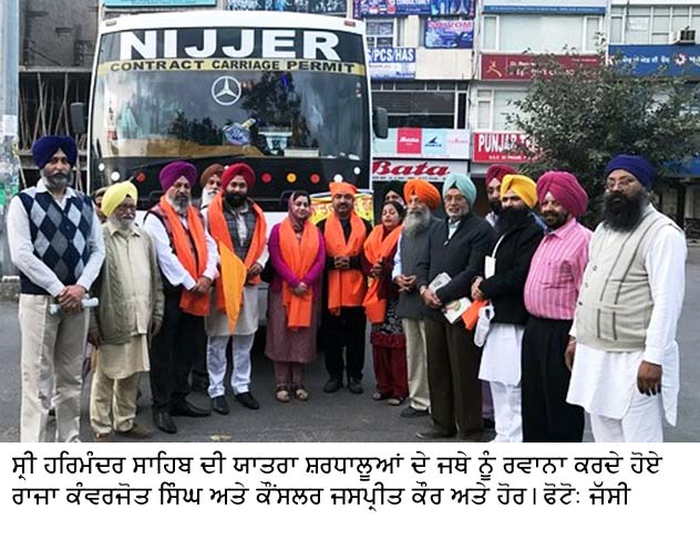 Share on Facebook Share on Twitter Share on Google+ Share on Pinterest Share on Linkedin ਰਾਜਾ ਮੁਹਾਲੀ ਵੱਲੋਂ ਸ੍ਰੀ ਹਰਿਮੰਦਰ ਸਾਹਿਬ ਦੇ ਦਰਸ਼ਨਾਂ ਲਈ ਜਥਾ ਰਵਾਨਾ ਨਬਜ਼-ਏ-ਪੰਜਾਬ ਬਿਊਰੋ, ਮੁਹਾਲੀ, 17 ਮਾਰਚ: ਮੁਹਾਲੀ ਫੇਜ਼-2 ਤੋਂ ਅੱਜ ਇੱਕ ਜਥਾ ਮਾਸਟਰ ਰਜਿੰਦਰ ਕੁਮਾਰ ਗੁਰੂ ਜੀ ਅਤੇ ਅਕਾਲੀ ਦਲ ਦੀ ਕੌਂਸਲਰ ਜਸਪ੍ਰੀਤ ਕੌਰ ਮੁਹਾਲੀ ਦੇ ਉਦਮ ਅਤੇ ਯਤਨਾ ਸਦਕਾ ਹੇਠ ਜਥਾ ਸ੍ਰੀ ਦਰਬਾਰ ਸਾਹਿਬ ਦੇ ਦਰਸ਼ਨਾਂ ਲਈ ਰਵਾਨਾ ਹੋਇਆ। ਇਸ ਜਥੇ ਨੂੰ ਯੂਥ ਅਕਾਲੀ ਦਲ ਦੇ ਕੌਮੀ ਮੀਤ ਪ੍ਰਧਾਨ ਰਾਜਾ ਕੰਵਰਜੋਤ ਸਿੰਘ ਮੁਹਾਲੀ ਨੇ ਕੇਸਰੀ ਝੰਡੀ ਦੇ ਕੇ ਰਵਾਨਾ ਕੀਤਾ। ਰਾਜਾ ਮੁਹਾਲੀ ਨੇ ਪ੍ਰਬੰਧਕਾਂ ਨੂੰ ਇਸ ਕਾਰਜ ਦੀ ਵਧਾਈ ਦਿੰਦਿਆਂ ਕਿਹਾ ਕਿ ਇਹ ਬਹੁਤ ਹੀ ਸ਼ਲਾਘਾਯੋਗ ਕਦਮ ਹੈ। ਇਹ ਜਥਾ ਗੁਰਦੁਆਰਾ ਸਾਹਿਬ ਫੇਜ਼-2 ਦੇ ਪ੍ਰਧਾਨ ਜੋਗਿੰਦਰ ਸਿੰਘ ਸੌਂਧੀ ਦੀ ਅਗਵਾਈ ਹੇਠ ਸ੍ਰੀ ਹਰਿਮੰਦਰ ਸਾਹਿਬ ਦੇ ਦਰਸ਼ਨਾਂ ਲਈ ਰਵਾਨਾ ਹੋਇਆ ਜਿਸ ਵਿੱਚ ਬਜ਼ੁਰਗ, ਬੱਚੇ ਅਤੇ ਚਾਹਵਾਨ ਯਾਤਰੀਆਂ ਨੂੰ ਮੁਫਤ ਬੱਸ ਯਾਤਰਾ ਕਰਵਾਈ ਗਈ। ਇਹ ਜਥਾ ਸਵੇਰੇ 6 ਵਜੇ ਮੁਹਾਲੀ ਤੋੱ ਚੱਲ ਕੇ ਰਸਤੇ ਵਿੱਚ ਵੱਖ-ਵੱਖ ਗੁਰਧਾਮਾਂ ਦੇ ਦਰਸ਼ਨ ਕਰਦਾ ਹੋਇਆ ਦੇਰ ਰਾਤ ਵਾਪਿਸ ਮੁਹਾਲੀ ਆ ਜਾਂਦਾ ਹੈ। ਬੱਸ ਵਿੱਚ ਲੰਗਰ ਪਾਣੀ ਅਤੇ ਹਰ ਸਹੂਲਤ ਮੁਹੱਈਆ ਕਰਵਾਈ ਜਾਂਦੀ ਹੈ। ਇਸ ਜਥੇ ਵਿੱਚ ਹੋਰਨਾਂ ਤੋੱ ਇਲਾਵਾ ਸਤਨਾਮ ਸਿੰਘ ਲਾਂਡਰਾਂ, ਮਾਸਟਰ ਰਜਿੰਦਰ ਕੁਮਾਰ ਗੁਰੂ ਜੀ, ਭੱਟੀ ਭੜੀ ਵਾਲਾ ਪੰਜਾਬੀ ਗੀਤਕਾਰ, ਪ੍ਰਧਾਨ ਜੋਗਿੰਦਰ ਸਿੰਘ ਸੌਂਧੀ, ਸਰਬਜੀਤ ਸਿੰਘ ਬਾਜਵਾ, ਅਮਰਜੀਤ ਸਿੰਘ, ਹਰਦੀਪ ਸਿੰਘ, ਅਵਤਾਰ ਸਿੰਘ, ਮਨਜੀਤ ਸਿੰਘ ਭੱਲਾ, ਸਾਧੂ ਸਿੰਘ, ਪਰਮਜੀਤ ਸਿੰਘ ਬੌਬੀ, ਸੰਦੀਪ ਕੁਮਾਰ ਲਜੀਜ ਰਸੋਈ, ਐਡਵੋਕੇਟ ਰਤਨ ਸਿੰਘ, ਬੀਬੀ ਜਸਵੀਰ ਕੌਰ, ਬੀਬੀ ਸੰਦੀਪ ਕੌਰ, ਬੀਬੀ ਬਲਵੰਤ ਕੌਰ ਆਦਿ ਹਾਜ਼ਰ ਸਨ।