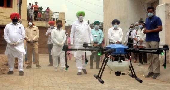 Share on Facebook Share on Twitter Share on Google+ Share on Pinterest Share on Linkedin Health Minister Balbir Singh Sidhu launches Sanitization drive via drones from Jagatpura in Mohali Densely populated, congested areas, slums’ Sanitization, a top priority Nabaz-e-Punjab Bureau, Chandigarh/SAS Nagar, April 26: In a novel initiative, the Health Minister, Punjab, Mr. Balbir Singh Sidhu today launched Sanitization drive via drones from village Jagatpura in Mohali in the presence of the Deputy Commissioner Mr. Girish Dayalan. The drive would soon be carried out in the entire State. After Jagatpura, the drive was further carried out in Green Enclave in Badmajra, Jujhar Nagar, and Balongi. The minister further divulged that the State Government is making all out efforts are being made to combat the corona virus disease and the drones can play an important part in it. He also added that the Sanitization of the densely populated, congested areas especially the slums is a top priority with the Government. He also added that the Sanitization through drones would serve the twin purpose of keeping corona virus disease at bay while also protecting against the dengue. The Sanitization through drones is already being done in Tamilnadu, Andhra Pradesh, Chhattisgarh, Chandigarh and in Varanasi (UP). The minister further elaborated that the services of drone have been provided by the Garuda Aerospace. Coming to the technical aspects of the drone, the minister said that once material is loaded, it has 10 litres capacity of Sanitization and can fly at 15 metres height. It can cover 20 ft. diameter in one go. It can disinfect 6 acres in 10 minutes. The minister assured that Punjab is fighting corona virus very effectively but we can’t let our guard down and we would fight till we win the war against corona virus.