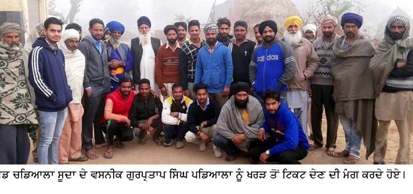 ਸੀਨੀਅਰ ਯੂਥ ਅਕਾਲੀ ਆਗੂ ਗੁਰਪ੍ਰਤਾਪ ਸਿੰਘ ਪਡਿਆਲਾ ਨੂੰ ਖਰੜ ਹਲਕੇ ਤੋਂ ਅਕਾਲੀ ਦਲ ਦੀ ਟਿਕਟ ਦੇਣ ਦੀ ਮੰਗ ਨੇ ਨਵੀਂ ਚਰਚਾ ਛੇੜ ਦਿੱਤੀ ਹੈ। ਇੱਥੋਂ ਦੇ ਨੇੜਲੇ ਪਿੰਡ ਚਡਿਆਲਾ ਸੂਦਾ ਦੇ ਵਸਨੀਕਾਂ ਨੇ ਸ਼੍ਰੋਮਣੀ ਅਕਾਲੀ ਦਲ ਦੇ ਪ੍ਰਧਾਨ ਤੇ ਉਪ ਮੁੱਖ ਮੰਤਰੀ ਸੁਖਬੀਰ ਸਿੰਘ ਬਾਦਲ ਮੰਗ ਕੀਤੀ ਕਿ ਵਿਧਾਨ ਸਭਾ ਹਲਕਾ ਖਰੜ ਤੋਂ ਨੌਜਵਾਨ ਆਗੂ ਗੁਰਪ੍ਰਤਾਪ ਸਿੰਘ ਪਡਿਆਲਾ ਨੂੰ ਟਿਕਟ ਦਿੱਤੀ ਜਾਵੇ।