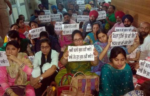 Share on Facebook Share on Twitter Share on Google+ Share on Pinterest Share on Linkedin ਐੱਸਐੱਸਏ/ਰਮਸਾ ਅਧਿਆਪਕਾਂ ਨੂੰ ਪਿਛਲੇ 5 ਮਹੀਨੇ ਤੋਂ ਨਹੀਂ ਮਿਲੀ ਤਨਖ਼ਾਹ ਐੱਸਐੱਸਏ/ਰਮਸਾ ਅਧਿਆਪਕ ਯੂਨੀਅਨ ਵੱਲੋਂ ਡੀਜੀਐਸਈ ਦਫ਼ਤਰ ਦਾ ਘਿਰਾਓ, ਨਾਅਰੇਬਾਜ਼ੀ ਕੀਤੀ ਨਬਜ਼-ਏ-ਪੰਜਾਬ ਬਿਊਰੋ, ਮੁਹਾਲੀ, 26 ਅਪਰੈਲ: ਐੱਸਐੱਸਏ/ਰਮਸਾ ਅਧਿਆਪਕ ਯੂਨੀਅਨ ਪੰਜਾਬ ਵੱਲੋਂ ਅੱਜ ਸਿੱਖਿਆ ਭਵਨ ਵਿੱਚ ਸਥਿਤ ਡੀਜੀਐਸਈ ਦਫ਼ਤਰ ਦਾ ਘਿਰਾਓ ਕਰਕੇ ਸਿੱਖਿਆ ਅਧਿਕਾਰੀਆਂ ਅਤੇ ਹੁਕਮਰਾਨਾਂ ਦੇ ਖ਼ਿਲਾਫ਼ ਨਾਅਰੇਬਾਜ਼ੀ ਕੀਤੀ। ਅਧਿਆਪਕਾਂ ਨੇ ਇਹ ਧਰਨਾ ਪਿਛਲੇ ਪੰਜ ਮਹੀਨਿਆਂ ਤੋਂ ਤਨਖ਼ਾਹਾਂ ਨਾ ਮਿਲਣ ਦੇ ਰੋਸ ਵਜੋਂ ਦਿੱਤਾ ਗਿਆ। ਯੂਨੀਅਨ ਦੇ ਸੂਬਾਈ ਸਕੱਤਰ ਹਰਜੀਤ ਸਿੰਘ ਜਿੰਦਾ, ਮੀਤ ਪ੍ਰਧਾਨ ਰਾਜਵੀਰ ਸਿੰਘ ਸਮਰਾਲਾ ਨੇ ਦੱਸਿਆ ਕਿ ਐੱਸਐੱਸਏ/ਰਮਸਾ ਅਤੇ ਆਈਈਆਰਟੀ ਅਧੀਨ ਪੰਜਾਬ ਦੇ ਸਰਕਾਰੀ ਸਕੂਲਾਂ ਵਿੱਚ ਪਿਛਲੇ 9 ਸਾਲਾਂ ਤੋਂ ਆਪਣੀਆਂ ਸੇਵਾਵਾਂ ਨਿਭਾ ਰਹੇ 14 ਹਜ਼ਾਰ ਅਧਿਆਪਕ ਤਨਖ਼ਾਹਾਂ ਨਾ ਮਿਲਣ ਕਾਰਨ ਆਰਥਿਕ ਅਤੇ ਮਾਨਸਿਕ ਪੀੜਾਂ ਝੱਲ ਰਹੇ ਹਨ। ਤਨਖ਼ਾਹਾਂ ਨਾ ਮਿਲਣ ਕਾਰਨ ਜਿੱਥੇ ਉਨ੍ਹਾਂ ਦੇ ਬੱਚਿਆਂ ਦੇ ਨਵੀਆਂ ਜਮਾਤਾਂ ਵਿੱਚ ਦਾਖ਼ਲ ਪ੍ਰਭਾਵਿਤ ਹੋ ਰਹੇ ਹਨ। ਉੱਥੇ ਹੁਣ ਕਰਿਆਨਾ ਸਟੋਰ ਵਾਲਿਆਂ ਨੇ ਉਧਾਰ ਰਾਸ਼ਨ ਦੇਣਾ ਵੀ ਬੰਦ ਕਰ ਦਿੱਤਾ ਹੈ। ਅਧਿਆਪਕ ਆਗੂਆਂ ਨੇ ਦੱਸਿਆ ਕਿ ਇੱਕ ਪਾਸੇ ਕੈਪਟਨ ਸਰਕਾਰ ਨੇ ਅਧਿਆਪਕਾਂ ਨੂੰ ਰੈਗੂਲਰ ਨਾ ਕਰਕੇ ਆਪਣੇ ਚੋਣ ਵਾਅਦੇ ਤੋਂ ਭੱਜ ਰਹੀ ਹੈ, ਉੱਥੇ ਹੁਣ ਅਧਿਆਪਕਾਂ ਨੂੰ ਮਹੀਨਿਆਂ ਬੱਧੀ ਤਨਖ਼ਾਹਾਂ ਨਾ ਮਿਲਣ ਕਾਰਨ ਕਿਸਾਨਾਂ ਵਾਂਗ ਹੁਣ ਅਧਿਆਪਕਾਂ ਨੂੰ ਵੀ ਖ਼ੁਦਕੁਸ਼ੀਆਂ ਲਈ ਮਜਬੂਰ ਕੀਤਾ ਜਾ ਰਿਹਾ ਹੈ। ਆਗੂਆਂ ਨੇ ਦੱਸਿਆ ਕਿ ਬੀਤੀ 6 ਅਪਰੈਲ ਨੂੰ ਅਧਿਆਪਕਾਂ ਦਾ ਵਫ਼ਦ ਡੀਜੀਐਸਈ ਪ੍ਰਸ਼ਾਂਤ ਗੋਇਲ ਨੂੰ ਮਿਲਿਆ ਸੀ ਅਤੇ ਮੰਗ ਪੱਤਰ ਸੌਂਪਿਆ ਗਿਆ ਸੀ ਪੰ੍ਰਤੂ ਹੁਣ ਤੱਕ ਇਨ੍ਹਾਂ ਅਧਿਆਪਕਾਂ ਨੂੰ ਤਨਖ਼ਾਹ ਨਹੀਂ ਮਿਲੀ। ਜਿਸ ਕਾਰਨ ਅਧਿਆਪਕਾਂ ਨੂੰ ਡੀਜੀਐਸਈ ਦਫ਼ਤਰ ਦਾ ਘਿਰਾਓ ਕਰਨ ਲਈ ਮਜਬੂਰ ਹੋਣਾ ਪਿਆ ਹੈ। ਉਧਰ, ਮੁਹਾਲੀ ਦੇ ਐਸਡੀਐਮ ਡਾ. ਆਰ.ਪੀ ਸਿੰਘ ਨੇ ਯੂਨੀਅਨ ਆਗੂਆਂ ਦੀ ਸਿੱਖਿਆ ਸਕੱਤਰ ਕ੍ਰਿਸ਼ਨ ਕੁਮਾਰ ਨਾਲ ਮੀਟਿੰਗ ਕਰਵਾਈ ਗਈ। ਉਨ੍ਹਾਂ ਇਸੇ ਹਫ਼ਤੇ ਚਾਰ ਮਹੀਨੇ ਦੀ ਤਨਖ਼ਾਹ ਇਕੱਠੀ ਰਿਲੀਜ਼ ਕਰਨ ਦਾ ਭਰੋਸਾ ਦਿੱਤਾ। ਇਸ ਮਗਰੋਂ ਅਧਿਆਪਕਾਂ ਨੇ ਡੀਜੀਐਸਈ ਦਫ਼ਤਰ ਦੇ ਮੂਹਰਿਓਂ ਧਰਨਾ ਚੁੱਕ ਲਿਆ ਅਤੇ ਸਿੱਖਿਆ ਭਵਨ ਦੇ ਗੇਟ ਬਾਹਰ ਧਰਨੇ ’ਤੇ ਬੈਠ ਗਏ। ਅਧਿਆਪਕ ਆਗੂਆਂ ਨੇ ਕਿਹਾ ਕਿ ਜਦੋਂ ਤੱਕ ਤਨਖ਼ਾਹ ਉਨ੍ਹਾਂ ਦੇ ਖਾਤਿਆਂ ਵਿੱਚ ਨਹੀਂ ਆ ਜਾਂਦੀ ਉਦੋਂ ਤੱਕ ਧਰਨਾ ਜਾਰੀ ਰਹੇਗਾ। ਖ਼ਬਰ ਲਿਖੇ ਜਾਣ ਤੱਕ ਦੇਰ ਸ਼ਾਮ ਧਰਨਾ ਜਾਰੀ ਸੀ। ਇਸ ਮੌਕੇ ਜੀਟੀਯੂ ਦੇ ਸੂਬਾ ਜਨਰਲ ਸਕੱਤਰ ਕੁਲਦੀਪ ਸਿੰਘ ਦੌੜਕਾ, ਜੀਐੱਸਟੀਯੂ ਤੋਂ ਜਸਵਿੰਦਰ ਸਿੰਘ ਢਿੱਲੋਂ, ਅਮਨਦੀਪ ਦੱਧਾਹੂਰ, ਸਤਨਾਮ ਫਤਹਿਗੜ੍ਹ ਸਾਹਿਬ, ਸਰਵਣ ਸਿੰਘ ਮਾਣੂਕੇ, ਸੁਖਵਿੰਦਰ ਸਿੰਘ ਰੂਪਨਗਰ, ਭੁਪਿੰਦਰ ਸਿੰਘ ਦੁੱਗਲ, ਮਨਜੀਤ ਸਿੰਘ ਬਠਿੰਡਾ, ਗਗਨਦੀਪ ਧੂਰੀ, ਬਲਜੀਤ ਸਿੰਘ ਮੁਹਾਲੀ, ਅਮਰਿੰਦਰ ਸਿੰਘ ਫਤਹਿਗੜ੍ਹ ਸਾਹਿਬ, ਸੁਭਾਸ਼ ਚੰਦਰ ਗੁਰਦਾਸਪੁਰ, ਨਵਨੀਤ ਕੌਰ, ਸੋਨਾਲੀ ਸ਼ਰਮਾ ਜਲੰਧਰ, ਦਲਜਿੰਦਰ ਕੌਰ, ਰੋਹਿਤ ਸ਼ਰਮਾ ਕਪੂਰਥਲਾ, ਅਪਰ ਅਪਾਰ ਸਿੰਘ ਬਠਿੰਡਾ, ਗਗਨ ਫਰੀਦਕੋਟ, ਸੁਨੀਤਾ ਰਾਣੀ ਵੀ ਹਾਜ਼ਰ ਸਨ।