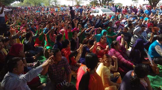 Share on Facebook Share on Twitter Share on Google+ Share on Pinterest Share on Linkedin ਸਿੱਖਿਆ ਵਿਭਾਗ ਦੀਆਂ ਸਮੂਹ ਸੁਸਾਇਟੀਆਂ ਅਧੀਨ ਕੰਮ ਕਰਦੀਆਂ ਜਥੇਬੰਦੀਆਂ ਵੱਲੋਂ ਸਿੱਖਿਆ ਭਵਨ ਦਾ ਘਿਰਾਓ ਪ੍ਰਸ਼ਾਸਨ ਵੱਲੋਂ ਗੱਲ ਨਾ ਸੁਣਨ ’ਤੇ ਮੁਲਾਜ਼ਮਾਂ ਵੱਲੋਂ 1 ਕਿਲੋਮੀਟਰ ਲੰਮਾ ਰੋਸ ਮਾਰਚ ਕਰਨ ਉਪਰੰਤ ਚੱਕਾ ਜਾਮ ਨਬਜ਼-ਏ-ਪੰਜਾਬ ਬਿਊਰੋ, ਮੁਹਾਲੀ, 6 ਮਾਰਚ: ਸਿੱਖਿਆ ਮੰਤਰੀ ਅਤੇ ਸਿੱਖਿਆ ਸਕੱਤਰ ਵੱਲੋਂ ਵੱਖ-ਵੱਖ ਜਥੇਬੰਦੀਆਂ ਨਾਲ ਹੋਈਆਂ ਮੀਟਿੰਗਾਂ ਵਿੱਚ ਹੋਈ ਗੱਲਬਾਤ ਅਨੁਸਾਰ ਡੀਜੀਐੱਸਈ ਅਧੀਨ ਕੰਮ ਕਰ ਰਹੀਆਂ ਸਮੂਹ ਸੁਸਾਇਟੀਆਂ ਦੇ ਮੁਲਾਜ਼ਮਾਂ ਨੂੰ ਬੇਸਿੱਕ ਤਨਖ਼ਾਹ ਉੱਤੇ ਵਿਭਾਗ ਵਿੱਚ ਲੈਣ ਸੰਬੰਧੀ ਛਪੀ ਖ਼ਬਰ ਬਾਰੇ ਆਪਣੀ ਪ੍ਰਤੀਕਿਰਿਆ ਦਿੰਦਿਆਂ ਅੱਜ ਸਮੂਹ ਸੁਸਾਇਟੀ ਮੁਲਾਜ਼ਮਾਂ ਦੀਆਂ ਜਥੇਬੰਦੀਆਂ ਵੱਲੋਂ ਮੁਹਾਲੀ ਵਿੱਚ ਸਿੱਖਿਆ ਭਵਨ ਦਾ ਘਿਰਾਓ ਕੀਤਾ ਅਤੇ ਸੂਬਾ ਪੱਧਰੀ ਰੋਸ ਰੈਲੀ ਅਤੇ ਮੁਜ਼ਾਹਰਾ ਕੀਤਾ ਗਈ। ਇਸ ਰੋਸ ਰੈਲੀ ਵਿੱਚ ਕੰਪਿਊਟਰ ਅਧਿਆਪਕ ਯੂਨੀਅਨ ਪੰਜਾਬ, ਐੱਸ.ਐੱਸ.ਏ./ਰਮਸਾ ਅਧਿਆਪਕ ਯੂਨੀਅਨ ਪੰਜਾਬ,ਮਾਡਲ ਅਤੇ ਆਦਰਸ਼ ਕਰਮਚਾਰੀ ਯੂਨੀਅਨ ਪੰਜਾਬ,ਐੱਸ.ਐੱਸ.ਏ. ਦਫਤਰੀ ਕਰਮਚਾਰੀ ਯੂਨੀਅਨ ਪੰਜਾਬ,ਮਿਡ ਡੇ ਮੀਲ ਦਫਤਰੀ ਕਰਮਚਾਰੀ ਯੂਨੀਅਨ ਪੰਜਾਬ,ਆਈ.ਈ.ਆਰ.ਟੀ. ਯੂਨੀਅਨ ਪੰਜਾਬ,ਗੌਰਮਿੰਟ ਆਦਰਸ਼ ਅਤੇ ਮਾਡਲ ਸਕੂਲ ਕਰਮਚਾਰੀ ਯੂਨੀਅਨ ਪੰਜਾਬ ਅਤੇ ਐਕਸ਼ਨ ਕਮੇਟੀ ਐੱਸ.ਐੱਸ.ਏ./ਰਮਸਾ ਅਧਿਆਪਕ ਯੂਨੀਅਨ ਪੰਜਾਬ ਦੇ ਵੱਡੀ ਗਿਣਤੀ ਵਿੱਚ ਮੁਲਾਜ਼ਮਾਂ ਵੱਲੋਂ ਸ਼ਮੂਲੀਅਤ ਕੀਤੀ ਗਈ। ਇਸ ਮੌਕੇ ਸਮੂਹ ਹਾਜ਼ਰ ਜੱਥੇਬੰਦੀਆਂ ਦੇ ਆਗੂਆਂ ਨੇ ਕਿਹਾ ਕਿ ਸਥਾਨਕ ਸਰਕਾਰਾਂ ਬਾਰੇ ਮੰਤਰੀ ਨਵਜੋਤ ਸਿੰਘ ਸਿੱਧੂ ਦੀ ਅਗਵਾਈ ਵਿੱਚ ਬਣੀ ਸਬ-ਕਮੇਟੀ ਵੱਲੋਂ 12-12 ਸਾਲਾਂ ਤੋਂ ਕੰਮ ਕਰਦੇ ਮੁਲਾਜ਼ਮਾਂ ਨੂੰ ਮੁੱਢਲੀ ਤਨਖ਼ਾਹ ਦੇਣ ਦੀ ਸਿਫਾਰਸ਼ ਕਰਨਾ,ਨਾ ਸਿਰਫ ਚੋਣਾਂ ਸਮੇਂ ਕੀਤੇ ਵਾਅਦਿਆਂ ਤੋਂ ਭੱਜਣਾ ਹੈ ਸਗੋਂ ਨੈਤਿਕਤਾ, ਸਥਾਪਿਤ ਨਿਯਮਾਂ ਅਤੇ ਸੰਵਿਧਾਨਕ ਵਿਵਸਥਾਵਾਂ ਦੀਆਂ ਧੱਜੀਆਂ ਉਡਾਉਣ ਦੇ ਰਿਕਾਰਡ ਤੋੜਨਾ ਹੈ। ਉਨ੍ਹਾਂ ਕਿਹਾ ਕਿ ਅਜਿਹਾ ਕਰ ਕੇ ਮੌਜੂਦਾ ਸਰਕਾਰ 12-12 ਸਾਲਾਂ ਤੋਂ ਮਾੜੀਆਂ ਸਰਵਿਸ ਕੰਡੀਸ਼ਨਾਂ ਅਤੇ ਘੱਟ ਤਨਖਾਹਾਂ ਉੱਤੇ ਕੰਮ ਕਰਨ ਦੇ ਬਾਵਜੂਦ ਵੀ ਮੁਲਾਜ਼ਮਾਂ ਨੂੰ ਬਣਦਾ ਹੱਕ ਦੇਣ ਦੀ ਬਜਾਇ ਸ਼ੋਸ਼ਣ ਅਤੇ ਧੱਕੇ ਦੀ ਨੀਤੀ ਨੂੰ ਹੋਰ ਅੱਗੇ ਤੋਰਨ ਲਈ ਬਜਿੱਦ ਹੋਈ ਬੈਠੀ ਹੈ। ਇਸ ਮੌਕੇ ਸੂਬਾ ਆਗੂ ਗੁਰਵਿੰਦਰ ਸਿੰਘ ਤਰਨਤਾਰਨ ਨੇ ਕਿਹਾ ਕਿ ਇੱਕ ਪਾਸੇ ਸਿੱਖਿਆ ਅਧਿਕਾਰ ਕਾਨੂੰਨ ਜਿਹਾ ਮੌਲਿਕ ਅਧਿਕਾਰ ਹੈ ਜੋ ਸਭ ਕਿਸਮ ਦੇ ਅਧਿਆਪਕਾਂ ਨੂੰ ਰੈਗੂਲਰ ਅਤੇ ਇੱਕਸਮਾਨ ਤਨਖਾਹ, ਭੱਤੇ, ਮੈਡੀਕਲ ਸਹੂਲਤਾਂ ਅਤੇ ਬਾਕੀ ਸਹੂਲਤਾਂ ਦੇਣ ਦੀ ਵਿਵਸਥਾ ਕਰਦਾ ਹੈ ਅਤੇ ਸੁਪਰੀਮ ਕੋਰਟ ਦੁਆਰਾ ਸਾਰੇ ਕਰਮਚਾਰੀਆਂ, ਸਮੇਤ ਠੇਕਾ ਕਰਮਚਾਰੀਆਂ, ਨੂੰ ਇੱਕਸਮਾਨ ਤਨਖਾਹ ਦੇਣ ਦਾ ਫੈਸਲਾ ਸੁਣਾਇਆ ਗਿਆ ਹੈ, ਦੂਜੇ ਪਾਸੇ ਪੰਜਾਬ ਦੀ ਕੈਪਟਨ ਸਰਕਾਰ ਭਾਰਤੀ ਸੰਵਿਧਾਨ ਅਤੇ ਮਾਨਯੋਗ ਸੁਪਰੀਮ ਕੋਰਟ ਦੇ ਫੈਸਲੇ ਨੂੰ ਲਾਗੂ ਕਰਨ ਦੇ ਉਲਟ 12-12 ਸਾਲਾਂ ਤੋਂ ਪੂਰੀ ਤਨਦੇਹੀ ਨਾਲ ਆਪਣੀਆਂ ਸੇਵਾਵਾਂ ਨਿਭਾ ਰਹੇ ਮੁਲਾਜ਼ਮਾਂ ਨੂੰ ਮੁੱਢਲੀ ਤਨਖਾਹ ਦੇਣ ਜਿਹੇ ਫੈਸਲੇ ਕਰ ਕੇ ਇਹਨਾਂ ਵਿਵਸਥਾਵਾਂ ਦਾ ਮੂੰਹ ਚਿੜ੍ਹਾ ਰਹੀ ਹੈ। ਰੈਗਲੂਰ ਕੰਪਿਊਟਰ ਅਧਿਆਪਕਾਂ ਨੂੰ ਸਿੱਖਿਆ ਵਿਭਾਗ ਵਿੱਚ ਸ਼ਿਫਟ ਕਰਨ ਤੱਕ ਸੰਘਰਸ਼ ਜਾਰੀ ਰੱਖਿਆ ਜਾਵੇਗਾ। ਉਹਨਾਂ ਇਹ ਵੀ ਦੱਸਿਆ ਕਿ ਬਾਕੀ ਰਾਜਾਂ ਅਤੇ ਕੇਂਦਰੀ ਸ਼ਾਸ਼ਤ ਪ੍ਰਦੇਸ਼ਾਂ ਵਿੱਚ ਕੇਂਦਰੀ ਸਕੀਮਾਂ ਤਹਿਤ ਸਿੱਖਿਆ ਵਿਭਾਗ ਵਿੱਚ ਭਰਤੀ ਕੀਤੇ ਸਾਰੇ 