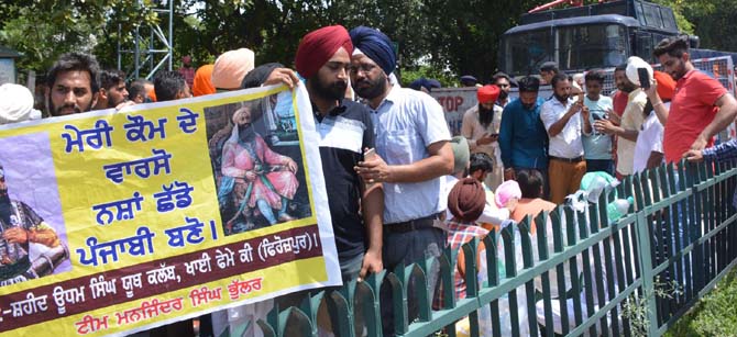 Share on Facebook Share on Twitter Share on Google+ Share on Pinterest Share on Linkedin ਮੁੱਖ ਮੰਤਰੀ ਨੂੰ ਮਿਲਣ ਜਾ ਰਹੇ ਸ਼ਹੀਦ ਊਧਮ ਸਿੰਘ ਯੂਥ ਕਲੱਬ ਦੇ ਮੈਂਬਰਾਂ ਦਾ ਯੂਟੀ ਪੁਲੀਸ ਨੇ ਰਾਹ ਡੱਕਿਆ ਨਬਜ਼-ਏ-ਪੰਜਾਬ ਬਿਊਰੋ, ਮੁਹਾਲੀ, 7 ਜੁਲਾਈ: ਪੰਜਾਬ ਵਿੱਚ ਲਗਾਤਾਰ ਵੱਧ ਰਹੇ ਨਸ਼ਿਆਂ ਦੇ ਪ੍ਰਕੋਪ ਨੂੰ ਠੱਲ੍ਹਣ ਅਤੇ ਆਮ ਲੋਕਾਂ ਖਾਸ ਕਰਕੇ ਨੌਜਵਾਨ ਪੀੜ੍ਹੀ ਨੂੰ ਨਸ਼ਿਆਂ ਦੇ ਖ਼ਿਲਾਫ਼ ਲਾਮਬੰਦ ਕਰਨ ਲਈ ਪੰਜਾਬ ਵਿੱਚ ਚਿੱਟੇ ਦੇ ਖ਼ਿਲਾਫ਼ ਮਨਾਏ ਜਾ ਰਹੇ ਕਾਲਾ ਹਫ਼ਤਾ ‘ਮਰੋ ਜਾਂ ਵਿਰੋਧ ਕਰੋ’ ਮੁਹਿੰਮ ਦੇ ਤਹਿਤ ਨਸ਼ਿਆਂ ਖ਼ਿਲਾਫ਼ ਮੁੱਖ ਮੰਤਰੀ ਕੈਪਟਨ ਅਮਰਿੰਦਰ ਸਿੰਘ ਨੂੰ ਮਿਲਣ ਜਾ ਰਹੇ ਸ਼ਹੀਦ ਊਧਮ ਸਿੰਘ ਯੂਥ ਕਲੱਬ ਖਾਈ ਫੇਮੇ ਕੀ ਫਿਰੋਜ਼ਪੁਰ ਦੇ ਵੱਡੀ ਗਿਣਤੀ ਵਿੱਚ ਮੈਂਬਰਾਂ ਨੂੰ ਅੱਜ ਯੂਟੀ ਪੁਲੀਸ ਨੇ ਮੁਹਾਲੀ-ਚੰਡੀਗੜ੍ਹ ਦੀ ਸਾਂਝੀ ’ਤੇ ਅੱਗੇ ਵਧਣ ਤੋਂ ਰੋਕ ਲਿਆ। ਜਿਸ ਕਾਰਨ ਨੌਜਵਾਨਾਂ ’ਤੇ ਸੜਕ ’ਤੇ ਚੱਕਾ ਜਾਮ ਕਰਕੇ ਨਾਅਰੇਬਾਜ਼ੀ ਸ਼ੁਰੂ ਕਰ ਦਿੱਤੀ ਅਤੇ ਧਰਨਾ ’ਤੇ ਬੈਠ ਗਏ। ਇਸ ਰੋਸ ਪ੍ਰਦਰਸ਼ਨ ਦੀ ਅਗਵਾਈ ਪ੍ਰਧਾਨ ਮਨਜਿੰਦਰ ਸਿੰਘ ਭੁੱਲਰ, ਰੁਪਿੰਦਰ ਸਿੰਘ ਅਤੇ ਬੇਅੰਤ ਸਿੰਘ ਨੇ ਕੀਤੀ। ਇਹ ਨੌਜਵਾਨ ਬੀਤੀ 30 ਜੂਨ ਨੂੰ ਹੁਸੈਨੀਵਾਲਾ ਤੋਂ ਇਹ ਸੋਚ ਲੈ ਕੇ ਚਲੇ ਸੀ ਕਿ ਮੁੱਖ ਮੰਤਰੀ ਨੂੰ ਮਿਲ ਕੇ ਚੋਣਾਂ ਵਿੱਚ ਗੁਟਕਾ ਸਾਹਿਬ ਦੀ ਸਹੁੰ ਚੁੱਕ ਕੇ ਪੰਜਾਬ ’ਚੋਂ ਨਸ਼ਿਆਂ ਦਾ ਖ਼ਾਤਮਾ ਕਰਨ ਦਾ ਕੀਤਾ ਵਾਅਦਾ ਚੇਤੇ ਕਰਵਾਇਆ ਜਾਵੇ। ਇਨ੍ਹਾਂ ਨੌਜਵਾਨਾਂ ਨੇ ਲੰਘੀ ਰਾਤ ਪਾਮ ਵਿਲੇਜ਼ ਵਿੱਚ ਬਿਤਾਈ ਅਤੇ ਅੱਜ ਦਿਨ ਵਿੱਚ ਉਨ੍ਹਾਂ ਨੇ ਮੁੱਖ ਮੰਤਰੀ ਦੀ ਕੋਠੀ ਵੱਲ ਕੂਚ ਕਰ ਦਿੱਤਾ ਲੇਕਿਨ ਚੰਡੀਗੜ੍ਹ ਪੁਲੀਸ ਨੇ ਉਨ੍ਹਾਂ ਦਾ ਰਾਹ ਡੱਕ ਲਿਆ। ਸੂਚਨਾ ਮਿਲਦੇ ਹੀ ਮੁੱਖ ਮੰਤਰੀ ਦੇ ਓਐਸਡੀ ਅੰਕਿਤ ਬਾਂਸਲ ਅਤੇ ਸੁਖਦੀਪ ਸਿੰਘ ਸਿੱਧੂ ਵੀ ਮੌਕੇ ’ਤੇ ਪਹੁੰਚੇ ਅਤੇ ਮੁਜ਼ਾਹਰਾ ਕਰ ਰਹੇ ਨੌਜਵਾਨਾਂ ਨਾਲ ਗੱਲਬਾਤ ਕੀਤੀ। ਓਐਸਡੀ ਸਿੱਧੂ ਨੇ ਨੌਜਵਾਨਾਂ ਨੂੰ ਭਰੋਸਾ ਦਿੱਤਾ ਕਿ 12 ਜੁਲਾਈ ਨੂੰ ਉਨ੍ਹਾਂ ਦੀ ਮੁੱਖ ਮੰਤਰੀ ਨਾਲ ਮੀਟਿੰਗ ਕਰਵਾਈ ਜਾਵੇਗੀ। ਇਸ ਤੋਂ ਬਾਅਦ ਇਹ ਸਾਰੇ ਨੌਜਵਾਨ ਵਾਪਸ ਆਪਣੇ ਘਰਾਂ ਨੂੰ ਪਰਤ ਗਏ। ਪ੍ਰਧਾਨ ਮਨਜਿੰਦਰ ਸਿੰਘ ਭੁੱਲਰ ਨੇ ਕਿਹਾ ਕਿ ਜੇਕਰ ਮੁੱਖ ਮੰਤਰੀ ਨੇ ਆਪਣਾ ਵਾਅਦਾ ਨਹੀਂ ਨਿਭਾਇਆ ਅਤੇ ਉਨ੍ਹਾਂ ਨੂੰ ਮਿਲਣ ਤੋਂ ਟਾਲਾ ਵਟਿਆ ਗਿਆ ਤਾਂ ਉਹ ਦੁਬਾਰਾ ਜ਼ਬਰਦਸਤ ਕੋਈ ਐਕਸ਼ਨ ਪ੍ਰਦਰਸ਼ਨ ਕਰਨਗੇ।
