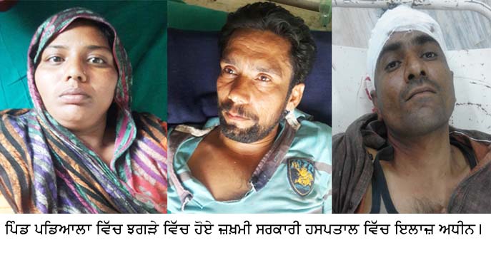 ਪਿੰਡ ਪਡਿਆਲਾ ਵਿੱਚ ਝਗੜੇ ਵਿੱਚ ਪਤੀ ਪਤਨੀ ਸਮੇਤ ਤਿੰਨ ਜ਼ਖ਼ਮੀ