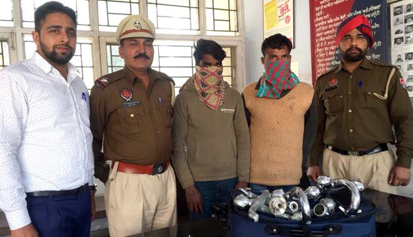 Share on Facebook Share on Twitter Share on Google+ Share on Pinterest Share on Linkedin ਟੁੱਟੀਆਂ ਚੋਰੀ ਕਰਨ ਵਾਲੇ ਦੋ ਮੁਲਜ਼ਮ ਕਾਬੂ, ਚੋਰੀ ਦਾ ਸਮਾਨ ਵੀ ਬਰਾਮਦ ਨਬਜ਼-ਏ-ਪੰਜਾਬ ਬਿਊਰੋ, ਮੁਹਾਲੀ, 29 ਨਵੰਬਰ: ਮੁਹਾਲੀ ਪੁਲੀਸ ਨੇ ਗੁਰਦੁਆਰਾ ਅੰਬ ਸਾਹਿਬ ਦੇ ਸਾਹਮਣੇ ਜੰਗਲ ’ਚੋਂ ਟੁੱਟੀਆਂ ਚੋਰੀ ਕਰਨ ਦੇ ਦੋਸ਼ ਵਿੱਚ ਦੋ ਵਿਅਕਤੀਆਂ ਨੂੰ ਚੋਰੀ ਦੇ ਸਮਾਨ ਸਮੇਤ ਕਾਬੂ ਕੀਤਾ ਹੈ। ਇਸ ਸਬੰਧੀ ਜਾਣਕਾਰੀ ਦਿੰਦਿਆਂ ਫੇਜ਼ 8 ਥਾਣੇ ਦੇ ਐਸਐਚਓ ਸ੍ਰੀ ਰਾਜੀਵ ਕੁਮਾਰ ਨੇ ਦੱਸਿਆ ਕਿ ਫੇੇਜ਼ 8 ਥਾਣਾ ਦੇ ਹੌਲਦਾਰ ਬਹਾਦਰ ਸਿੰਘ ਤੇ ਹੌਲਦਾਰ ਗੁਰਮੀਤ ਸਿੰਘ ਸੈਕਟਰ-68 ਅਤੇ ਸੈਕਟਰ-69 ਦੀਆਂ ਲਾਈਟਾਂ ਨੇੜੇ ਗਸ਼ਤ ਕਰ ਰਹੇ ਸਨ ਕਿ ਮੁਖਬਰ ਦੀ ਇਤਲਾਹ ਮਿਲਣ ’ਤੇ ਉਹਨਾਂ ਨੇ ਗੁਰਦੁਆਰਾ ਅੰਬ ਸਾਹਿਬ ਦੇ ਸਾਹਮਣੇ ਜੰਗਲ ਵਿੱਚ ਮੌਜੂਦ ਦੋ ਵਿਅਕਤੀਆਂ ਅਜੈ ਉਰਫ਼ ਚਾਲਬਾਜ਼ ਵਸਨੀਕ ਜ਼ਿਲ੍ਹਾ ਬੇਗੂ ਸਰਾਏ, ਬਿਹਾਰ ਅਤੇ ਮਹਿੰਦਰ ਵਸਨੀਕ ਜ਼ਿਲ੍ਹਾ ਗੋਰਖਪੁਰ, ਯੂਪੀ ਨੂੰ ਕਾਬੂ ਕੀਤਾ ਅਤੇ ਉਹਨਾਂ ਕੋਲੋਂ ਨੀਲੇ ਰੰਗ ਦੇ ਸੂਟਕੇਸ ਵਿੱਚ ਰੱਖੀਆਂ ਚੋਰੀ ਕੀਤੀਆਂ ਟੁੱਟੀਆਂ ਬਰਾਮਦ ਕੀਤੀਆਂ। ਦੋਵੇਂ ਵਿਅਕਤੀ ਇਹ ਟੁੱਟੀਆਂ ਸੂਟਕੇਸ ਵਿੱਚ ਪਾ ਕੇ ਵੇਚਣ ਲਈ ਕਿਸੇ ਗਾਹਕ ਦੀ ਉਡੀਕ ਕਰ ਰਹੇ ਸਨ। ਪੁਲੀਸ ਨੇ ਇਸ ਸਬੰਧੀ ਆਈਪੀਸੀ ਦੀ ਧਾਰਾ 379,411 ਦੇ ਅਧੀਨ ਮਾਮਲਾ ਦਰਜ ਕਰਕੇ ਜਾਂਚ ਸ਼ੁਰੂ ਕਰ ਦਿੱਤੀ ਹੈ।