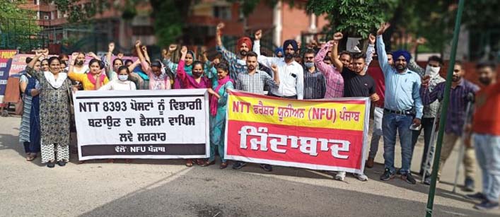 Share on Facebook Share on Twitter Share on Google+ Share on Pinterest Share on Linkedin ਅਧਿਆਪਕਾਂ ਦੀ ਭਰਤੀ ਲਈ ਅਪਲਾਈ ਕਰਨ ਵਾਲੇ ਬੇਰੁਜ਼ਗਾਰ ਨੌਜਵਾਨਾਂ ਵੱਲੋਂ ਰੋਸ ਮੁਜ਼ਾਹਰਾ 8393 ਪ੍ਰੀ-ਪ੍ਰਾਇਮਰੀ ਅਧਿਆਪਕਾਂ ਦੀ ਭਰਤੀ ਵਾਲਾ ਇਸ਼ਤਿਹਾਰ ਰੱਦ ਕਰਨ ਦਾ ਮਾਮਲਾ ਸਿੱਖਿਆ ਭਵਨ ਦੇ ਬਾਹਰ ਡਟੇ ਐਨਟੀਟੀ ਫਰੈੱਸ਼ਰ ਯੂਨੀਅਨ ਪੰਜਾਬ ਦੇ ਮੈਂਬਰ ਨਬਜ਼-ਏ-ਪੰਜਾਬ ਬਿਊਰੋ, ਮੁਹਾਲੀ, 27 ਅਗਸਤ: ਸਿੱਖਿਆ ਵਿਭਾਗ ਪੰਜਾਬ ਵੱਲੋਂ 8393 ਪ੍ਰੀ-ਪ੍ਰਾਇਮਰੀ ਅਧਿਆਪਕਾਂ ਦੀ ਭਰਤੀ ਵਾਲਾ ਇਸ਼ਤਿਹਾਰ ਰੱਦ ਕਰਨ ਤੋਂ ਭੜਕੇ ਨੌਜਵਾਨ ਸੜਕਾਂ ’ਤੇ ਉੱਤਰ ਆਏ ਹਨ। ਅਧਿਆਪਕਾਂ ਦੀ ਭਰਤੀ ਲਈ ਅਪਲਾਈ ਕਰਨ ਵਾਲੇ ਨੌਜਵਾਨ ਲੜਕੇ ਲੜਕੀਆਂ ਨੇ ਅੱਜ ਸਿੱਖਿਆ ਭਵਨ ਦੇ ਬਾਹਰ ਰੋਸ ਪ੍ਰਦਰਸ਼ਨ ਕੀਤਾ। ਇਸ ਤੋਂ ਪਹਿਲਾਂ ਉਕਤ ਸਾਰੇ ਪ੍ਰਦਰਸ਼ਨਕਾਰੀ ਇੱਥੋਂ ਦੇ ਫੇਜ਼-8 ਸਥਿਤ ਇਤਿਹਾਸਕ ਗੁਰਦੁਆਰਾ ਅੰਬ ਸਾਹਿਬ ਵਿਖੇ ਇਕੱਤਰ ਹੋਏ ਅਤੇ ਉੱਥੋਂ ਪੈਦਲ ਰੋਸ ਮਾਰਚ ਕਰਦੇ ਹੋਏ ਸਿੱਖਿਆ ਵਿਭਾਗ ਦੇ ਸਕੱਤਰ ਕ੍ਰਿਸ਼ਨ ਕੁਮਾਰ ਦੇ ਦਫ਼ਤਰ ਪਹੁੰਚੇ ਲੇਕਿਨ ਉੱਥੇ ਪਹਿਲਾਂ ਤੋਂ ਹੀ ਤਾਇਨਾਤ ਪੁਲੀਸ ਕਰਮਚਾਰੀਆਂ ਨੇ ਉਨ੍ਹਾਂ ਨੂੰ ਸਿੱਖਿਆ ਭਵਨ ਦੇ ਮੁੱਖ ਗੇਟ ਤੋਂ ਅੰਦਰ ਨਹੀਂ ਜਾਣ ਦਿੱਤਾ। ਜਿਸ ਕਾਰਨ ਉਹ ਗੇਟ ਦੇ ਬਾਹਰ ਧਰਨਾ ਲਗਾ ਕੇ ਬੈਠ ਗਏ। ਇਸ ਮੌਕੇ ਐਨਟੀਟੀ ਫਰੈੱਸ਼ਰ ਯੂਨੀਅਨ ਪੰਜਾਬ (ਨਰਸਰੀ ਟੀਚਰ ਟਰੇਨਿੰਗ) ਦੇ ਸੂਬਾ ਪ੍ਰਧਾਨ ਗੁਰਪ੍ਰੀਤ ਸਿੰਘ, ਮੀਤ ਪ੍ਰਧਾਨ ਨਾਜ਼ਰ ਸਿੰਘ ਪਟਿਆਲਾ, ਜਨਰਲ ਸਕੱਤਰ ਕੁਲਵਿੰਦਰ ਸਿੰਘ ਫਾਜ਼ਿਲਕਾ ਅਤੇ ਸੀਮਾ ਰਾਣੀ ਜਲੰਧਰ ਨੇ ਕਿਹਾ ਕਿ ਪੰਜਾਬ ਸਰਕਾਰ ਵੱਲੋਂ ਸਕੂਲ ਸਿੱਖਿਆ ਵਿਭਾਗ ਰਾਹੀਂ 23 ਨਵੰਬਰ 2020 ਨੂੰ 8393 ਪ੍ਰੀ-ਪ੍ਰਾਇਮਰੀ ਅਧਿਆਪਕਾਂ ਦੀਆਂ ਅਸਾਮੀਆਂ ਭਰਨ ਲਈ ਅਧਿਆਪਕਾਂ ਦੀ ਭਰਤੀ ਸਬੰਧੀ ਇਸ਼ਤਿਹਾਰ ਜਾਰੀ ਕੀਤਾ ਸੀ ਅਤੇ ਇਸ ਸਬੰਧੀ ਕਰੀਬ 80 ਹਜ਼ਾਰ ਤੋਂ ਵੱਧ ਨੌਜਵਾਨ ਲੜਕੇ ਲੜਕੀਆਂ ਨੇ ਅਪਲਾਈ ਕੀਤਾ ਸੀ। ਉਨ੍ਹਾਂ ਕਿਹਾ ਕਿ ਬੇਰੁਜ਼ਗਾਰੀ ਦੀ ਭੱਠੀ ਵਿੱਚ ਸੜ ਰਹੇ ਨੌਜਵਾਨਾਂ ਨੂੰ ਸਰਕਾਰੀ ਨੌਕਰੀ ਮਿਲਣ ਦੀ ਆਸ ਬੱਝੀ ਸੀ ਲੇਕਿਨ ਬੀਤੇ ਕੱਲ੍ਹ ਡਾਇਰੈਕਟਰ ਸਿੱਖਿਆ ਵਿਭਾਗ (ਐਲੀਮੈਂਟਰੀ) ਵੱਲੋਂ ਅਚਾਨਕ ਪ੍ਰੀ-ਪ੍ਰਾਇਮਰੀ ਅਧਿਆਪਕਾਂ ਦੀ ਭਰਤੀ ਪ੍ਰਕਿਰਿਆ ਰੋਕ ਲਗਾਉਂਦਿਆਂ 8393 ਅਸਾਮੀਆਂ ਭਰਨ ਲਈ ਜਾਰੀ ਇਸ਼ਤਿਹਾਰ ਰੱਦ ਕਰ ਦਿੱਤਾ ਹੈ। ਜਿਸ ਕਾਰਨ ਨੌਜਵਾਨਾਂ ਵਿੱਚ ਭਾਰੀ ਰੋਸ ਪਾਇਆ ਜਾ ਰਿਹਾ ਹੈ। ਬੇਰੁਜ਼ਗਾਰ ਨੌਜਵਾਨਾਂ ਨੇ ਕਿਹਾ ਕਿ ਉਨ੍ਹਾਂ ਨੂੰ ਫੀਸਾਂ ਵਾਪਸ ਨਹੀਂ ਚਾਹੀਦੀਆਂ ਹਨ, ਬਲਕਿ ਉਕਤ ਭਰਤੀ ਪ੍ਰਕਿਰਿਆ ਨੂੰ ਜਾਰੀ ਰੱਖਦੇ ਹੋਏ ਬੀਤੀ 27 ਜੂਨ ਨੂੰ ਮੁਲਤਵੀ ਕੀਤਾ ਪੇਪਰ ਲਿਆ ਜਾਵੇ ਤਾਂ ਜੋ ਉਹ ਨੌਕਰੀ ਹਾਸਲ ਕਰਕੇ ਆਪਣੇ ਪਰਿਵਾਰਾਂ ਦਾ ਗੁਜ਼ਾਰਾ ਚਲਾਉਣ ਦੇ ਸਮਰਥ ਹੋ ਸਕਣ। ਉਨ੍ਹਾਂ ਕਿਹਾ ਕਿ ਹੈਰਾਨੀ ਦੀ ਗੱਲ ਹੈ ਕਿ ਉਹ ਅੱਜ ਇੱਥੇ ਸਿੱਖਿਆ ਸਕੱਤਰ ਅਤੇ ਹੋਰ ਜ਼ਿੰਮੇਵਾਰ ਅਧਿਕਾਰੀਆਂ ਨੂੰ ਮਿਲ ਕੇ ਮੰਗ ਪੱਤਰ ਦੇਣ ਆਏ ਸੀ ਪ੍ਰੰਤੂ ਪੁਲੀਸ ਨੇ ਉਨ੍ਹਾਂ ਦਾ ਰਾਹ ਰੋਕ ਕੇ ਅੰਦਰ ਨਹੀਂ ਜਾਣ ਦਿੱਤਾ। ਹਾਲਾਂਕਿ ਪੁਲੀਸ ਨੇ ਉਨ੍ਹਾਂ ਦੀ ਵਫ਼ਦ ਦੀ ਉੱਚ ਅਧਿਕਾਰੀਆਂ ਨਾਲ ਮੀਟਿੰਗ ਕਰਵਾਉਣ ਦਾ ਵੀ ਭਰੋਸਾ ਦਿੱਤਾ ਲੇਕਿਨ ਖ਼ਬਰ ਲਿਖੇ ਜਾਣ ਤੱਕ ਉਨ੍ਹਾਂ ਨੂੰ ਮੀਟਿੰਗ ਬਾਰੇ ਕੋਈ ਸੁਨੇਹਾ ਨਹੀਂ ਲਗਾਇਆ ਗਿਆ। ਉਨ੍ਹਾਂ ਚਿਤਾਵਨੀ ਦਿੱਤੀ ਕਿ ਜੇਕਰ ਸਰਕਾਰ ਨੇ ਭਰਤੀ ਪ੍ਰਕਿਰਿਆ ਸ਼ੁਰੂ ਨਹੀਂ ਕੀਤੀ ਤਾਂ ਉਹ ਵੀ ਇੱਥੇ ਪੱਕਾ ਧਰਨਾ ਲਗਾਉਣ ਲਈ ਮਜਬੂਰ ਹੋਣਗੇ।