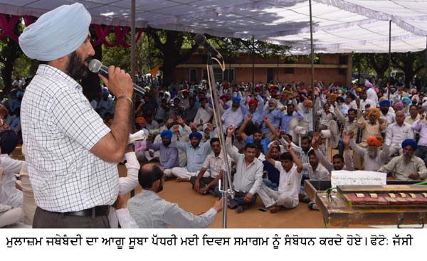 Share on Facebook Share on Twitter Share on Google+ Share on Pinterest Share on Linkedin ਜਲ ਸਪਲਾਈ ਤੇ ਸੈਨੀਟੇਸ਼ਨ ਵਿਭਾਗ ਦੇ ਗਰਾਉਂਡ ਵਿੱਚ ਮੁਲਾਜ਼ਮ ਜਥੇਬੰਦੀਆਂ ਨੇ ਸੂਬਾ ਪੱਧਰ ’ਤੇ ਮਨਾਇਆ ਮਈ ਦਿਵਸ ਹੁਕਮਰਾਨਾਂ ਦੇ ਅਵੇਸਲੇਪਣ ਕਾਰਨ ਮੁਲਾਜ਼ਮਾਂ ਵਿੱਚ ਭਾਰੀ ਰੋਸ, ਮੁੱਖ ਮੰਤਰੀ ਤੇ ਵਿੱਤ ਮੰਤਰੀ ਤੋਂ ਮੁਲਾਜ਼ਮਾਂ ਦੀ ਬਾਂਹ ਫੜਨ ਦੀ ਮੰਗ ਅਮਰਜੀਤ ਸਿੰਘ ਸੋਢੀ ਨਬਜ਼-ਏ-ਪੰਜਾਬ ਬਿਊਰੋ, ਮੁਹਾਲੀ, 1 ਮਈ ਪੰਜਾਬ ਦੇ ਸਰਕਾਰੀ ਅਤੇ ਅਰਧ ਸਰਕਾਰੀ ਮੁਲਾਜ਼ਮਾਂ ਦੀ ਨੁਮਾਇੰਦਾਂ ਜਥੇਬੰਦੀ ਪੰਜਾਬ ਸਟੇਟ ਕਰਮਚਾਰੀ ਦਲ ਦੇ ਝੰਡੇ ਹੇਠ ਪੰਜਾਬ ਦੇ ਕੋਨੇ ਕੋਨੇ ਤੋੱ ਆਏ ਮੁਲਾਜਮਾਂ, ਮਜਦੂਰਾਂ ਅਤੇ ਮਿਹਨਤਕਸ਼ ਵਰਗ ਦੇ ਲੋਕਾਂ ਨੇ ਸਥਾਨਕ ਫੇਜ਼-1 ਸਥਿਤ ਵਾਟਰ ਵਰਕਸ ਦੇ ਖੁੱਲ੍ਹੇ ਗਰਾਉਂਡ ਵਿੱਚ ਸੂਬਾ ਪੱਧਰ ’ਤੇ ਮਨਾਏ ਗਏ ਮਜਦੂਰ ਦਿਹਾੜੇ ਮੌਕੇ ਜਿਥੇ ਸ਼ਿਕਾਗੋ ਦੇ ਸ਼ਹੀਦਾਂ ਨੂੰ ਸ਼ਰਧਾਂਜਲੀ ਅਰਪਿਤ ਕਰਕੇ ਉਨ੍ਹਾਂ ਦੇ ਦਿਖਾਏ ਰਸਤੇ ਤੇ ਸੰਘਰਸ਼ਮਈ ਰਹਿਣ ਦਾ ਅਹਿਦ ਲਿਆ, ਉਥੇ ਹੀ ਆਪਣੀਆਂ ਹੱਕੀ ਤੇ ਜਾਇਜ ਮੰਗਾਂ ਨੂੰ ਉਭਾਰਿਆ। ਜਥੇਬੰਦੀ ਵੱਲੋਂ ਹਰ ਸਾਲ ਦੀ ਤਰ੍ਹਾਂ ਇਸ ਸਾਲ ਵੀ ਅੱਜ ਇਥੇ ਮੁਹਾਲੀ ਵਿਖੇ ਸੂਬਾ ਪੱਧਰ ਤੇ ਮਨਾਏ ਜਾਂਦੇ ਮਜਦੂਰ ਦਿਹਾੜੇ ਵਿੱਚ ਲੋਕਾਂ ਨੇ ਪੂਰੀ ਗਰਮਜੋਸ਼ੀ ਨਾਲ ਭਾਗ ਲੈ ਕੇ ਮੁਲਾਜਮ/ਮਜਦੂਰ ਆਗੂਆਂ ਨੇ ਸਰਕਾਰ ਨੂੰ ਚੇਤਾਵਨੀ ਦਿੱਤੀ ਕਿ ਉਹ ਟਾਲ-ਮਟੋਲ ਦੀ ਨੀਤੀ ਛੱਡ ਕੇ ਪੰਜਾਬ ਦੇ ਮੁਲਾਜਮਾਂ ਦੀਆਂ ਲੰਬੇ ਅਰਸੇ ਤੋਂ ਲਮਕ ਅਵਸਥਾ ਵਿੱਚ ਪਈਆਂ ਸਾਂਝੀਆਂ ਮੰਗਾਂ ਨੂੰ ਹੱਲ ਕਰੇ। ਇਸ ਸਮਾਗਮ ਨੂੰ ਸੰਬੋਧਨ ਕਰਦਿਆਂ ਦਲ ਦੇ ਸੂਬਾ ਪ੍ਰਧਾਨ ਸ੍ਰ. ਹਰੀ ਸਿੰਘ ਟੋਹੜਾ ਨੇ ਮੁਲਾਜ਼ਮ ਮੰਗਾਂ ਦਾ ਜ਼ਿਕਰ ਕਰਦਿਆਂ ਦੱਸਿਆ ਕਿ ਪੰਜਾਬ ਸਰਕਾਰ ਵਿਧਾਨ ਸਭਾ ਦੀਆਂ ਚੋਣਾਂ ਵਿੱਚ ਮੁਲਾਜਮ ਵਰਗ ਨਾਲ ਕੀਤੇ ਵਾਅਦਿਆਂ ਦੀ ਪੂਰਤੀ ਕਰੇ। ਪੇ-ਕਮਿਸ਼ਨ ਦੀ ਰਿਪੋਰਟ ਤਿਆਰ ਕਰਵਾ ਕੇ ਦੋ ਮਹੀਨੇ ਦੇ ਅੰਦਰ ਅੰਦਰ ਲਾਗੂ ਕੀਤੀ ਜਾਵੇ। ਘੱਟੋ-ਘੱਟ ਉਜਰਤਾਂ ਵਿੱਚ ਮਹਿੰਗਾਈ ਦੇ ਅੰਕੜਿਆਂ ਅਨੁਸਾਰ ਵਾਧਾ ਕੀਤਾ ਜਾਵੇ। ਪਿਛਲੀ ਸਰਕਾਰ ਵਲੋੱ ਵਿਧਾਨ ਸਭਾ ਵਿੱਚ 27 ਹਜਾਰ ਕਾਮਿਆਂ ਦੀਆਂ ਸੇਵਾਵਾਂ ਨੂੰ ਰੈਗੂਲਰ ਕਰਨ ਦਾ ਜੋ ਬਿੱਲ ਪਾਸ ਕੀਤਾ ਗਿਆ ਸੀ, ਉਸ ਨੂੰ ਅਮਲੀ ਜਾਮਾਂ ਪਹਿਨਾਉਂਦਿਆਂ ਸੂਬਾ ਸਰਕਾਰ ਤੁਰੰਤ ਨੋਟੀਫਿਕੇਸ਼ਨ ਜਾਰੀ ਕਰੇ। ਡੀਏ ਦੀਆਂ ਕਿਸ਼ਤਾਂ ਦਾ ਜੋ 2800 ਕਰੋੜ ਰੁਪਏ ਦਾ ਬਕਾਇਆ ਮੁਲਾਜ਼ਮਾਂ ਦਾ ਰਹਿੰਦਾ ਹੈ, ਉਹ ਤੁਰੰਤ ਦਿੱਤਾ ਜਾਵੇ। ਕੇਂਦਰ ਪੈਟਰਨ ਤੇ ਜਨਵਰੀ 2017 ਤੋਂ ਬਣਦੀ ਡੀ.ਏ. ਦੀ ਕਿਸ਼ਤ ਨਗਦ ਰੂਪ ਵਿੱਚ ਰਿਲੀਜ਼ ਕੀਤੀ ਜਾਵੇ। ਸਿੱਖਿਆ ਵਿਭਾਗ, ਵਣ ਵਿਭਾਗ ਤੇ ਸਿਹਤ ਵਿਭਾਗ ਦੇ ਕੱਚੇ ਮੁਲਾਜ਼ਮਾਂ ਦੀ ਰਹਿੰਦੀ ਤਨਖਾਹ ਰਲੀਜ ਕਰਵਾਈ ਜਾਵੇ। ਖਜਾਨਾ ਦਫ਼ਤਰਾਂ ਵਿੱਚ ਰਿਟਾਇਰ, ਮ੍ਰਿਤਕ ਕਰਮਚਾਰੀਆਂ ਤੇ ਮੌਜੂਦਾ ਮੁਲਾਜ਼ਮਾਂ ਦੇ ਕਰੋੜਾਂ ਰੁਪਏ ਦੇ ਬਿੱਲਾਂ ਦੀ ਅਦਾਇਗੀ ਪਹਿਲ ਦੇ ਅਧਾਰ ਤੇ ਕਰਵਾਈ ਜਾਵੇ। ਇਸ ਮੌਕੇ ਬੋਲਦਿਆਂ ਮੁਲਾਜ਼ਮ ਆਗੂ ਸੁਰਿੰਦਰ ਸਿੰਘ ਅਤੇ ਸੁਖਚੈਨ ਸਿੰਘ ਮੁਹਾਲੀ ਨੇ ਕਿਹਾ ਕਿ ਮੁੱਖ ਮੰਤਰੀ ਕੈਪਟਨ ਅਮਰਿੰਦਰ ਸਿੰਘ ਵੱਲੋਂ 6 ਮਹੀਨੇ ਦੇ ਅੰਦਰ ਅੰਦਰ ਹਰ ਇਕ ਘਰ ਦੇ ਨੋਜਵਾਨ ਨੂੰ ਰੁਜ਼ਗਾਰ ਦੇਣ ਦਾ ਜੋ ਵਾਇਦਾ ਕੀਤਾ ਸੀ, ਉਸ ਵਾਇਦੇ ਮੁਤਾਬਕ ਰੁਜ਼ਗਾਰ ਸਾਧਨ ਮੁਹੱਈਆ ਕਰਵਾਏ ਜਾਣ। ਕਿਰਤ ਕਾਨੂੰਨਾਂ ਨੂੰ ਅਮਲੀ ਜਾਮਾ ਪਹਿਨਾ ਕੇ ਕਿਰਤੀ ਵਰਗ ਲਈ ਵਿਸ਼ੇਸ਼ ਉਪਰਾਲੇ ਕੀਤੇ ਜਾਣ। ਸਮੇਂ ਸਮੇਂ ਦੀਆਂ ਸਰਕਾਰਾਂ ਵੱਲੋਂ ਮਜ਼ਦੂਰਾਂ ਤੇ ਮੁਲਾਜ਼ਮਾਂ ਨੂੰ ਮਿਲਦੀਆਂ ਸਹੂਲਤਾਂ ਤੇ ਲਗਾਏ ਗਏ ਕੱਟਾਂ ਸਬੰਧੀ ਜਾਰੀ ਕੀਤੇ ਕਾਲੇ ਪੱਤਰਾਂ ਨੂੰ ਰੱਦ ਕੀਤ