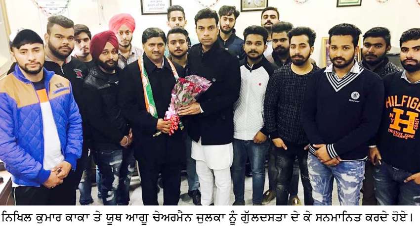 Share on Facebook Share on Twitter Share on Google+ Share on Pinterest Share on Linkedin ਯੂਥ ਕਾਂਗਰਸ ਵੱਲੋਂ ਚੇਅਰਮੈਨ ਜੁਲਕਾ ਦਾ ਵਿਸ਼ੇਸ਼ ਸਨਮਾਨ ਮਨਪ੍ਰੀਤ ਕੌਰ ਨਬਜ਼-ਏ-ਪੰਜਾਬ ਬਿਊਰੋ, ਪਟਿਆਲਾ, 27 ਦਸੰਬਰ: ਪੰਜਾਬ ਕਾਂਗਰਸ ਦੇ ਪ੍ਰਧਾਨ ਕੈਪਟਨ ਅਮਰਿੰਦਰ ਸਿੰਘ ਅਤੇ ਵਿਧਾਇਕ ਮਹਾਰਾਨੀ ਪਰਨੀਤ ਕੌਰ ਵੱਲੋਂ ਪਿਛਲੇ ਦਿਨੀਂ ਪੰਜਾਬ ਕਾਂਗਰਸ ਸੋਸ਼ਲ ਮੀਡੀਆ ਸੈਲ ਜ਼ਿਲ੍ਹਾ ਪਟਿਆਲਾ ਦੇ ਨਵੇਂ ਥਾਪੇ ਗਏ ਚੇਅਰਮੈਨ ਜਸਵਿੰਦਰ ਜੁਲਕਾਂ ਨੂੰ ਅੱਜ ਯੂਥ ਕਾਂਗਰਸ ਪਟਿਆਲਾ ਸ਼ਹਿਰੀ ਦੇ ਮੀਤ ਪ੍ਰਧਾਨ ਨਿਖਿਲ ਕੁਮਾਰ ਕਾਕਾ ਅਤੇ ਉੁਨ੍ਹਾਂ ਦੀ ਟੀਮ ਵੱਲੋਂ ਗੁਲਦਸਤਾ ਅਤੇ ਸਿਰੋਪਾਓ ਦੇ ਕੇ ਸਨਮਾਨਿਤ ਕੀਤਾ ਗਿਆ। ਇਸ ਮੌਕੇ ਨਿਖਿਲ ਕਾਕਾ ਨੇ ਕਿਹਾ ਕਿ ਬੜੇ ਹੀ ਮਾਣ ਵਾਲੀ ਗੱਲ ਹੈ ਕਿ ਮਿਹਨਤੀ ਤੇ ਇਮਾਨਦਾਰ ਆਗੂ ਜੁਲਕਾਂ ਨੂੰ ਇਹ ਅਹਿਮ ਜ਼ਿੰਮੇਵਾਰੀ ਦੇ ਕੇ ਨਿਵਾਜਿਆ ਗਿਆ ਹੈ। ਇਸ ਮੌਕੇ ਜੁਲਕਾਂ ਨੇ ਯੂਥ ਕਾਂਗਰਸ ਦੀ ਸਮੁੱਚੀ ਟੀਮ ਅਤੇ ਨਿਖਿਲ ਕਾਕਾ ਦਾ ਧੰਨਵਾਦ ਕਰਦਿਆਂ ਕਿਹਾ ਕਿ ਉਹ ਪਾਰਟੀ ਵੱਲੋਂ ਦਿੱਤੀ ਗਈ ਜ਼ਿੰਮੇਵਾਰੀ ਨੂੰ ਆਪਣੀ ਮਿਹਨਤ ਅਤੇ ਲਗਨ ਨਾਲ ਨਿਭਾਉੁਣਗੇ। ਇਸ ਮੌਕੇ ਸ਼ੁਭਮ ਚੁੱਘ, ਗੁਰਜੰਟ ਸਿੰਘ, ਗਵਿਸ਼ ਸ਼ਰਮਾ, ਗੌਰਵ ਉਪਲ, ਅਗਮ ਪ੍ਰਤਾਪ, ਦੀਪਕ ਕੁਮਾਰ, ਤਰੁਨ ਸ਼ਰਮਾ, ਸ਼ੁਭਮ ਸੇਠੀ, ਲਵਿਸ਼ ਚੁੱਘ, ਮੰਜੂ ਜੋਸ਼ੀ, ਮੋਹਿਤ ਵਰਮਾ, ਰਾਜਨ ਕੁਮਾਰ ਆਦਿ ਯੂਥ ਕਾਂਗਰਸ ਆਗੂ ਤੇ ਵਰਕਰ ਹਾਜ਼ਰ ਸਨ।