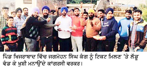 Share on Facebook Share on Twitter Share on Google+ Share on Pinterest Share on Linkedin ਖਰੜ ਤੋਂ ਜਗਮੋਹਨ ਕੰਗ ਨੂੰ ਟਿਕਟ ਮਿਲਣ ’ਤੇ ਯੂਥ ਕਾਂਗਰਸੀ ਬਾਗੋਬਾਗ ਮਾਜਰੀ 29 ਦਸੰਬਰ (ਰਜਨੀਕਾਂਤ ਗਰੋਵਰ): ਵਿਧਾਨ ਸਭਾ ਹਲਕਾ ਖਰੜ ਤੋਂ ਕਾਂਗਰਸੀ ਵਿਧਾਇਕ ਜਗਮੋਹਨ ਸਿੰਘ ਕੰਗ ਨੂੰ ਟਿਕਟ ਮਿਲਣ ’ਤੇ ਯੂਥ ਕਾਂਗਰਸ ਵਿੱਚ ਭਾਰੀ ਉਤਸ਼ਾਹ ਪਾਇਆ ਜਾ ਰਿਹਾ ਹੈ। ਅੱਜ ਪਿੰਡ ਖਿਜਰਾਬਾਦ ਵਿੱਚ ਹਾਈ ਕਮਾਂਡ ਦਾ ਧੰਨਵਾਦ ਕਰਨ ਲਈ ਆਯੋਜਿਤ ਸਮਾਰੋਹ ਮੌਕੇ ਪੱਤਰਕਾਰਾਂ ਨਾਲ ਗੱਲਬਾਤ ਕਰਦਿਆਂ ਯੂਥ ਕਾਂਗਰਸੀ ਆਗੂ ਚਰਨਜੀਤ ਸਿੰਘ ਚੰਨੀ ਖਿਜ਼ਰਾਬਾਦ ਅਤੇ ਅਵਤਾਰ ਸਿੰਘ ਪਾਬਲਾ ਨੇ ਕਿਹਾ ਕਿ ਵਿਧਾਨ ਸਭਾ ਚੋਣਾਂ ਵਿੱਚ ਯੂਥ ਕਾਂਗਰਸ ਦੇ ਕਾਰਕੁੰਨ ਅਹਿਮ ਰੋਲ ਅਦਾ ਕਰਨਗੇ। ਉਨ੍ਹਾਂ ਕਿਹਾ ਕਿ ਅਕਾਲੀਆਂ ਦੀ ਧੱਕੇਸ਼ਾਹੀ ਅਤੇ ਵਧੀਕੀਆਂ ਨੂੰ ਠੱਲ੍ਹਣ ਲਈ ਯੂਥ ਵਰਕਰਾਂ ਦੀਆਂ ਬੂਥ ਪੱਧਰ ’ਤੇ ਸਬ ਕਮੇਟੀਆਂ ਬਣਾਈਆਂ ਜਾਣਗੀਆਂ। ਇਸ ਦੌਰਾਨ ਇਕੱਤਰ ਨੌਜਵਾਨਾਂ ਅਤੇ ਪਿੰਡ ਵਾਸੀਆਂ ਨੇ ਲੱਡੂ ਵੰਡ ਕੇ ਖੁਸ਼ੀ ਮਨਾਈ। ਸ੍ਰੀ ਚੰਨੀ ਖਿਜ਼ਰਾਬਾਦ ਨੇ ਕਿਹਾ ਕਿ ਪੰਜਾਬ ਵਿੱਚ ਹਰੇਕ ਵਰਗ ਅਕਾਲੀ-ਭਾਜਪਾ ਸਰਕਾਰ ਤੋਂ ਕਾਫੀ ਤੰਗ ਪ੍ਰੇਸ਼ਾਨ ਹੈ ਅਤੇ ਆਉਣ ਵਾਲੀਆਂ ਚੋਣਾਂ ਵਿੱਚ ਰਾਜ ਦੇ ਲੋਕ ਅਕਾਲੀ-ਭਾਜਪਾ ਨੂੰ ਚਲਦਾ ਕਰਨ ਲਈ ਕਾਂਗਰਸ ਦੇ ਹੱਕ ਵਿੱਚ ਫਤਵਾ ਦੇਣਗੇ ਅਤੇ ਕੈਟਪਨ ਅਮਰਿੰਦਰ ਸਿੰਘ ਦੀ ਅਗਵਾਈ ਵਿਚ ਕਾਂਗਰਸ ਦੀ ਸਰਕਾਰ ਬਣਾਈ ਜਾਵੇਗੀ। ਇਸ ਮੌਕੇ ਬਲਵੀਰ ਸਿੰਘ ਮੰਗੀ ਪੰਚ, ਸਤਨਾਮ ਸਿੰਘ ਪੰਚ, ਕਾਦਰ ਅਲੀ, ਹਰਚਰਨ ਸਿੰਘ, ਮਿੰਟੂ ਲੁਬਾਣਗੜ੍ਹ, ਮੰਗਾ, ਲੱਕੀ, ਜੀਤਾ, ਜਸ਼ਨ, ਲੱਖਾ, ਸੱੁਖੀ, ਬੌਬੀ, ਪਰਵਿੰਦਰ ਸਿੰਘ ਆਦਿ ਹਾਜ਼ਰ ਸਨ।